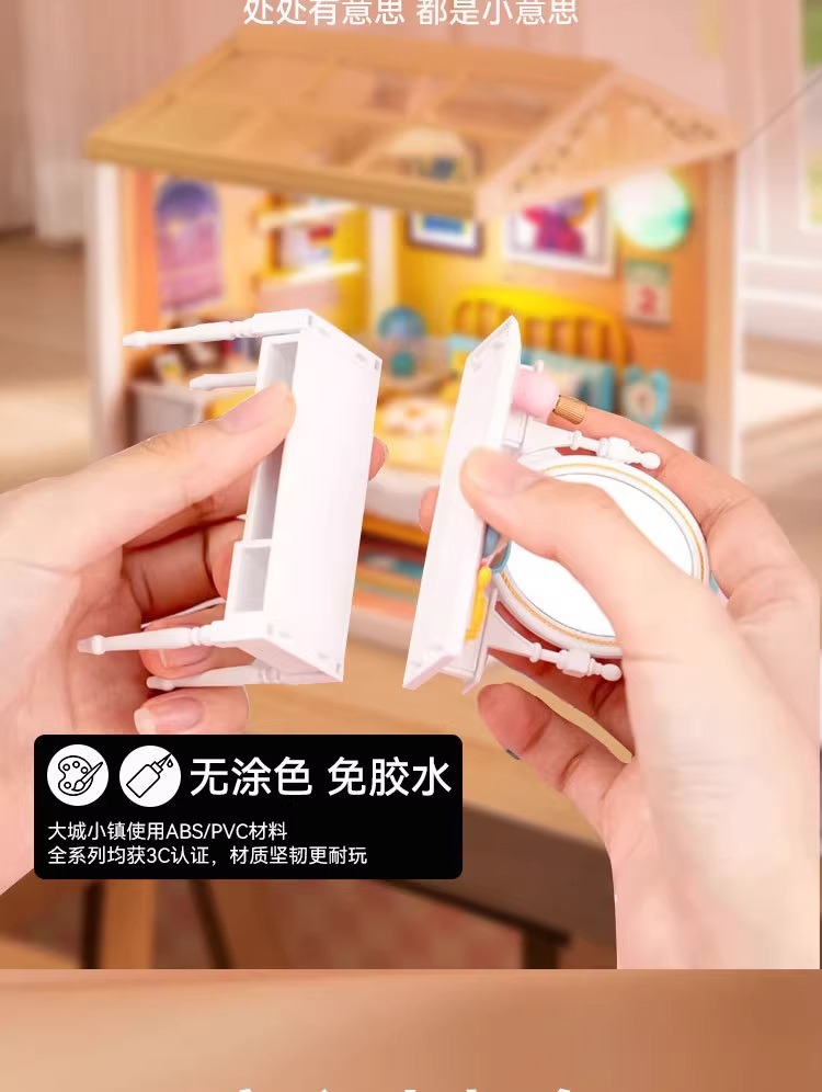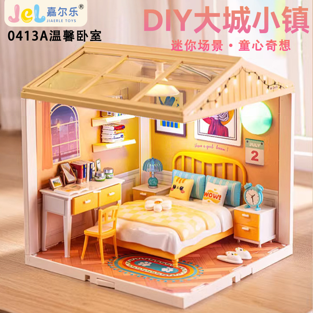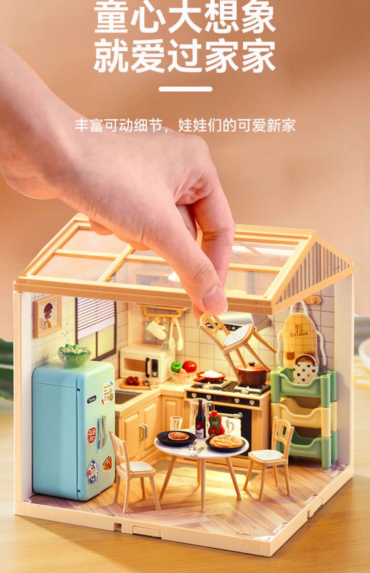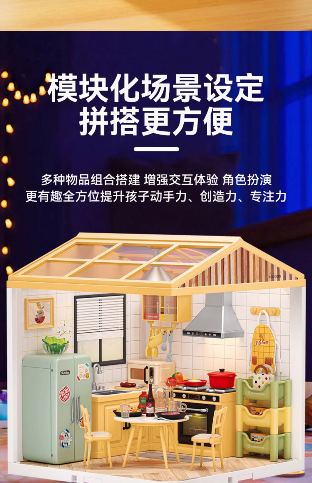 Jiaerle 도시 마을 미니 주방 밀크티 가게 diy 손으로 조립 된 오두막 장면 장난감 소녀