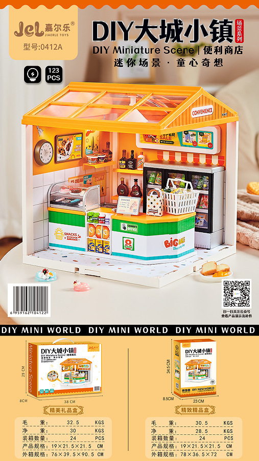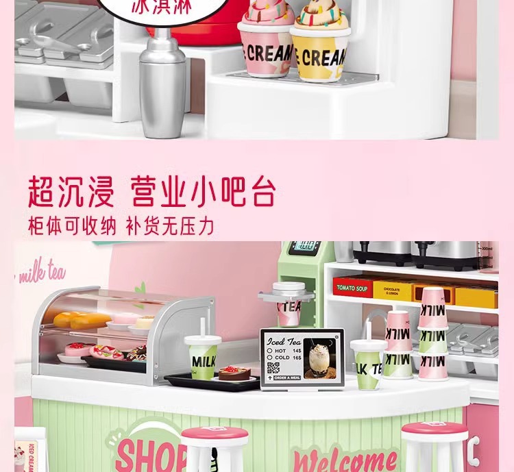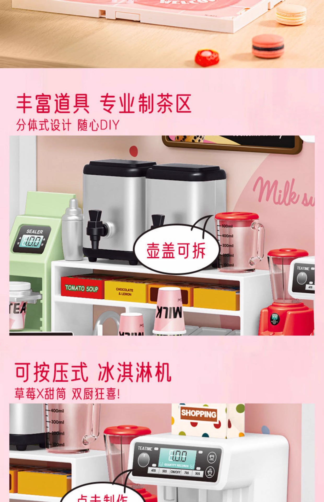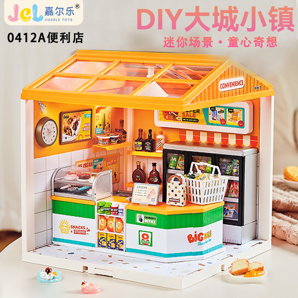 Jiaerle 도시 마을 미니 주방 밀크티 가게 diy 손으로 조립 된 오두막 장면 장난감 소녀스토어 가기