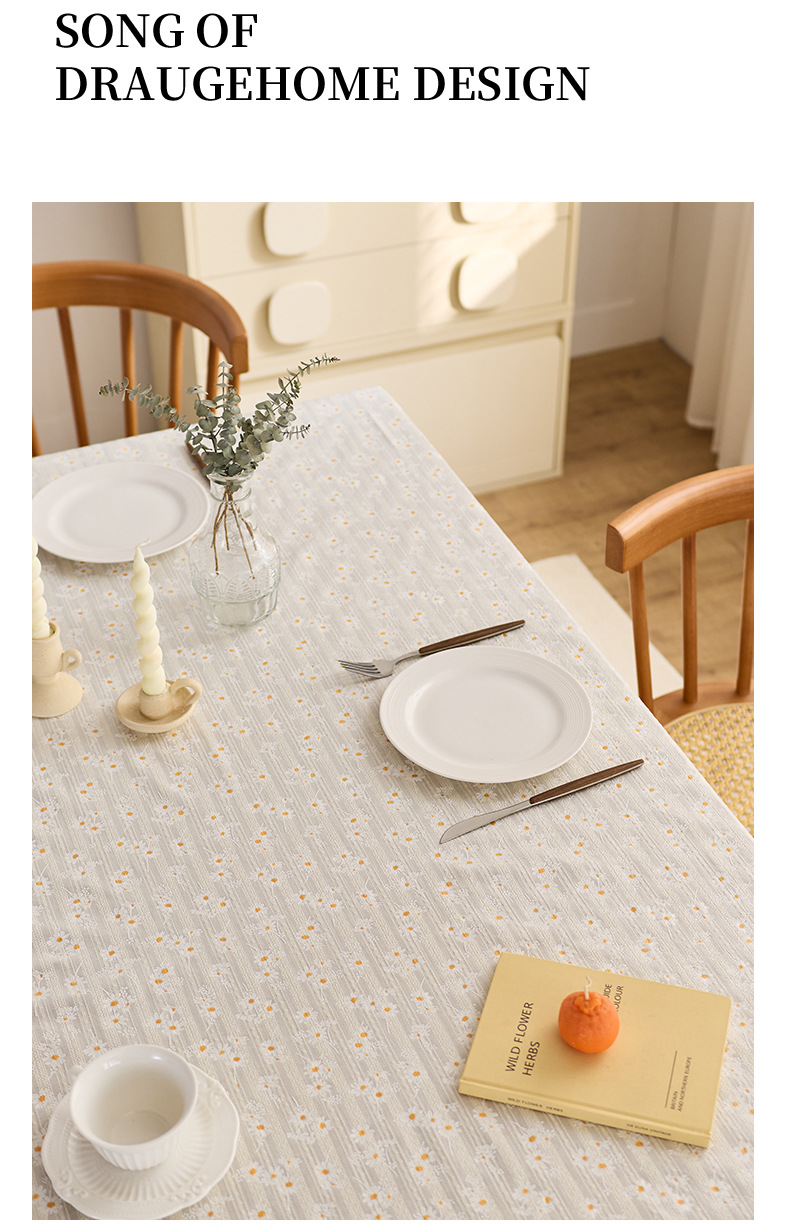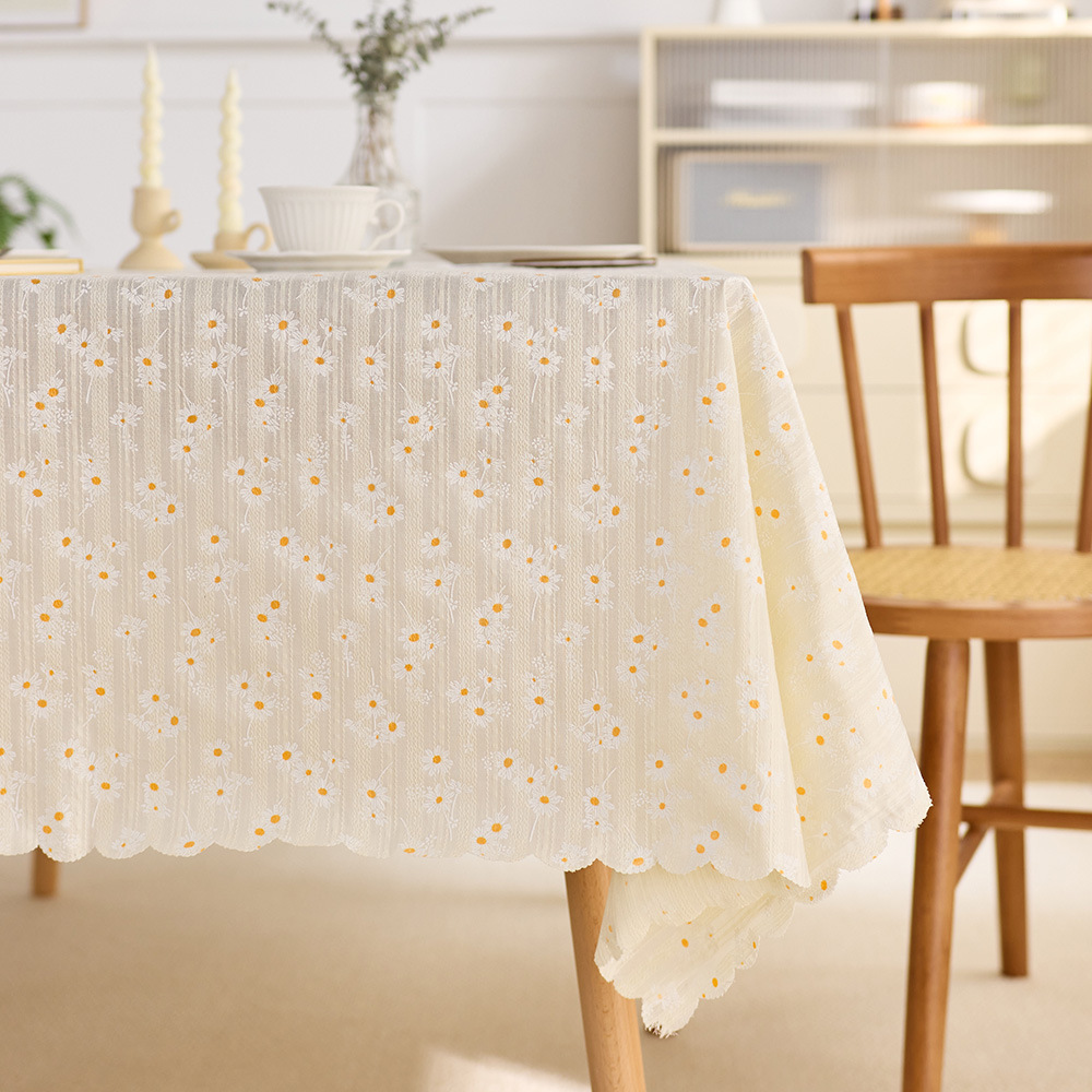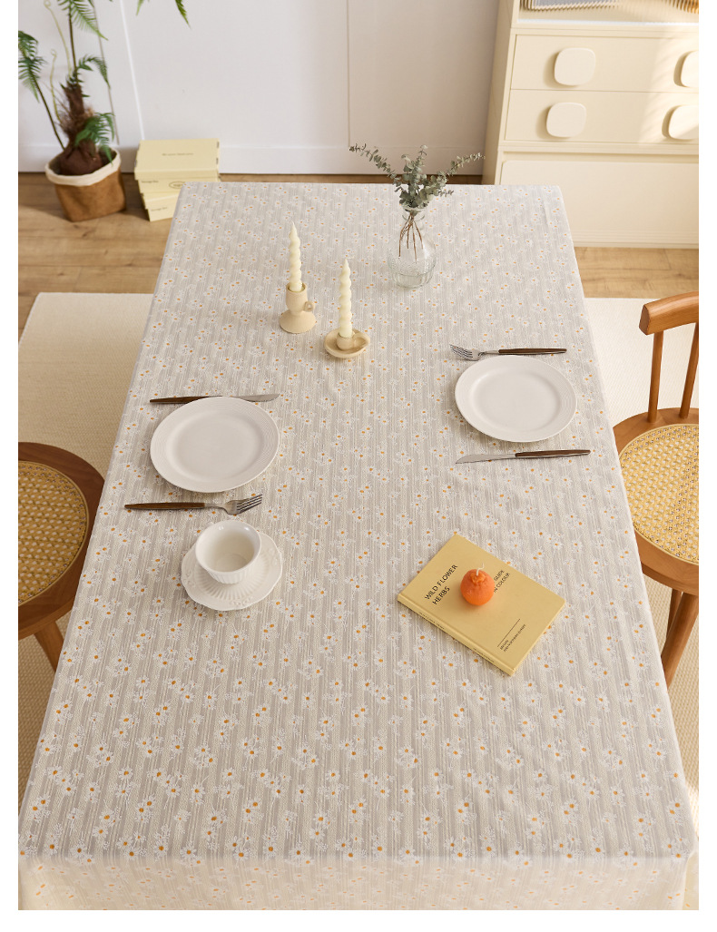 데이지 식탁보 방수 및 오일 증거 세탁 가능한 커피 테이블 테이블 매트 일본식 면 및 리넨 스타일 학생 책상 식탁 장식 테이블 장식 테이블