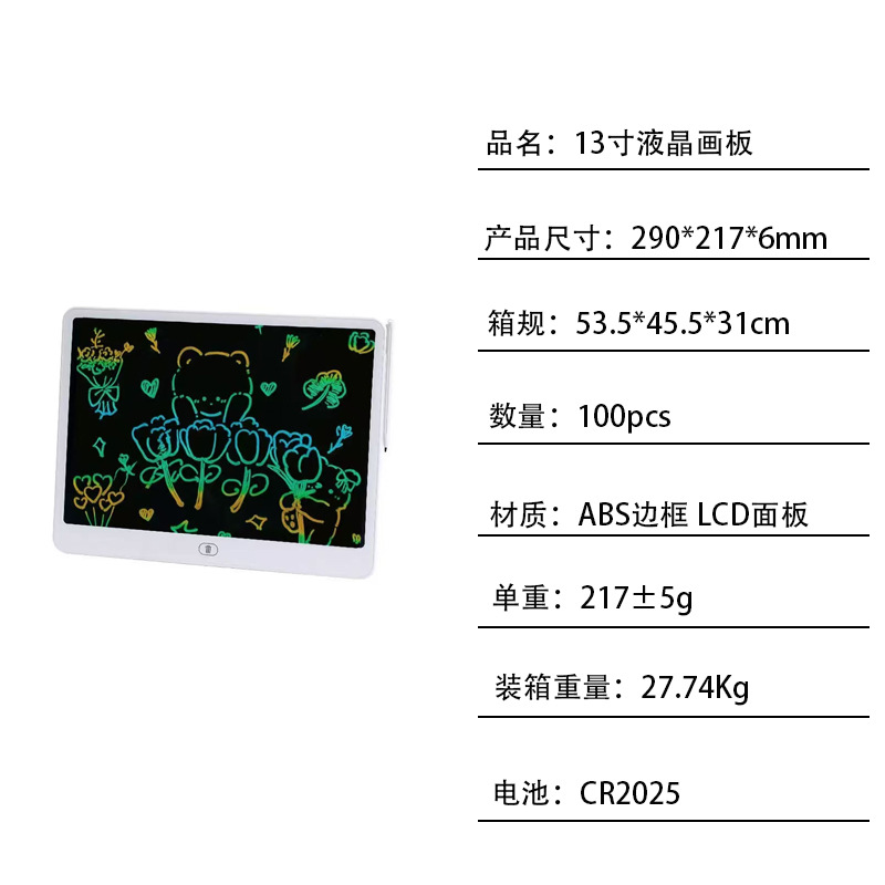 LCD LCD 필기 보드 어린이 필기 보드 드로잉 보드 가로 스타일 13inch 대형 필기 보드 전자 필기 보드