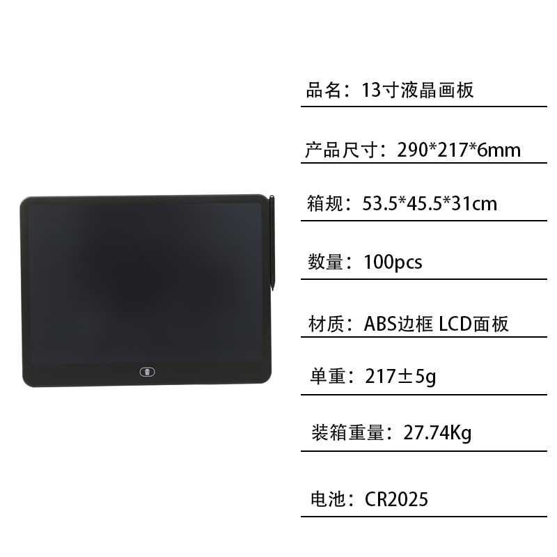 LCD LCD 필기 보드 어린이 필기 보드 드로잉 보드 가로 스타일 13inch 대형 필기 보드 전자 필기 보드스토어 가기