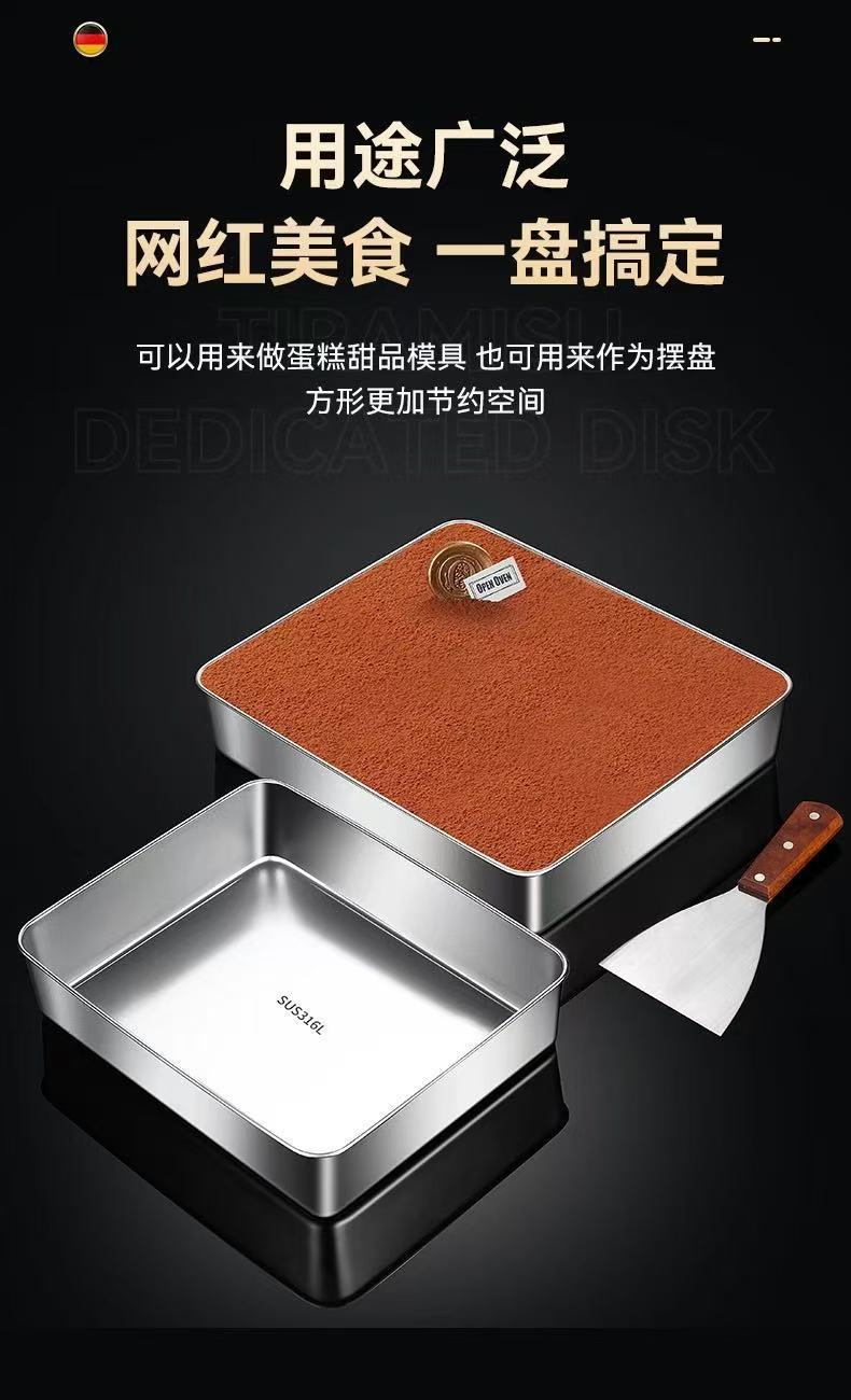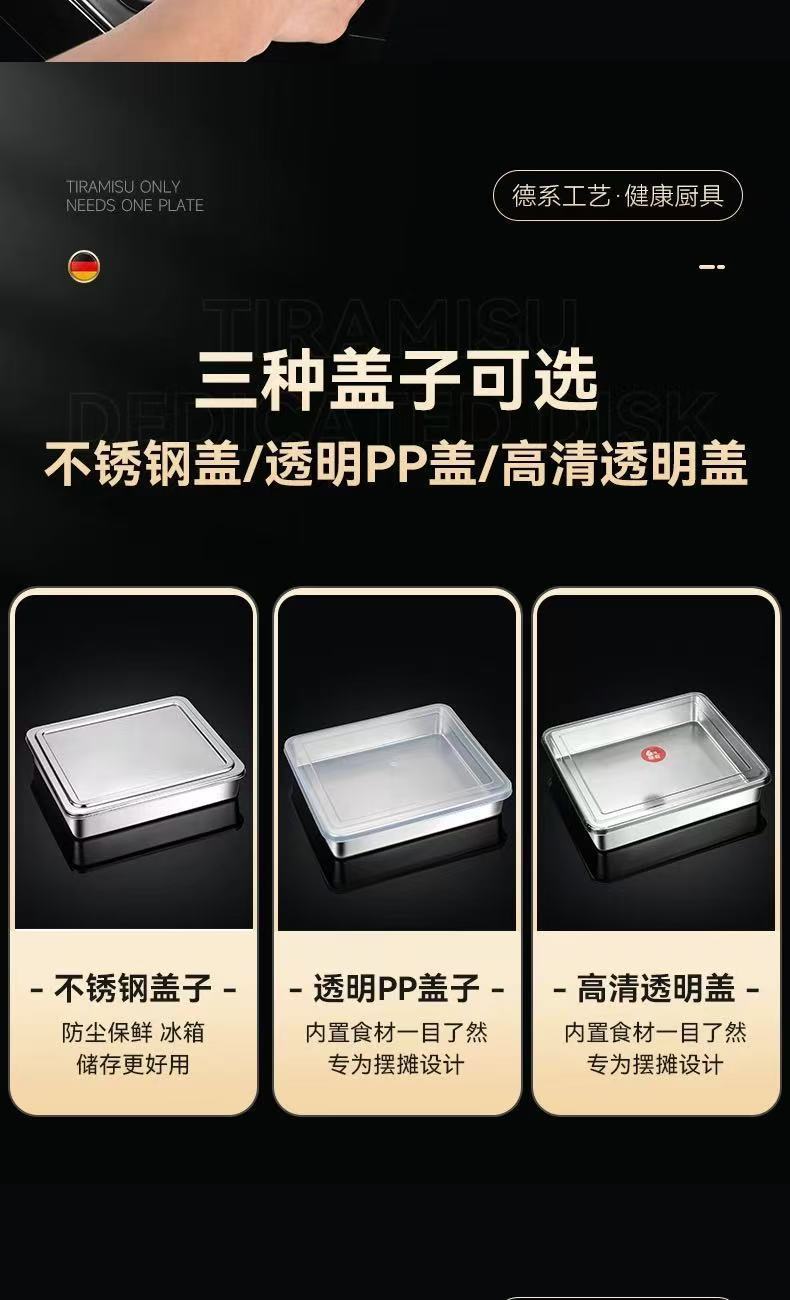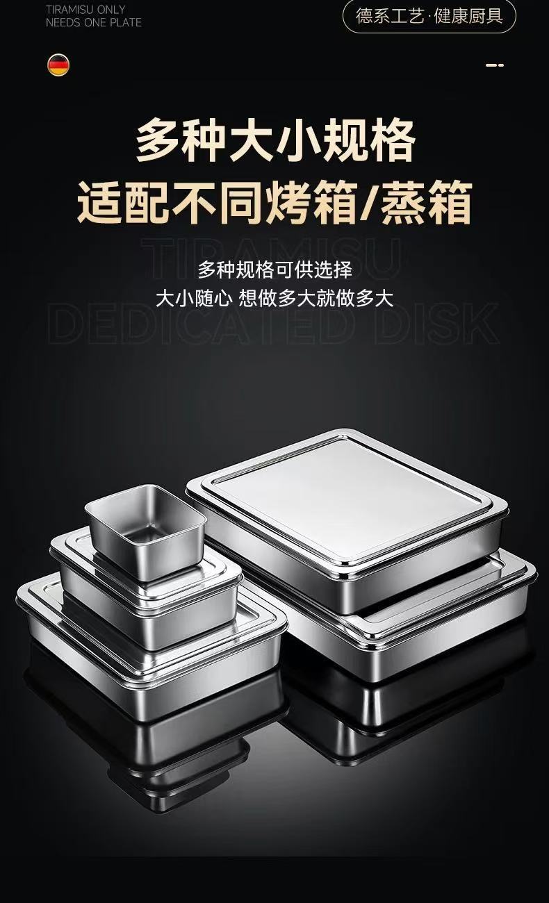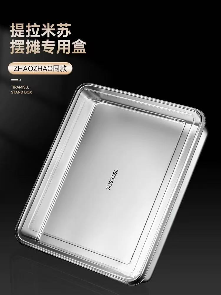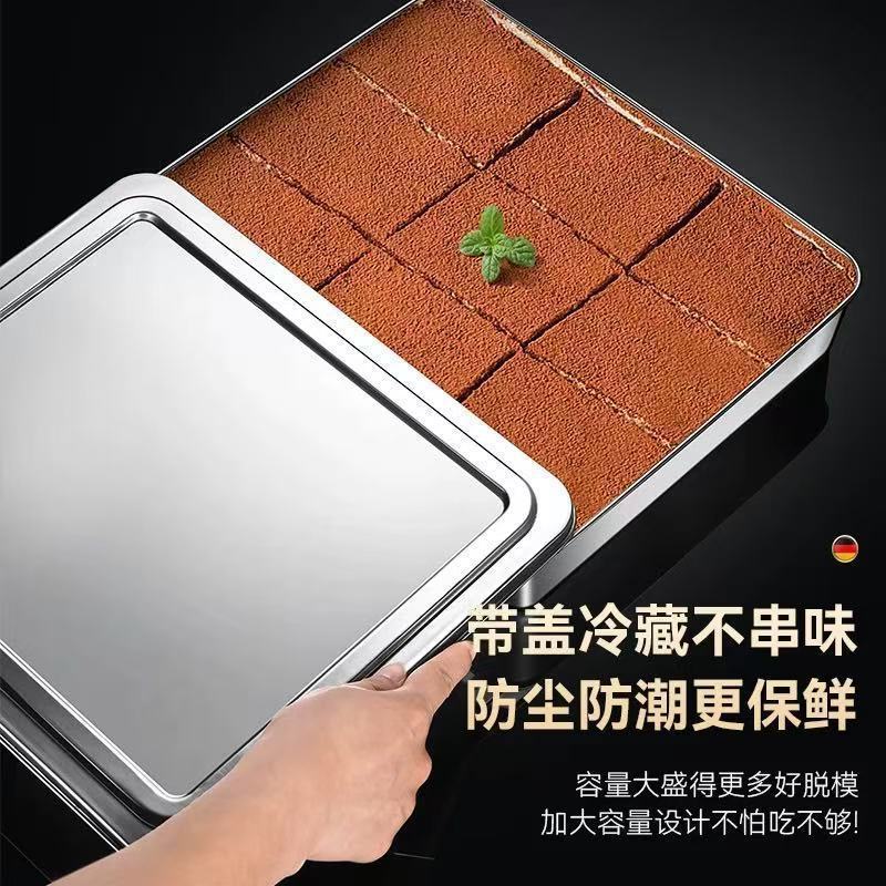 두꺼운 스테인레스 스틸 접시 티라미수 몰드 접시 스톨 특수 직사각형 트레이 뚜껑이 있는 평평한 바닥 접시
