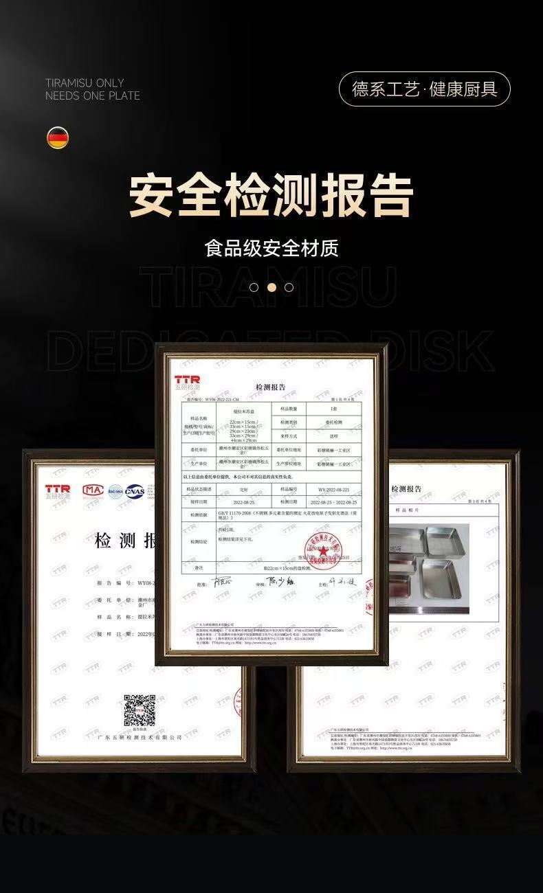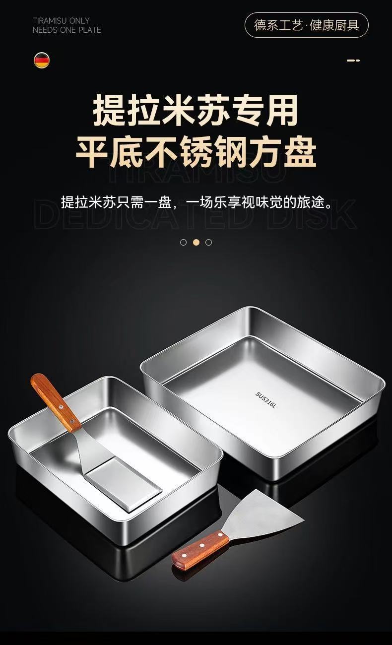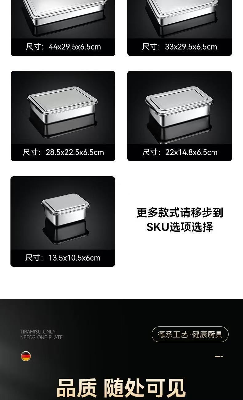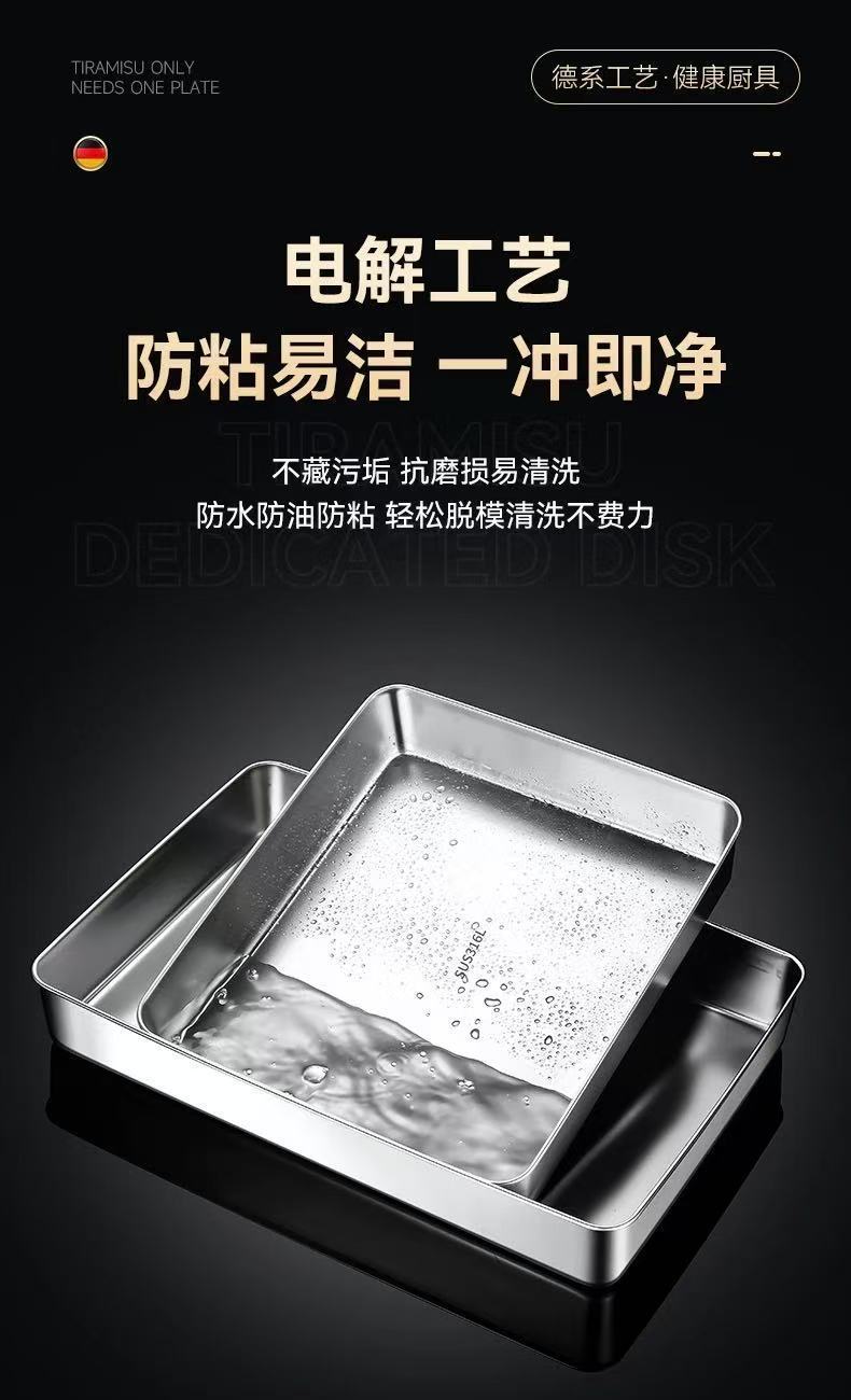 두꺼운 스테인레스 스틸 접시 티라미수 몰드 접시 스톨 특수 직사각형 트레이 뚜껑이 있는 평평한 바닥 접시