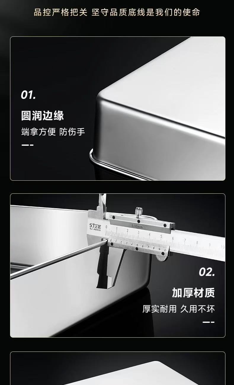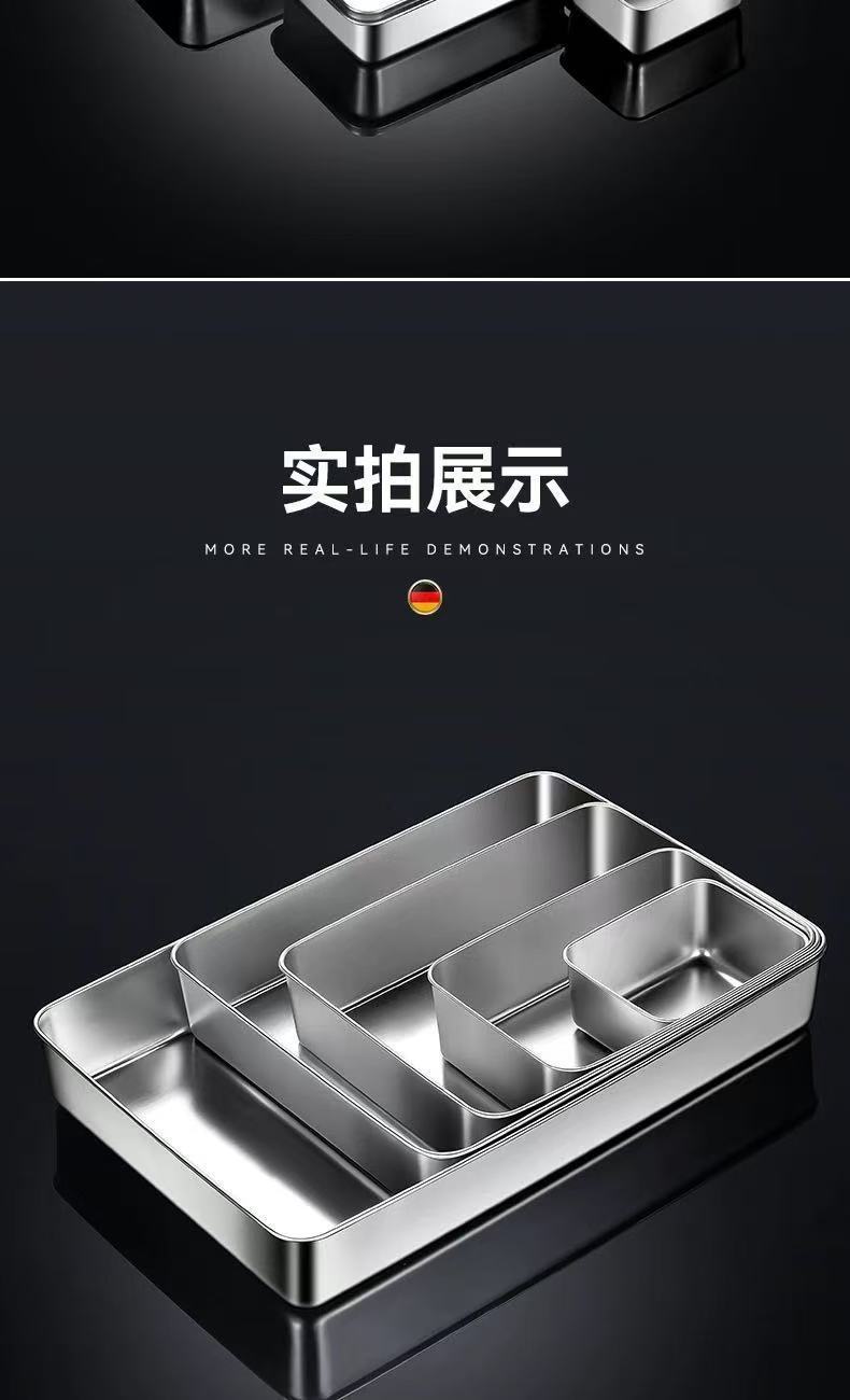 두꺼운 스테인레스 스틸 접시 티라미수 몰드 접시 스톨 특수 직사각형 트레이 뚜껑이 있는 평평한 바닥 접시스토어 가기