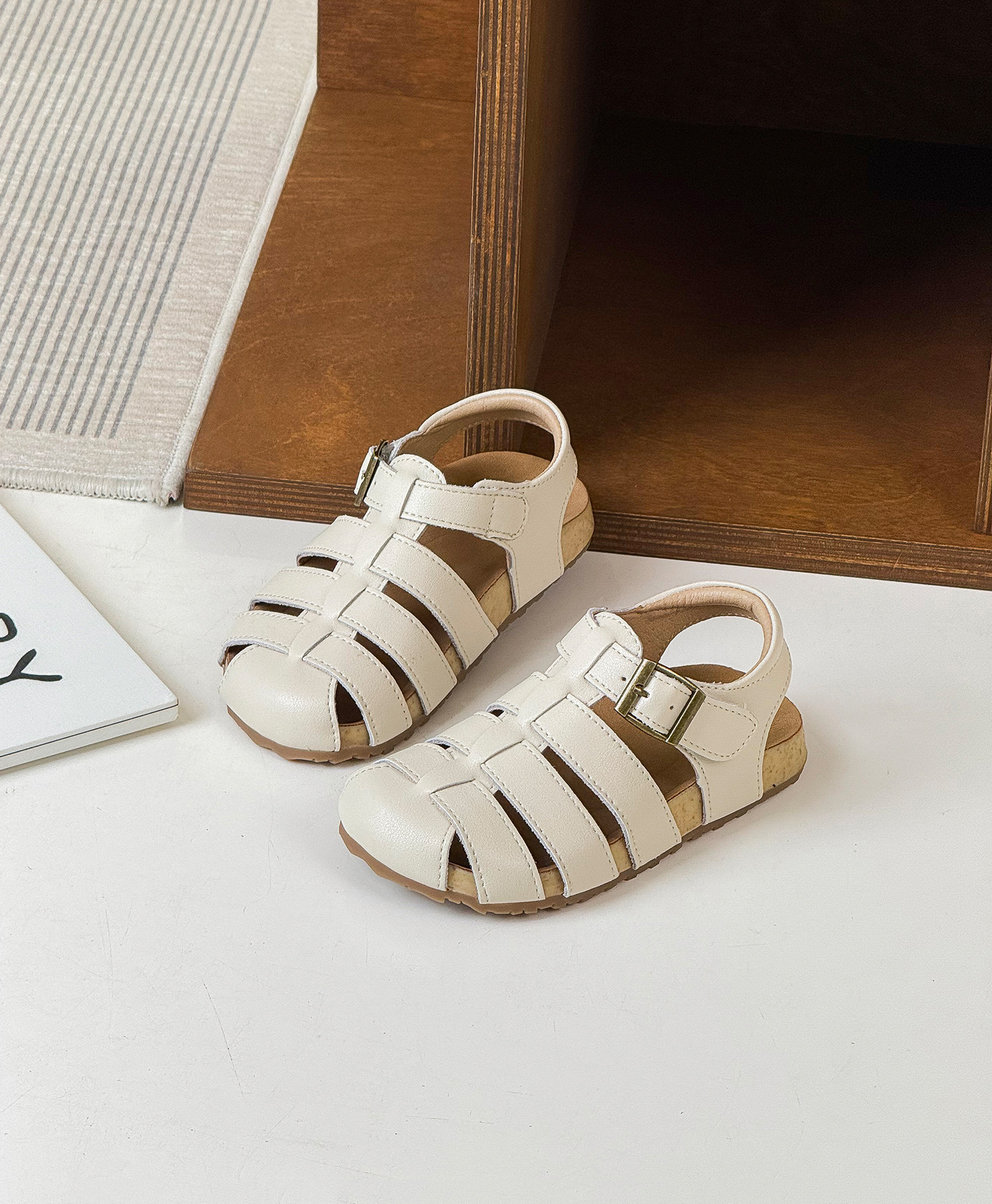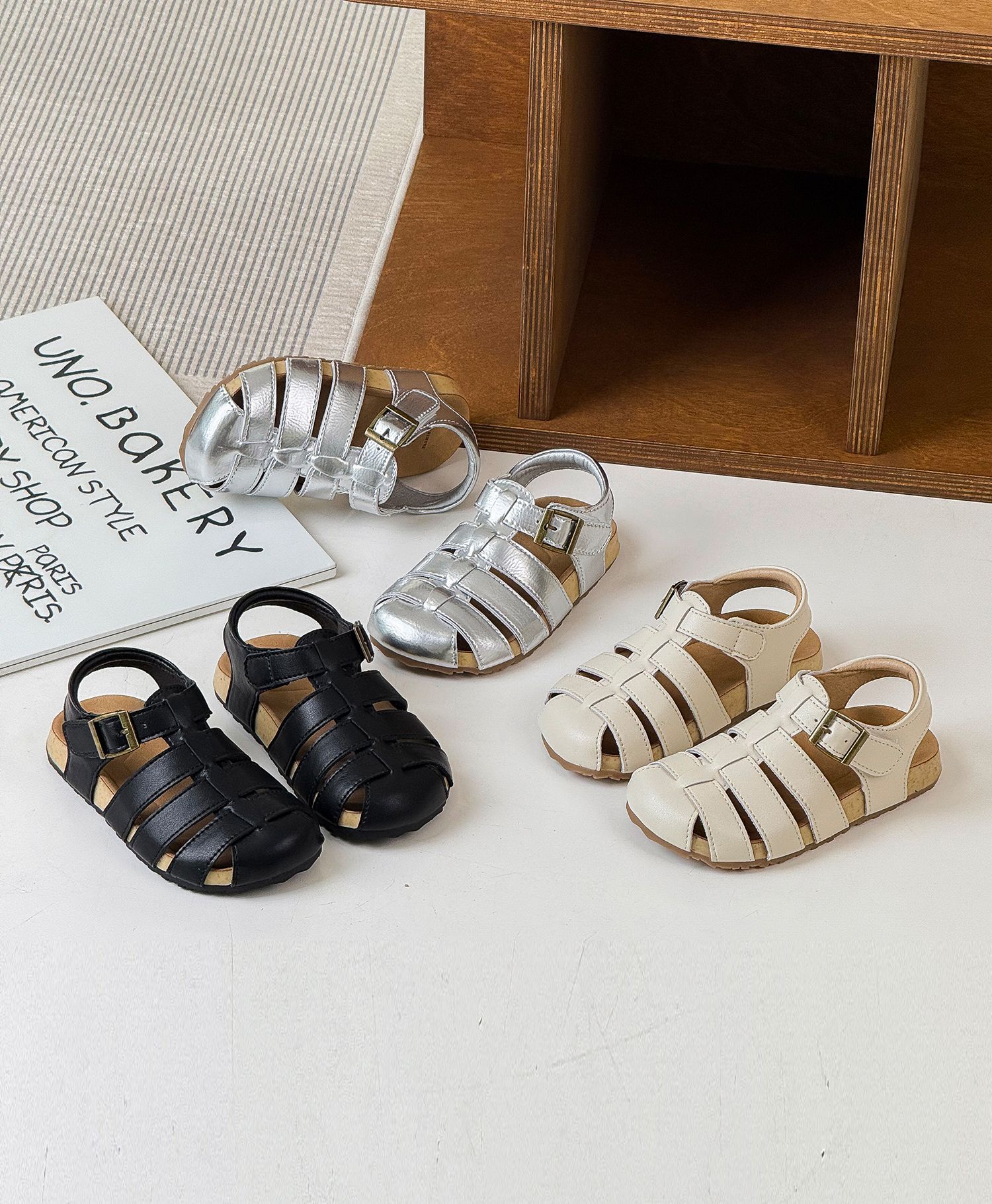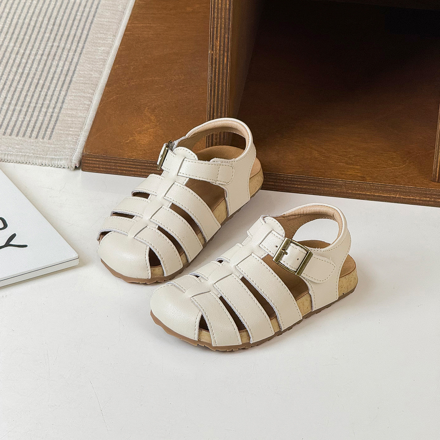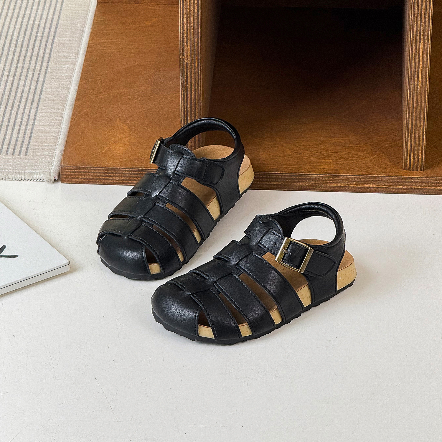 2025 새로운 여름 어린이 한국 패션 짠 발가락 로마 샌들 소녀 부드러운 단독 미끄럼 방지 아기 신발