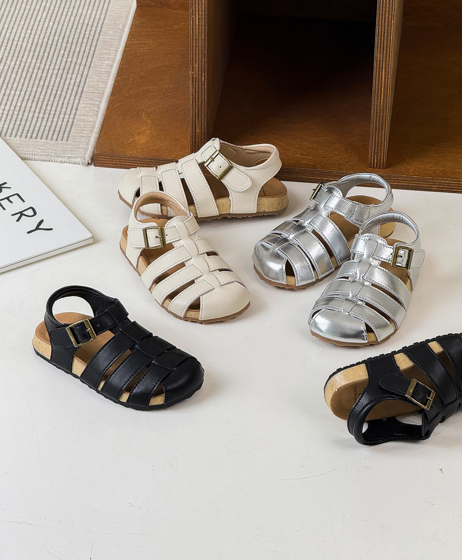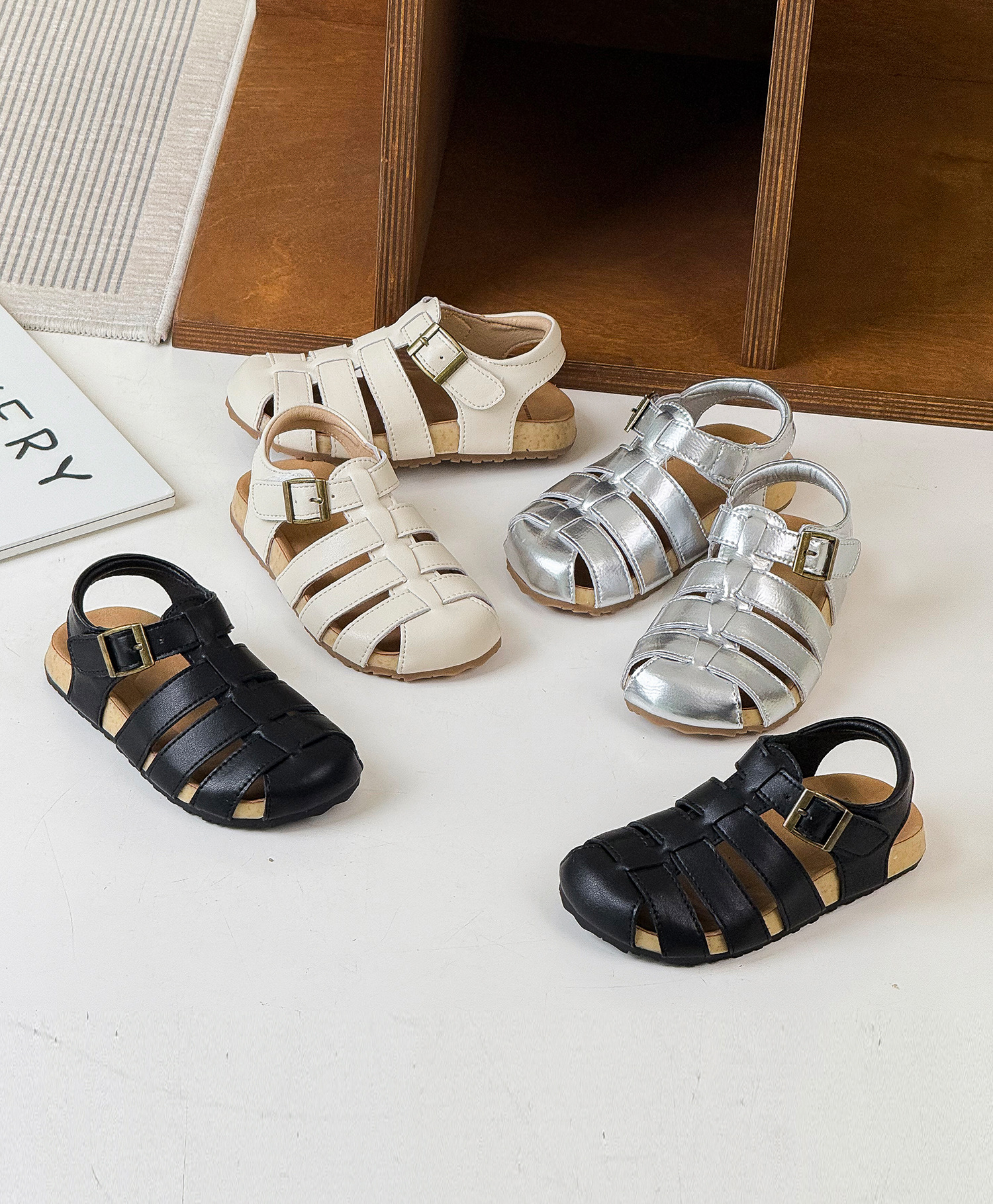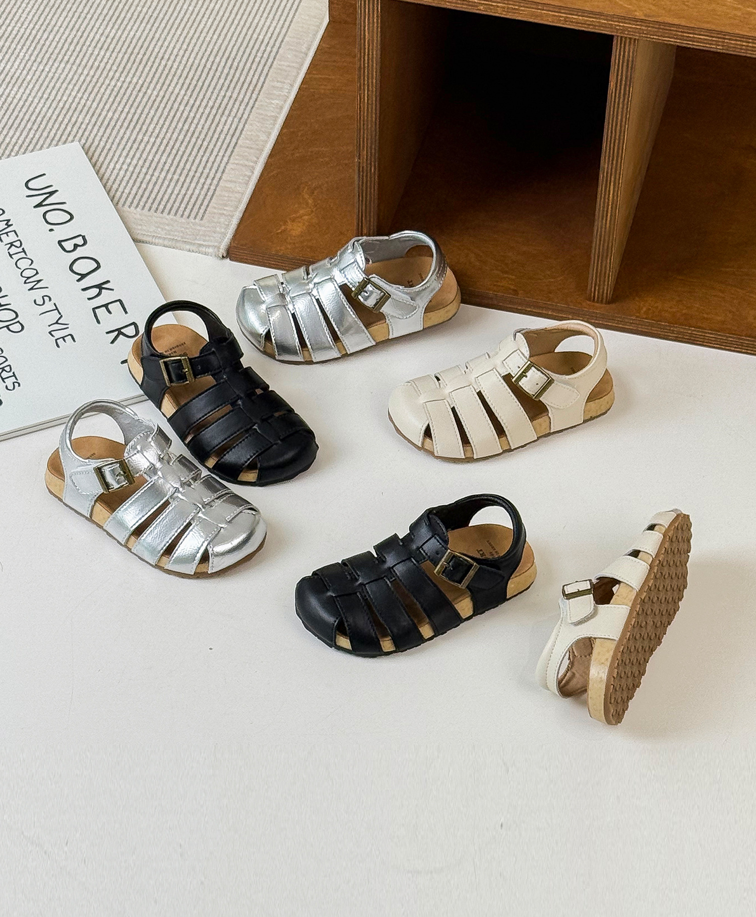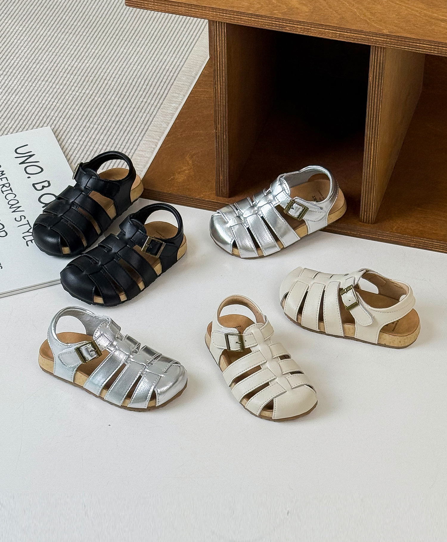 2025 새로운 여름 어린이 한국 패션 짠 발가락 로마 샌들 소녀 부드러운 단독 미끄럼 방지 아기 신발