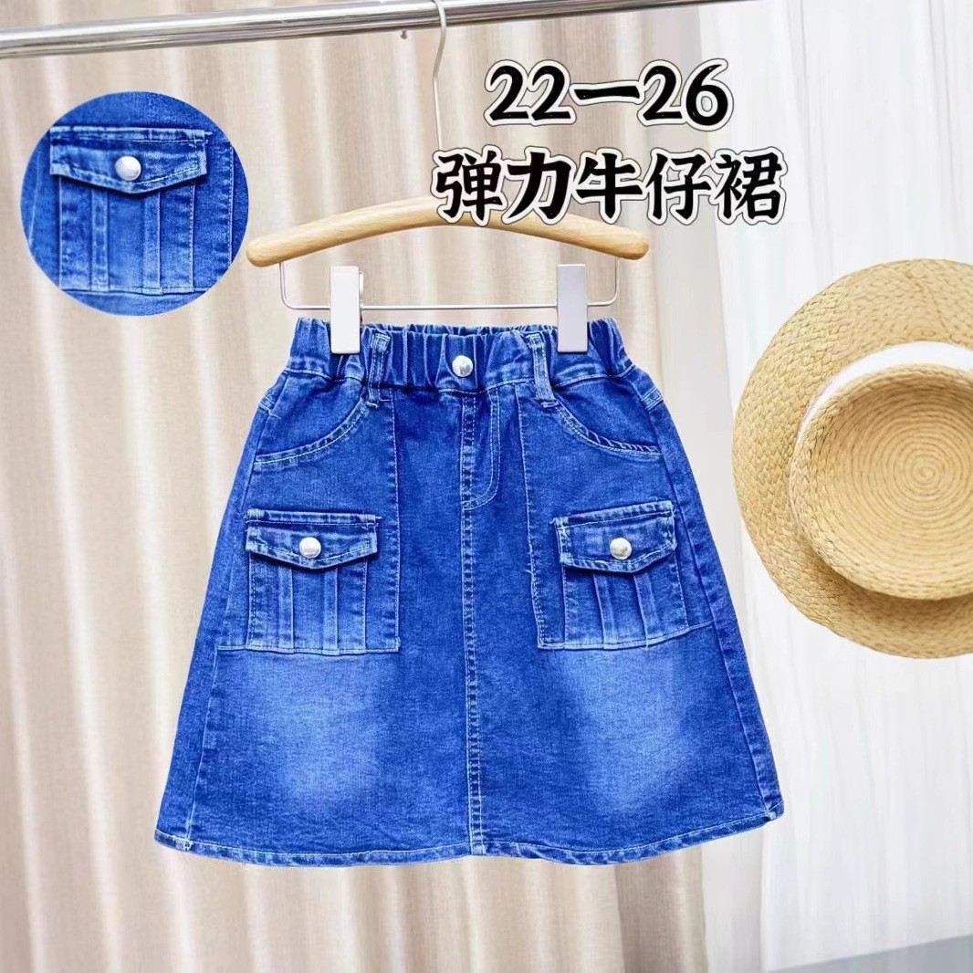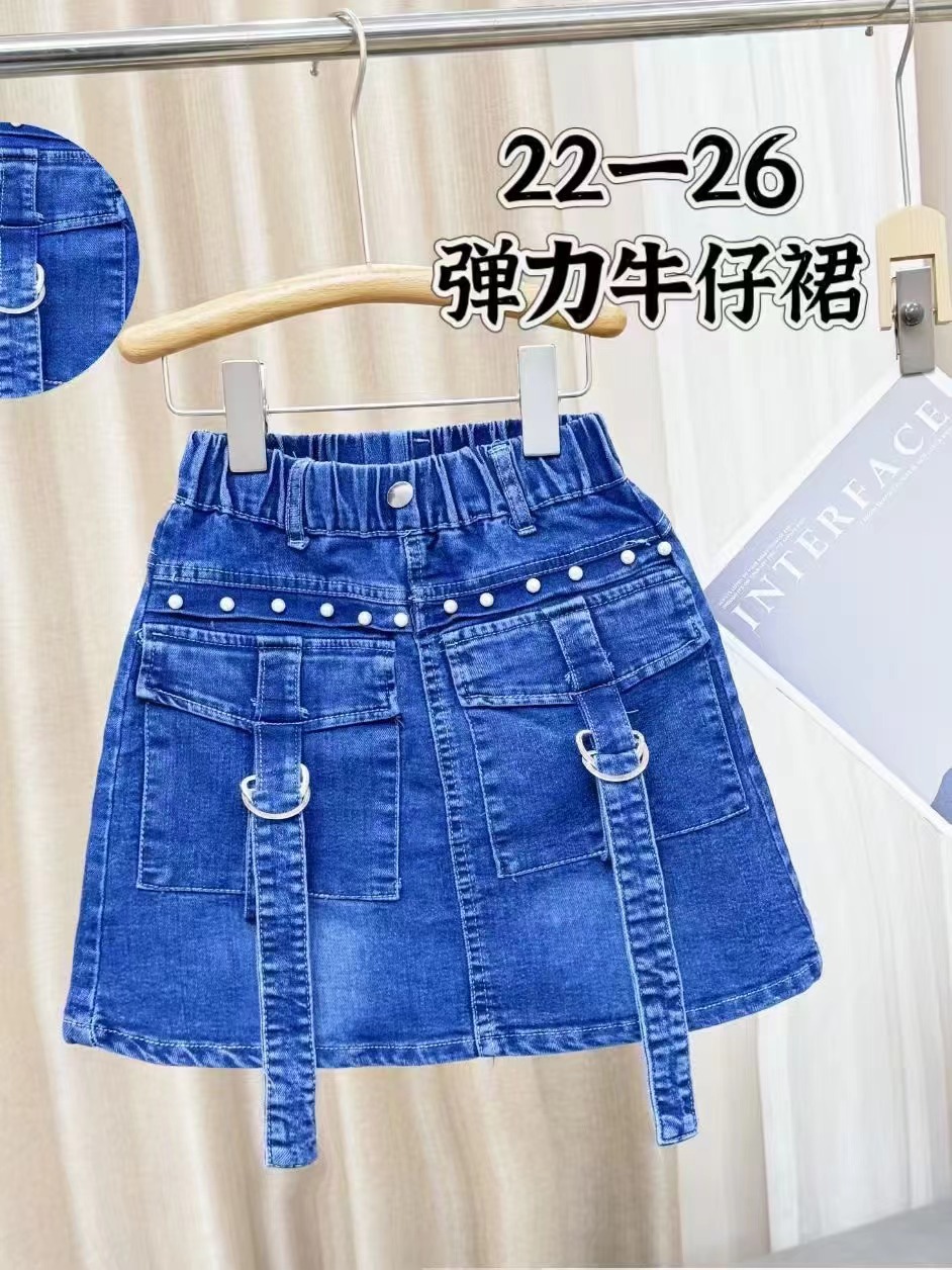 여름 원피스 데님 절반 길이 2025 새로운 스타일 어린 소녀 캐주얼 패셔너블 스커트 진주 케이크 스커트 대외 무역 공장
