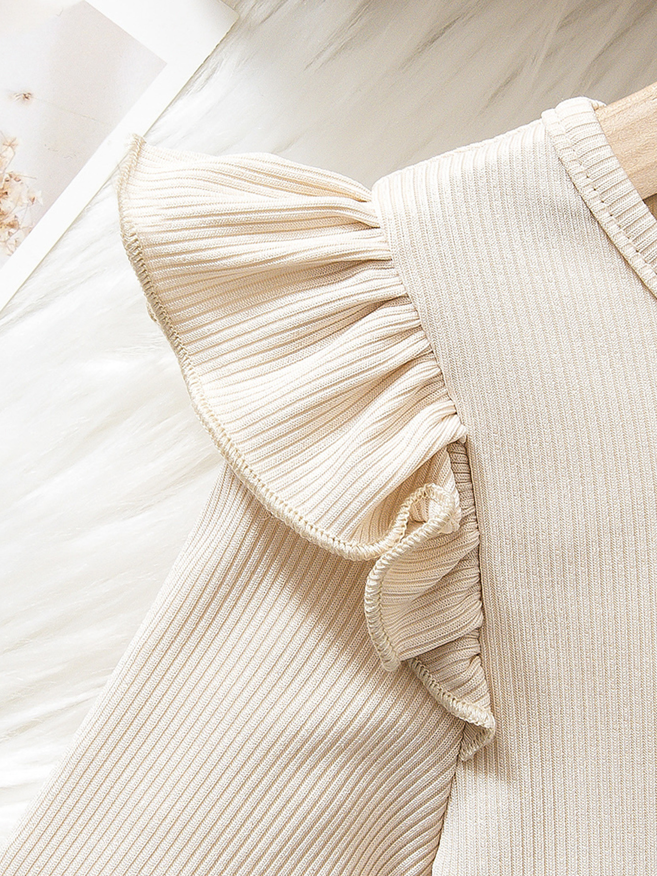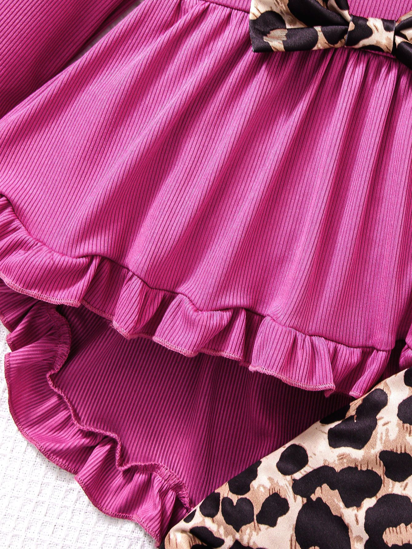 여아 니트 단색 라운드넥 패치워크 드레스 세트 비대칭 스커트+캐주얼 스포츠 레깅스 2피스 세트