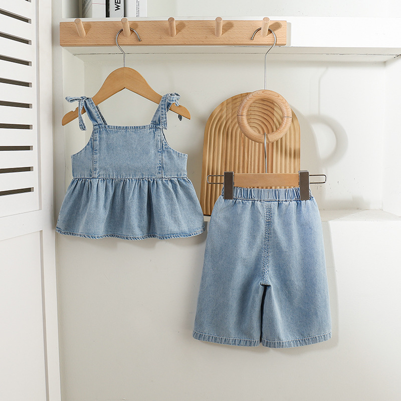 아기 데님 세트 여름 아기 소녀 옷 얇은 유행 여름 옷 유아 1 세 소녀 2 피스 세트