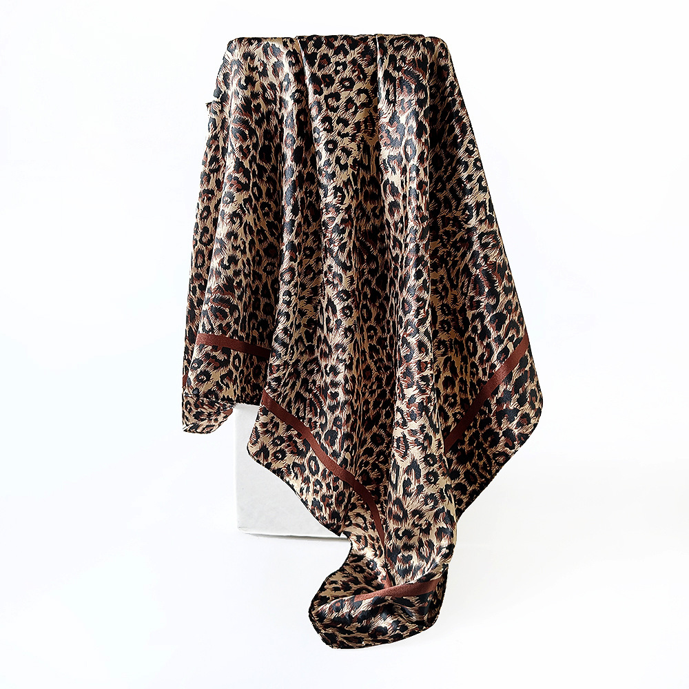 새로운 레오파드 무늬 실크 스카프 여성 가방 스카프 유럽과 미국 90cm 목도리 크로스 보더 모조 실크 새틴 스퀘어 도매