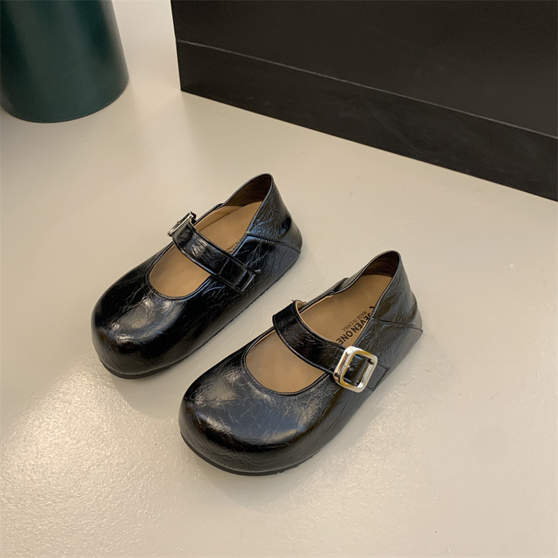 스커트가 있는 여성용 모리 스타일 플랫 슈즈 2025 봄 신작 원라인 버클 부드러운 가죽 부드러운 밑창 메리 제인 슈즈