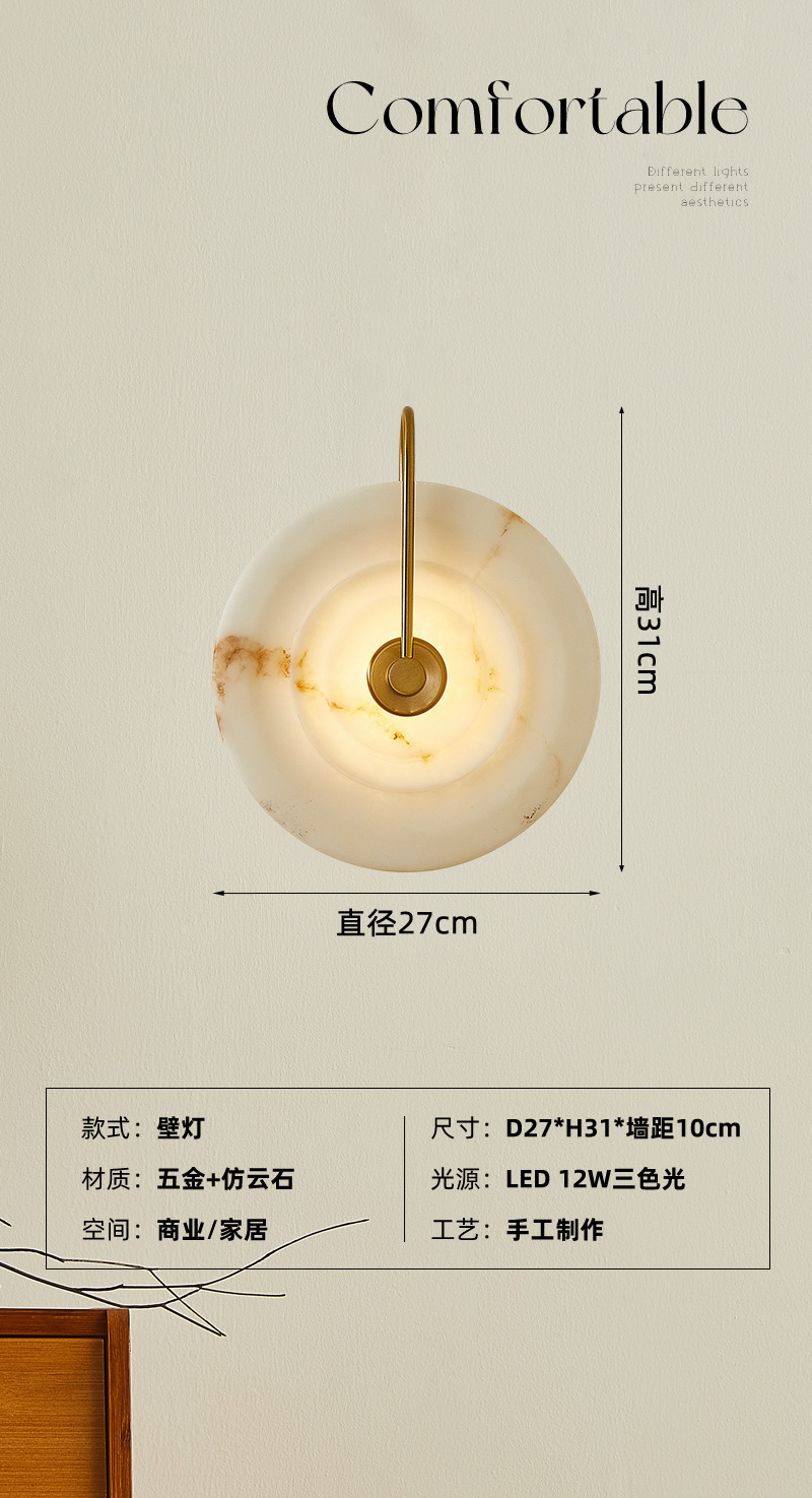 프랑스의 가벼운 고급 모조 대리석 벽 램프 거실 배경 벽 중세 스타일 현대 미니멀리스트 디자이너 침실 머리맡 램프스토어 가기