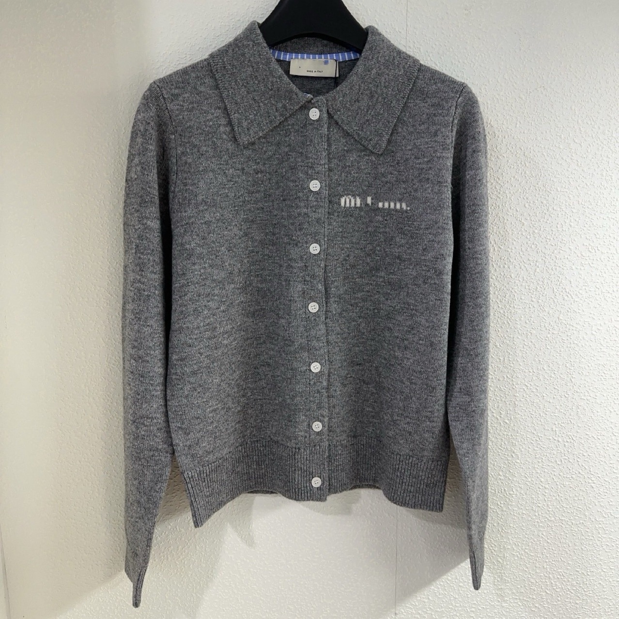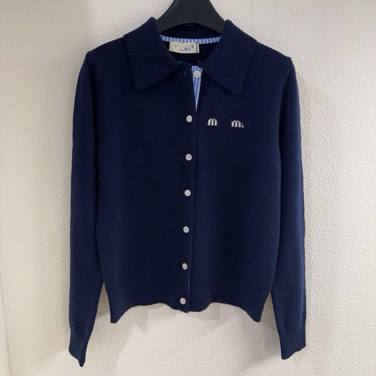 Nanyou 고급 여성 의류 레터 로고 새로운 칼라 울 니트 카디건 하이 버전 우아한 격자 무늬 패치 자켓스토어 가기