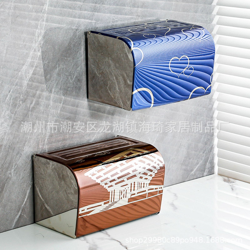 화장실 티슈 박스 화장실 롤 종이 상자 스테인레스 스틸 종이 상자 욕실 방수 손 종이 상자 저장 랙 펀치 프리스토어 가기