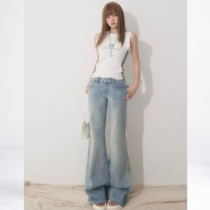 여성용 로우웨이스트 마이크로 플레어 진 2025년 신상 가을 겨울 연청 슬림핏 팬츠 다용도 플레어 팬츠