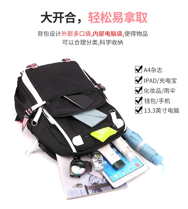 새로운 여행 가방 스포츠 가방 학생 학교 가방 배낭 USB 충전 가방 stray kids 대용량 가방스토어 가기