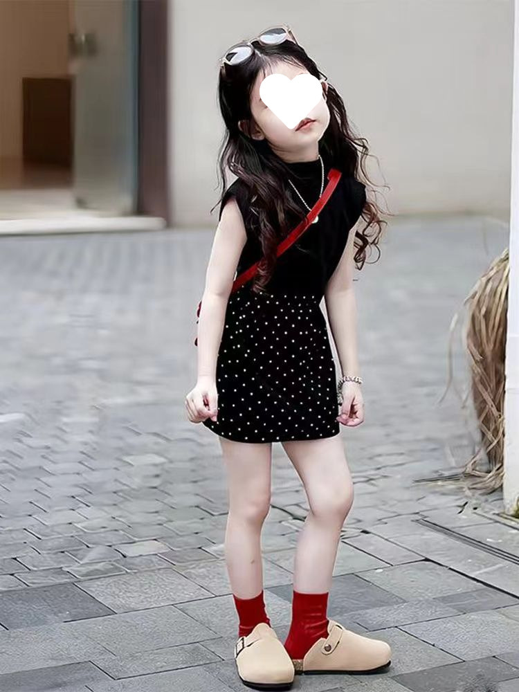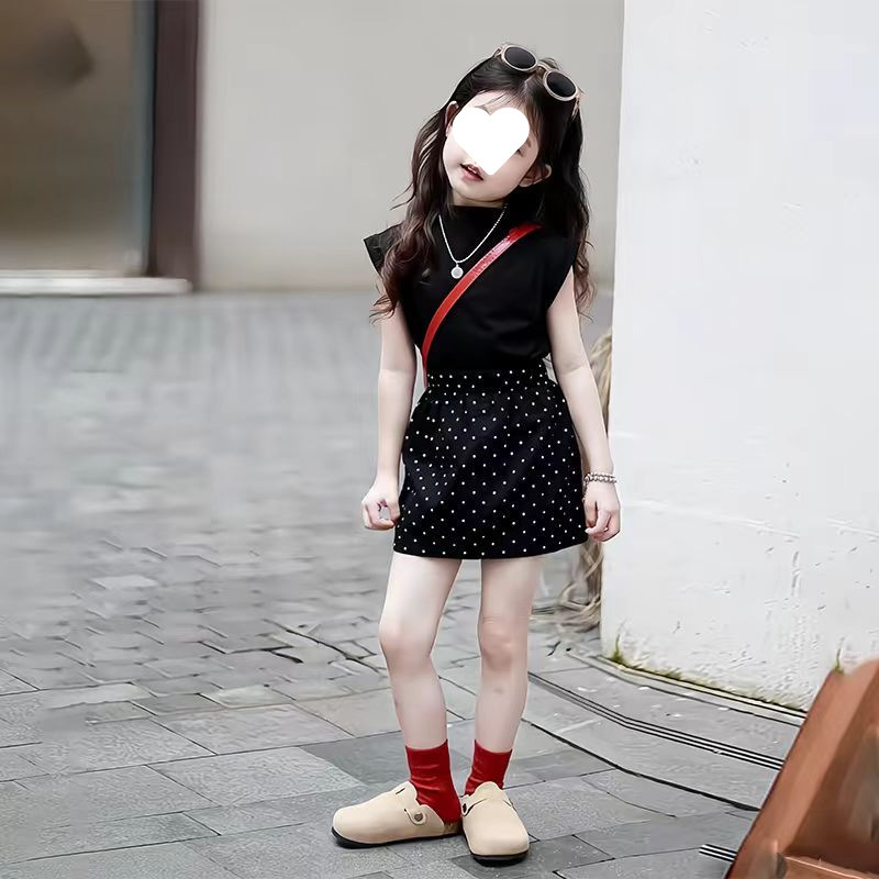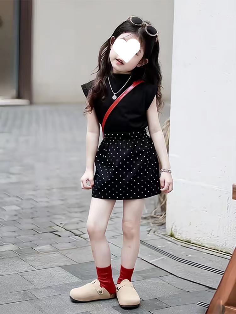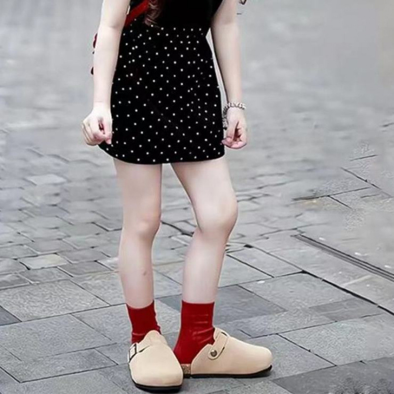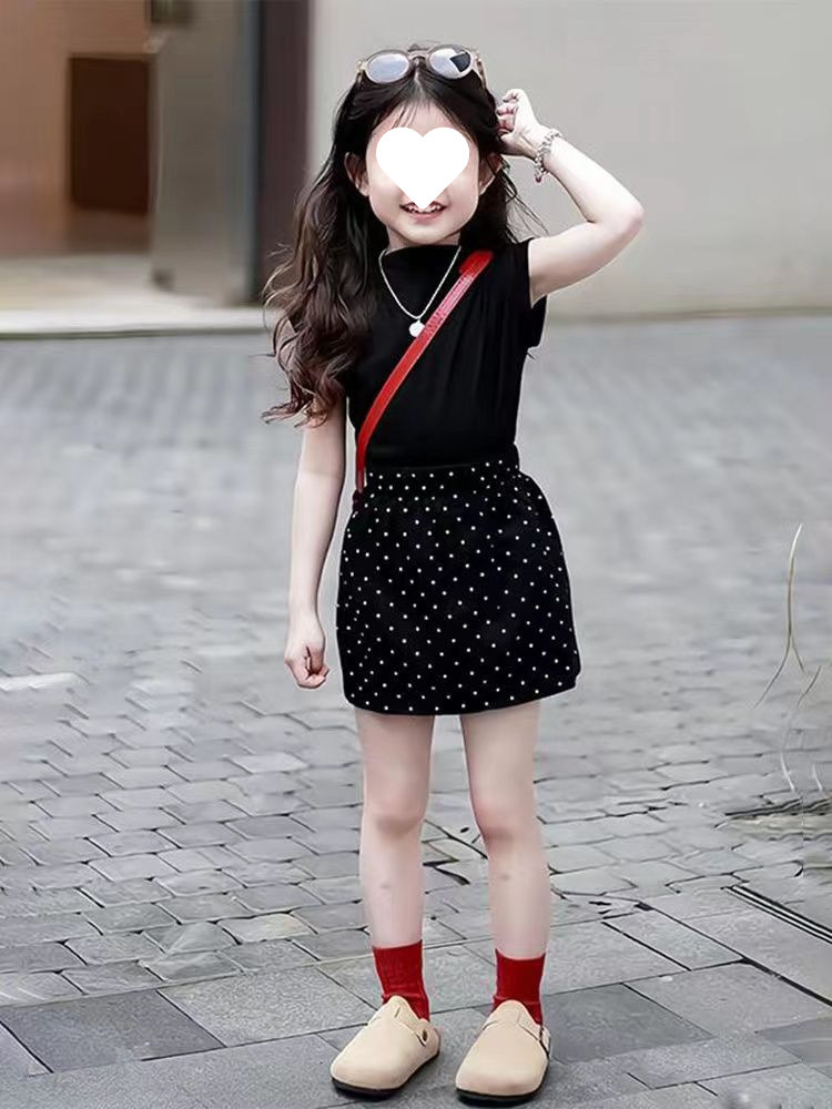 여아 스커트 힙 커버 짧은 스커트 여름 2025 새로운 하이 웨이스트 블랙 폴카 도트 캐주얼 다용도 A 라인 스커트스토어 가기