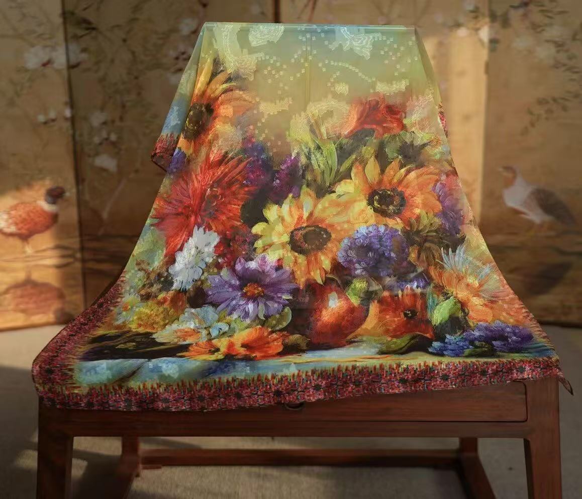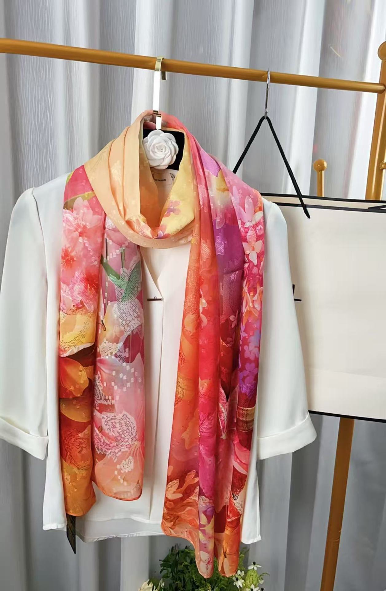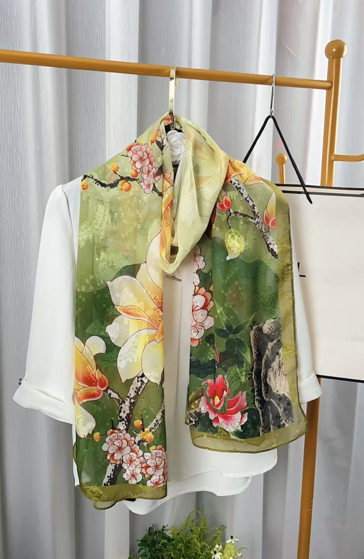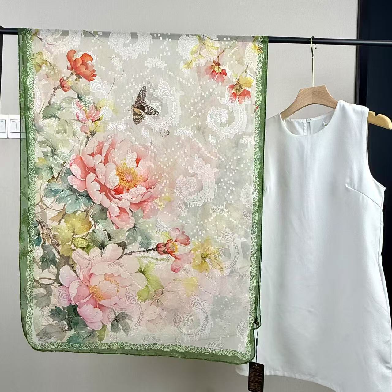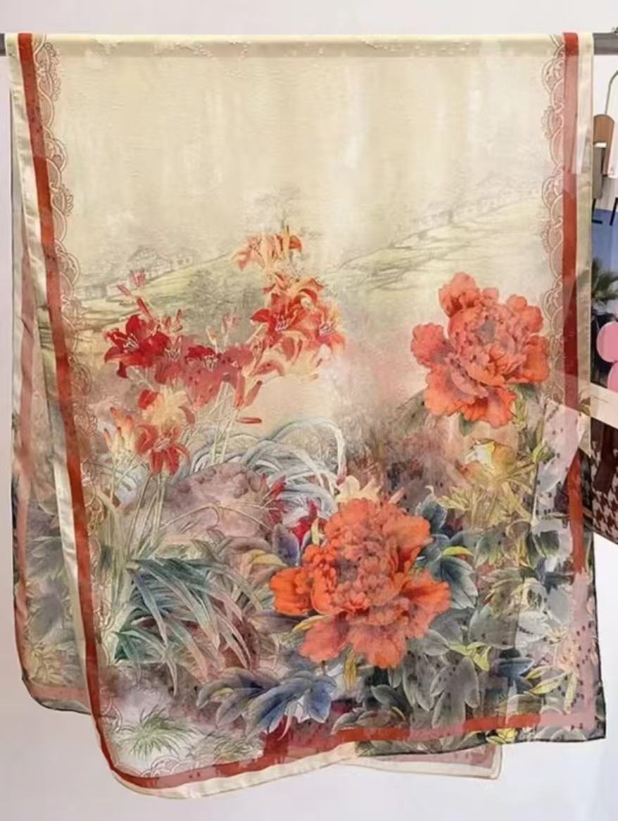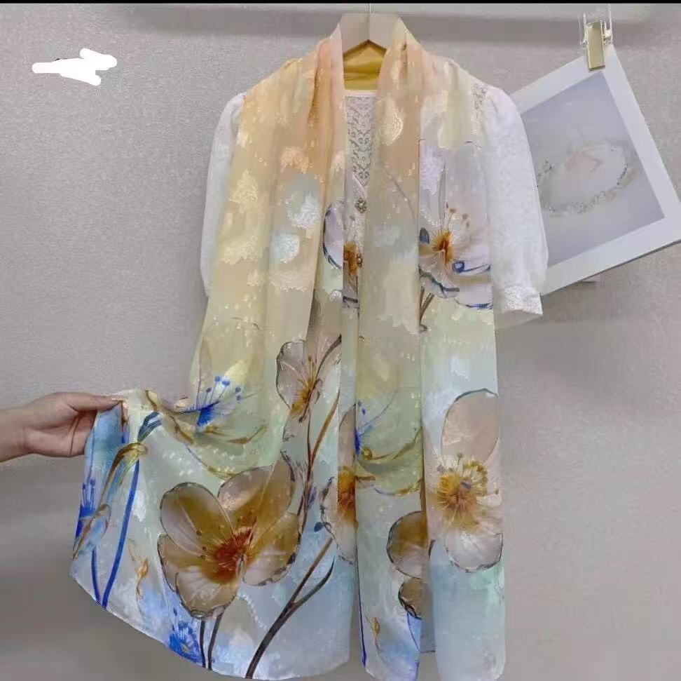 새로운 중국 스타일 컷 꽃 원사 긴 스카프 목도리 선스크린 실크 스카프 여행 선 스크린 실크 스카프 골동품 여름 새로운 스타일 우아한 스카프