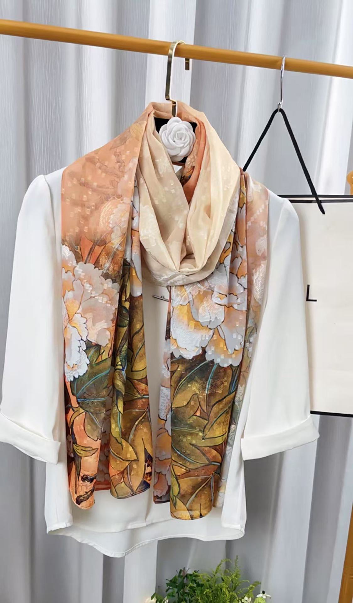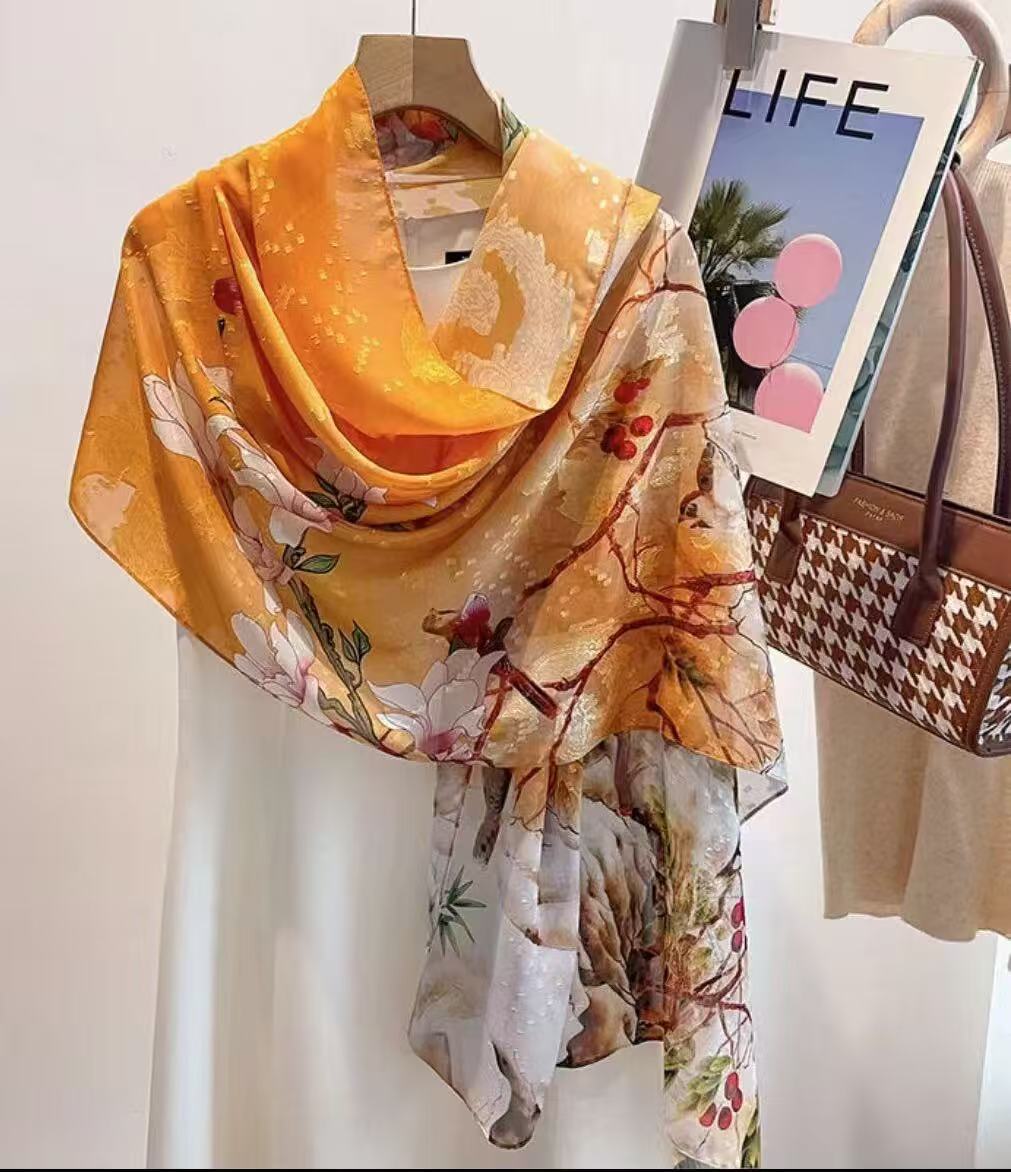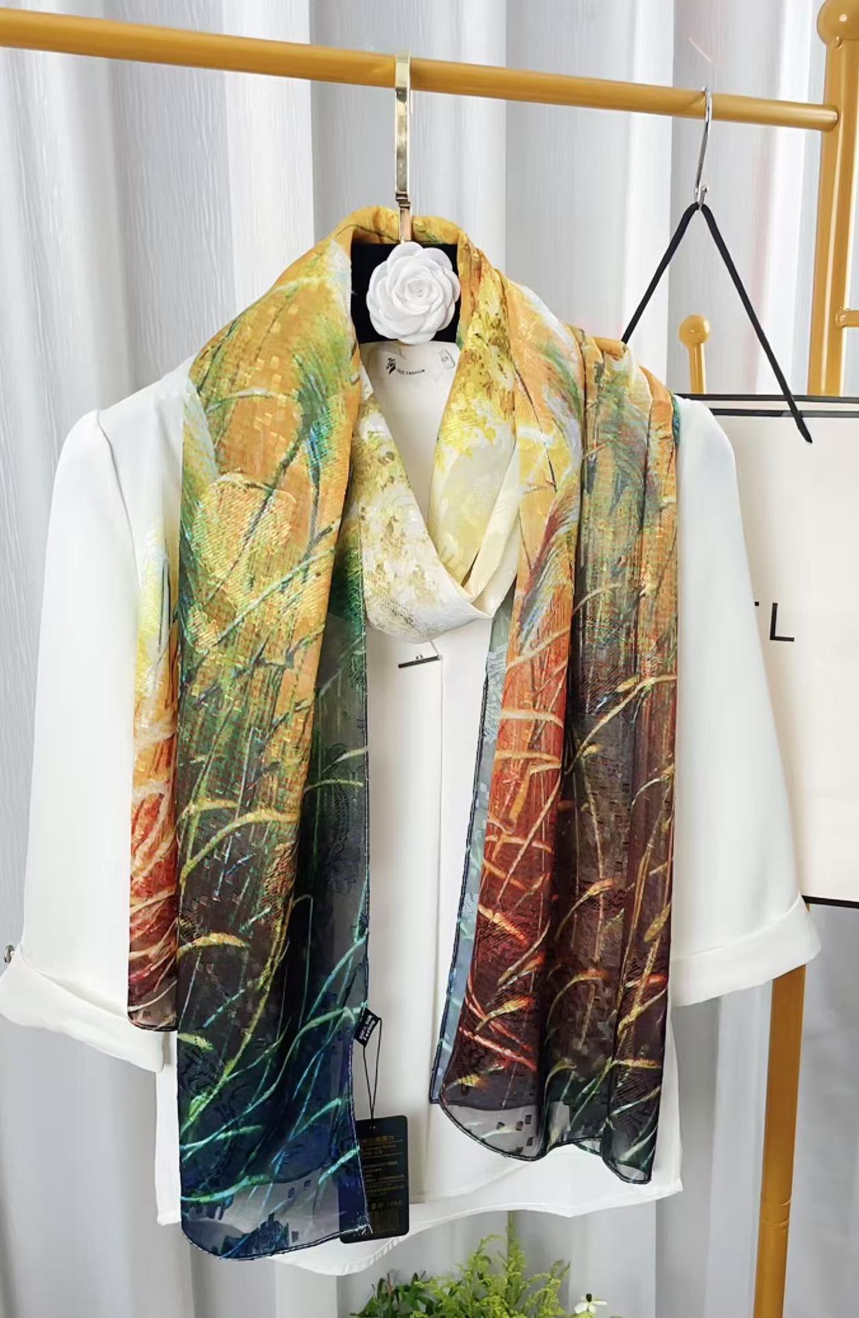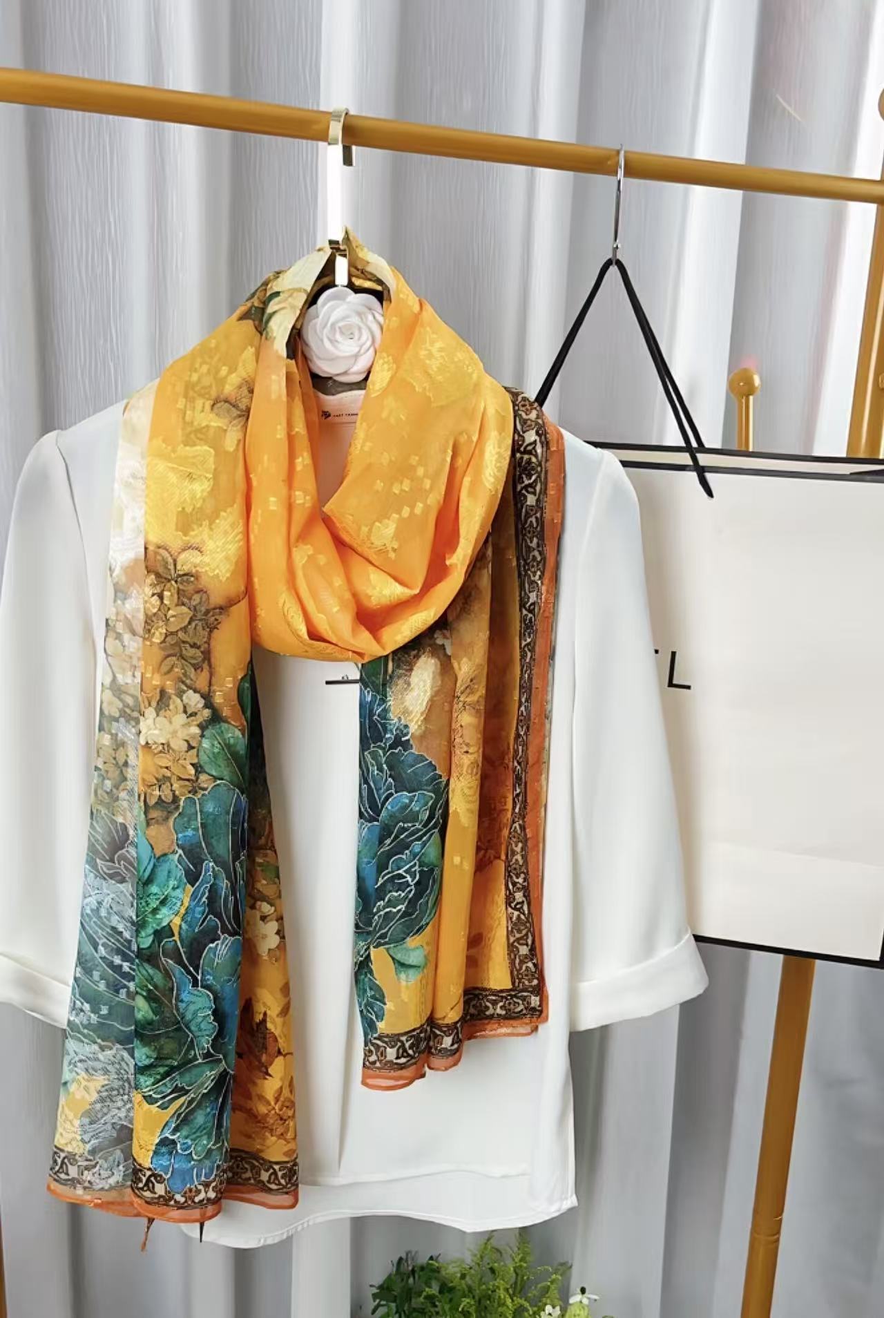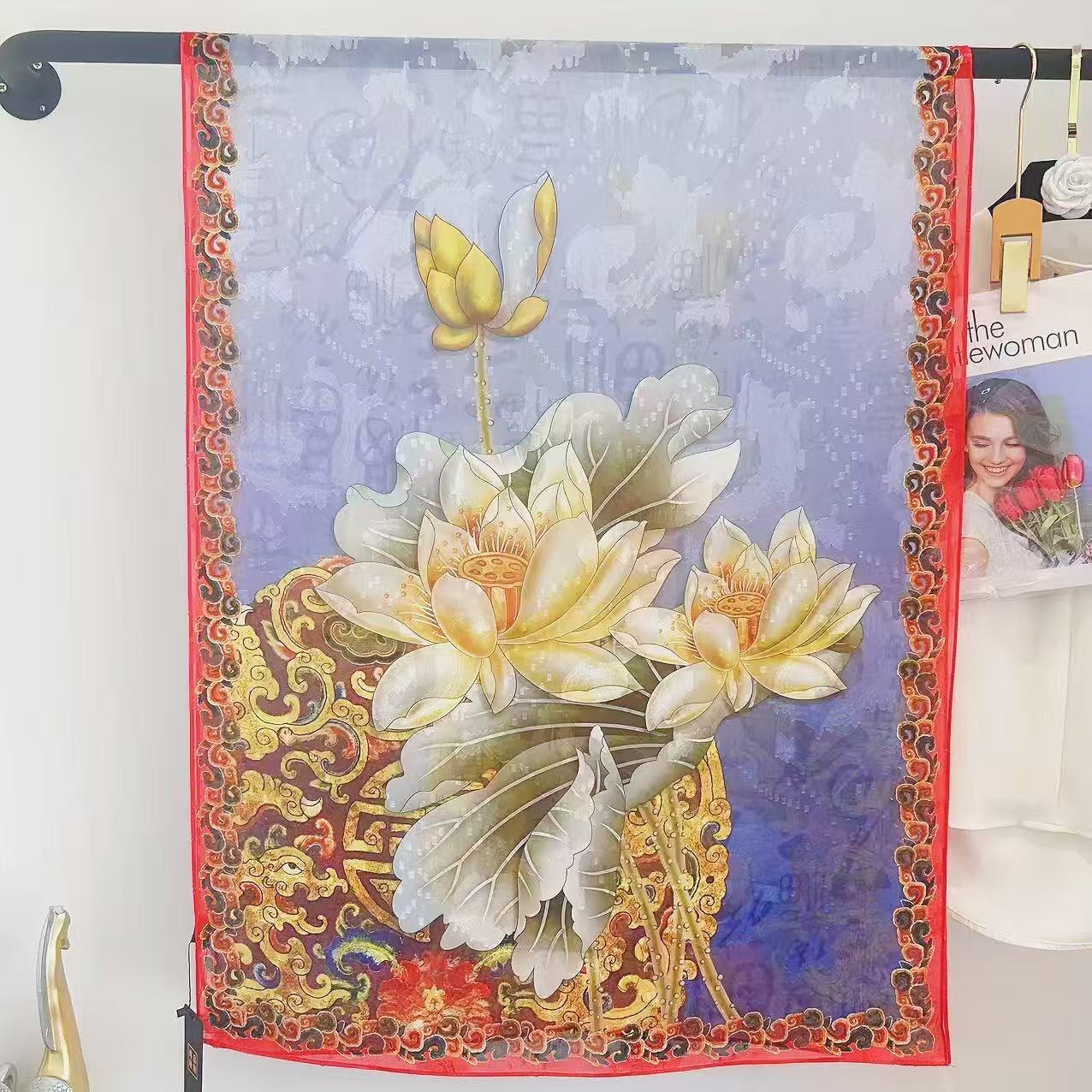 새로운 중국 스타일 컷 꽃 원사 긴 스카프 목도리 선스크린 실크 스카프 여행 선 스크린 실크 스카프 골동품 여름 새로운 스타일 우아한 스카프
