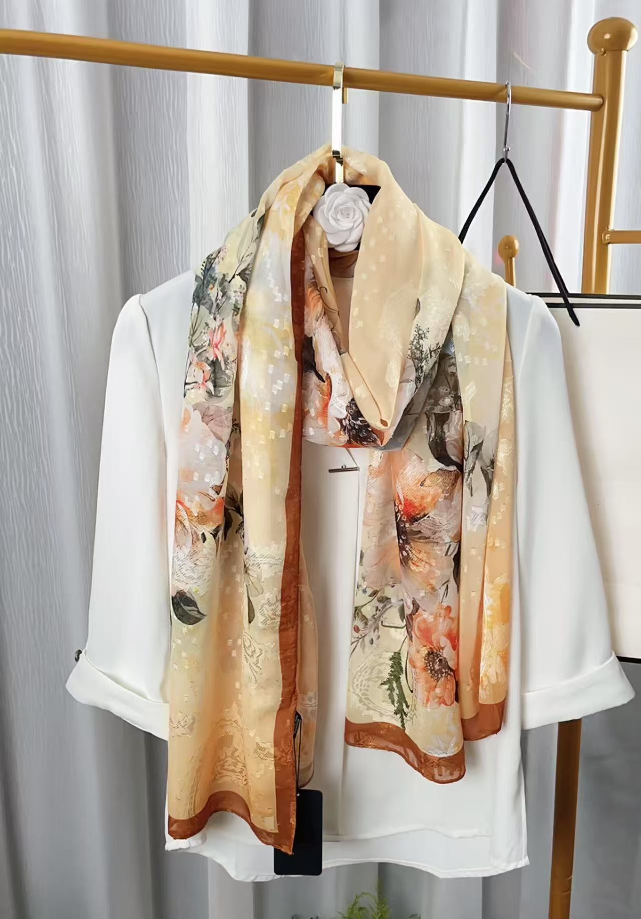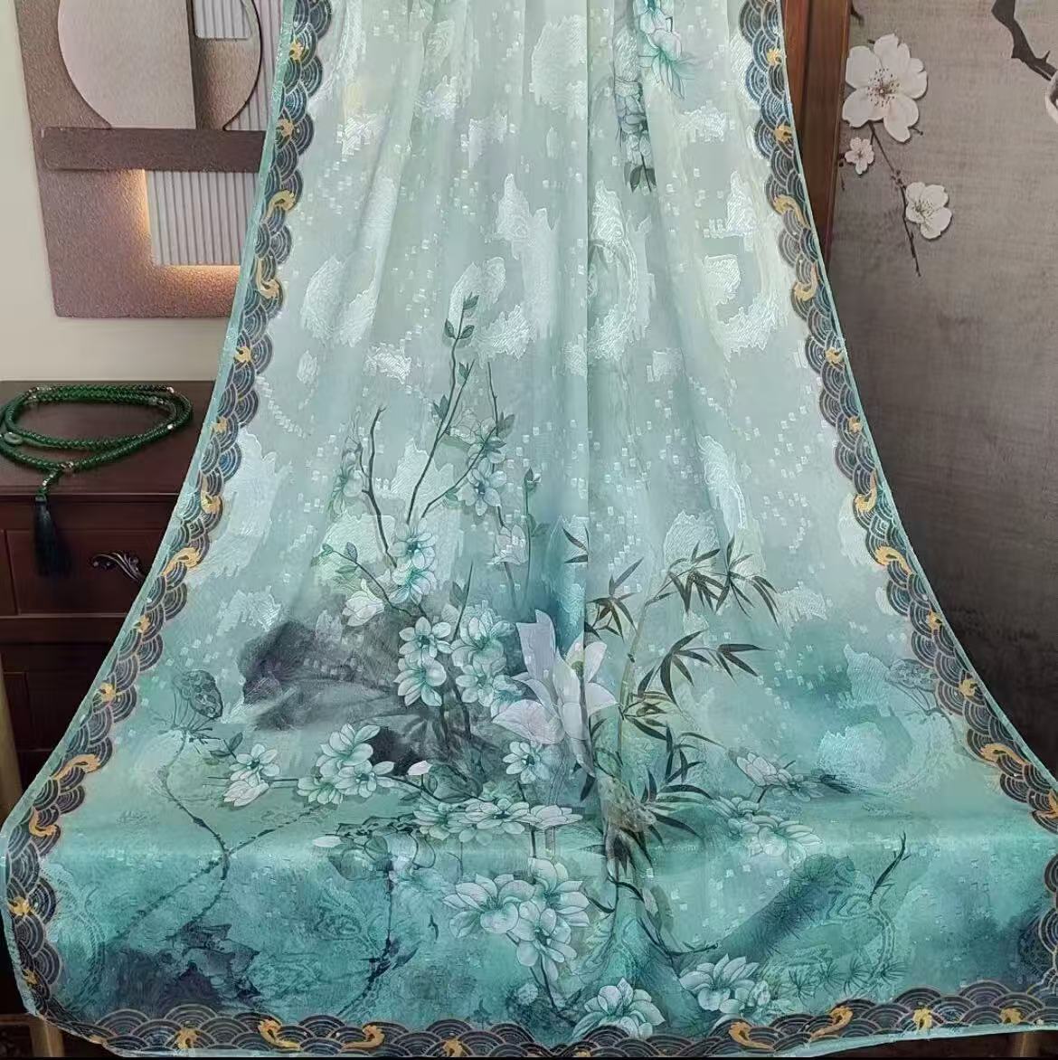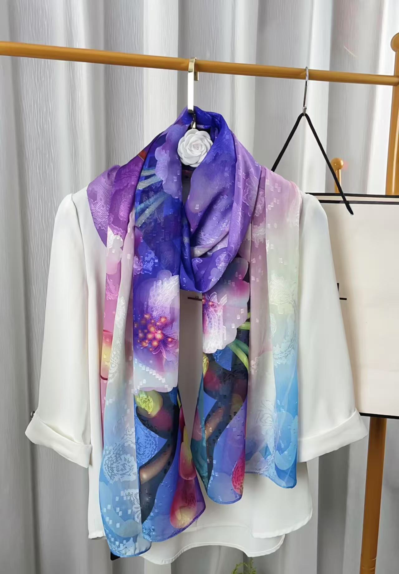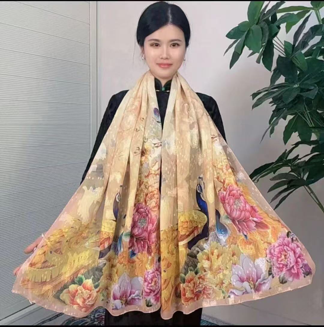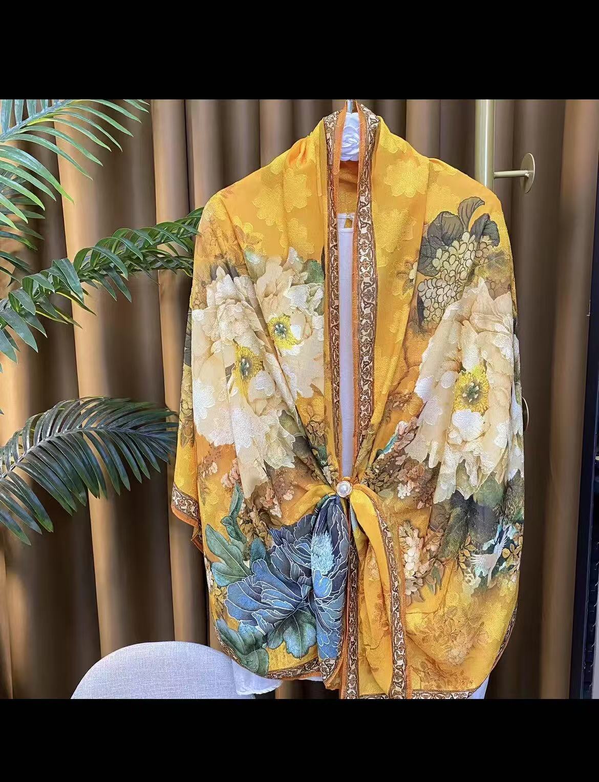 새로운 중국 스타일 컷 꽃 원사 긴 스카프 목도리 선스크린 실크 스카프 여행 선 스크린 실크 스카프 골동품 여름 새로운 스타일 우아한 스카프