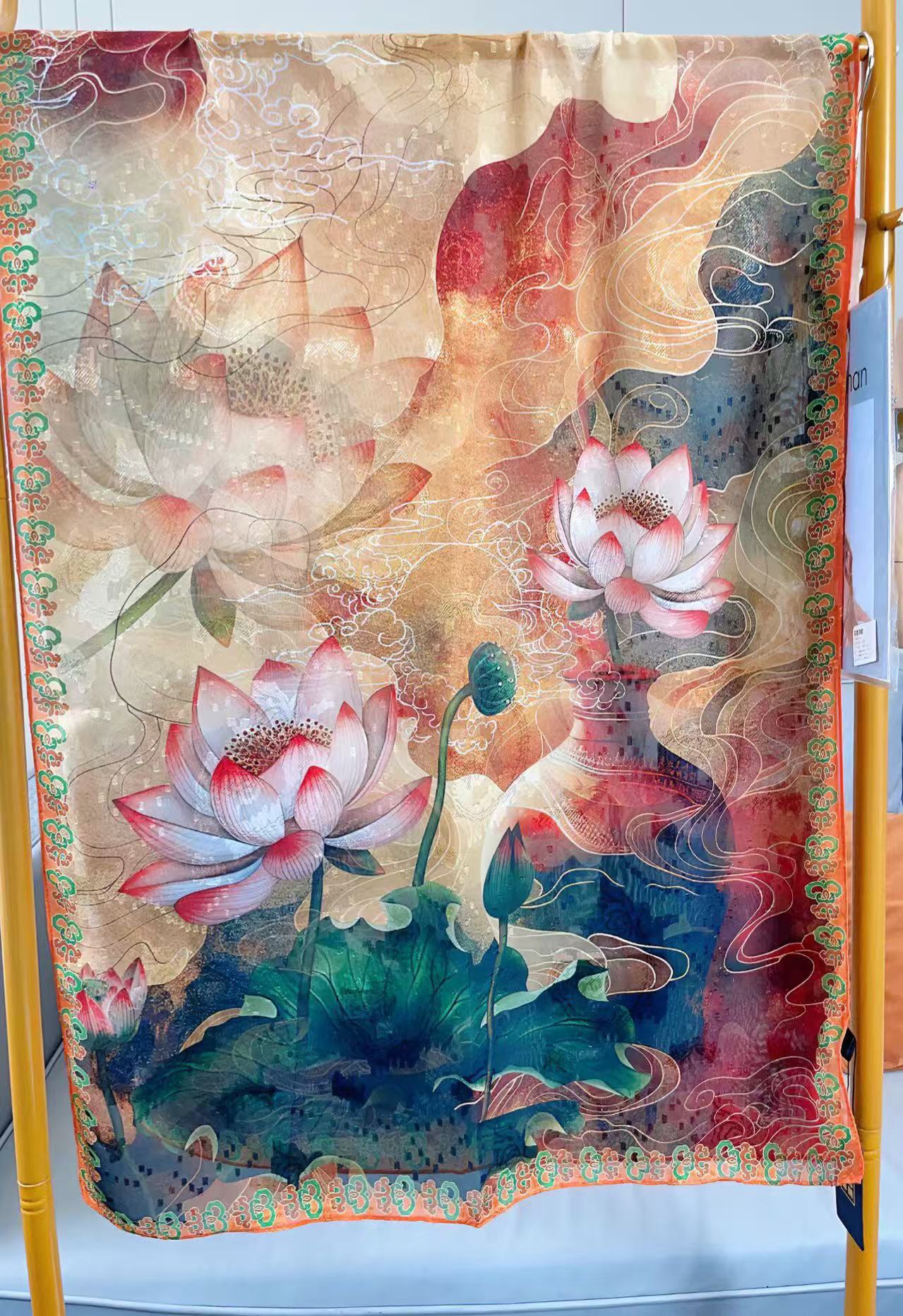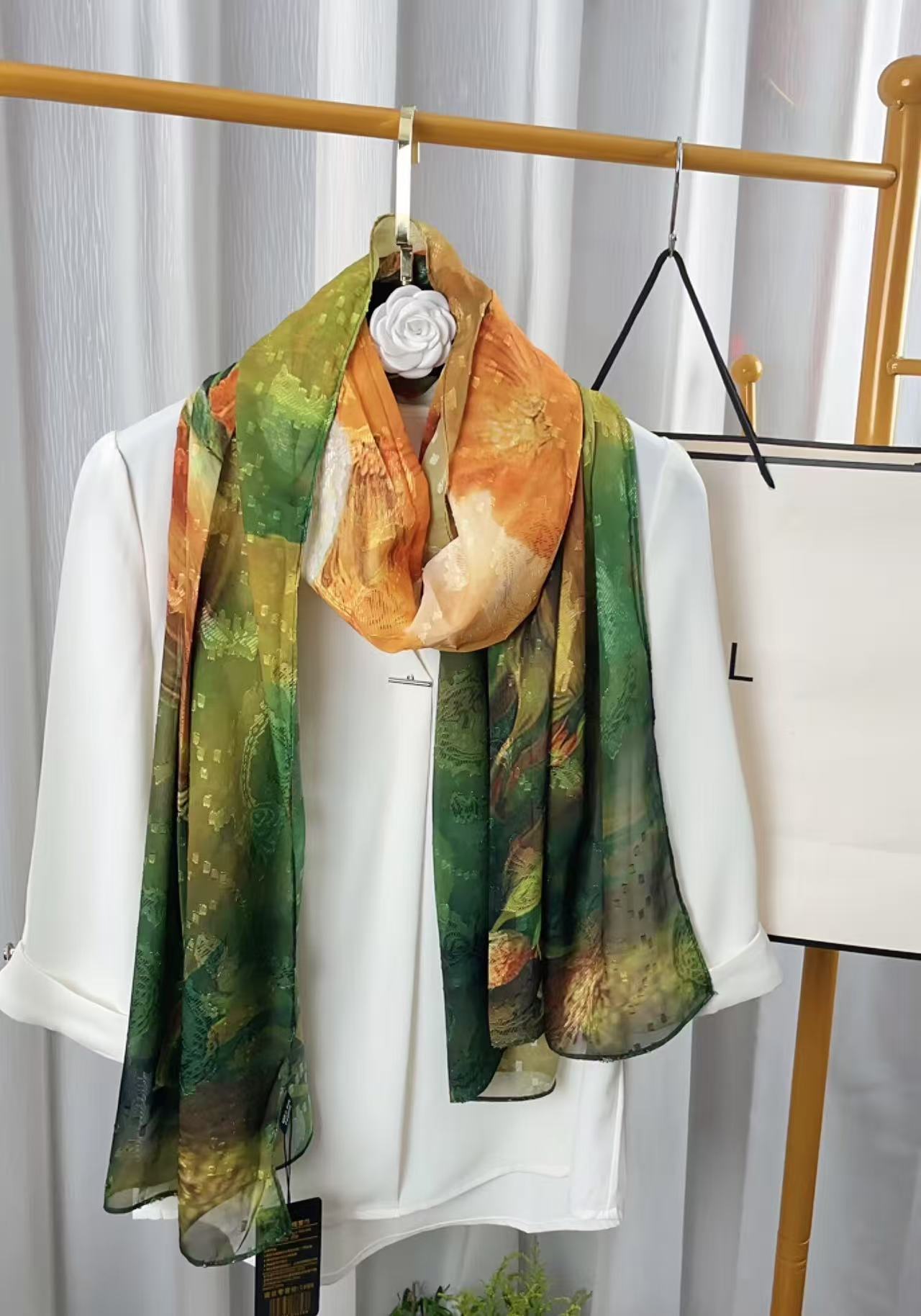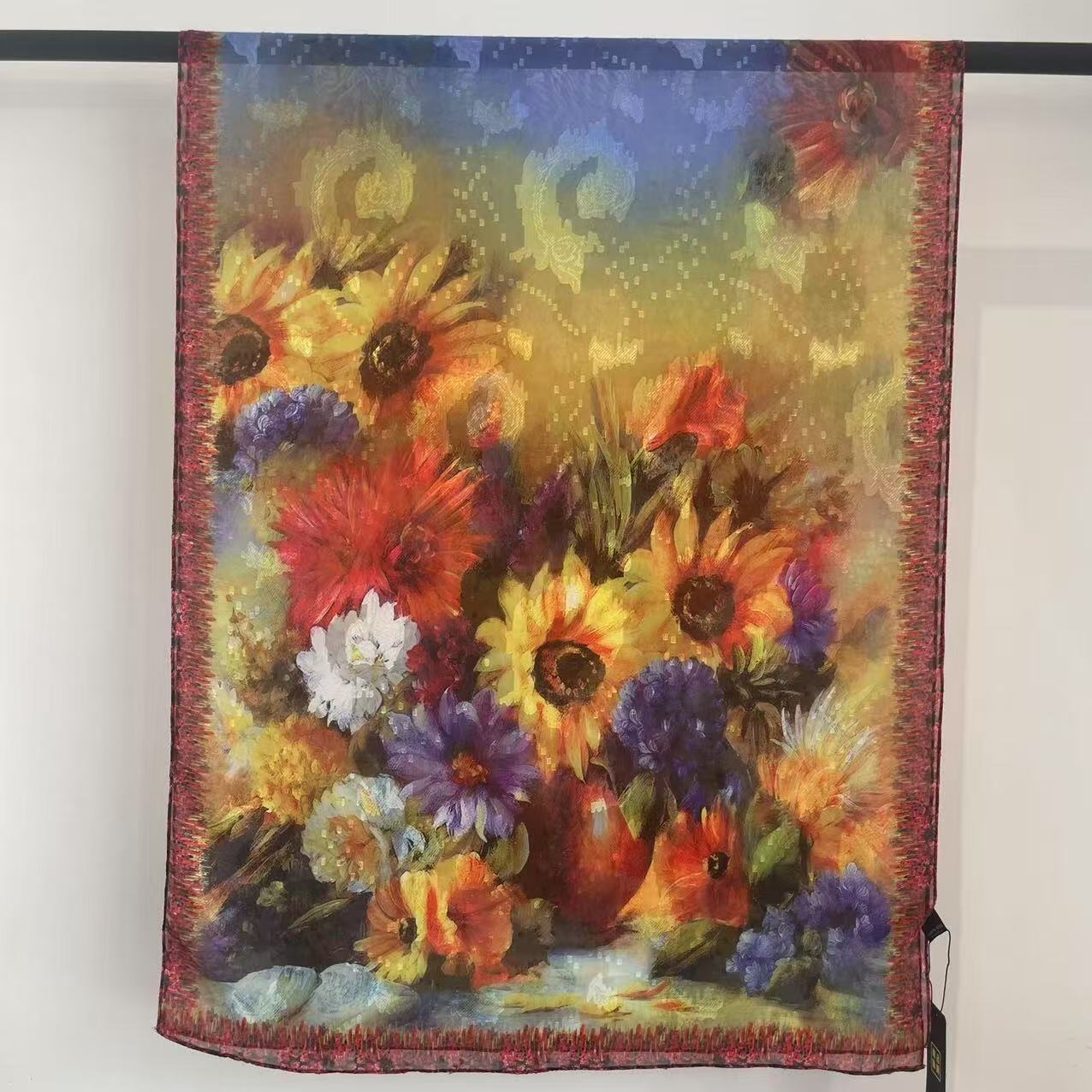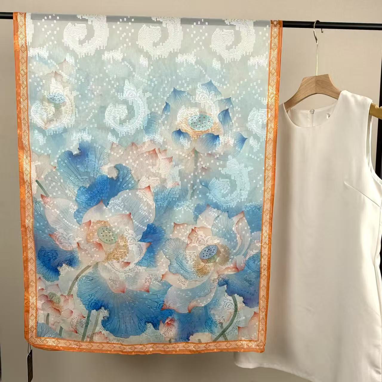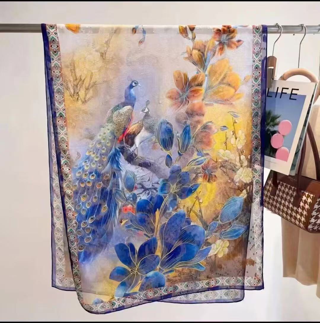 새로운 중국 스타일 컷 꽃 원사 긴 스카프 목도리 선스크린 실크 스카프 여행 선 스크린 실크 스카프 골동품 여름 새로운 스타일 우아한 스카프