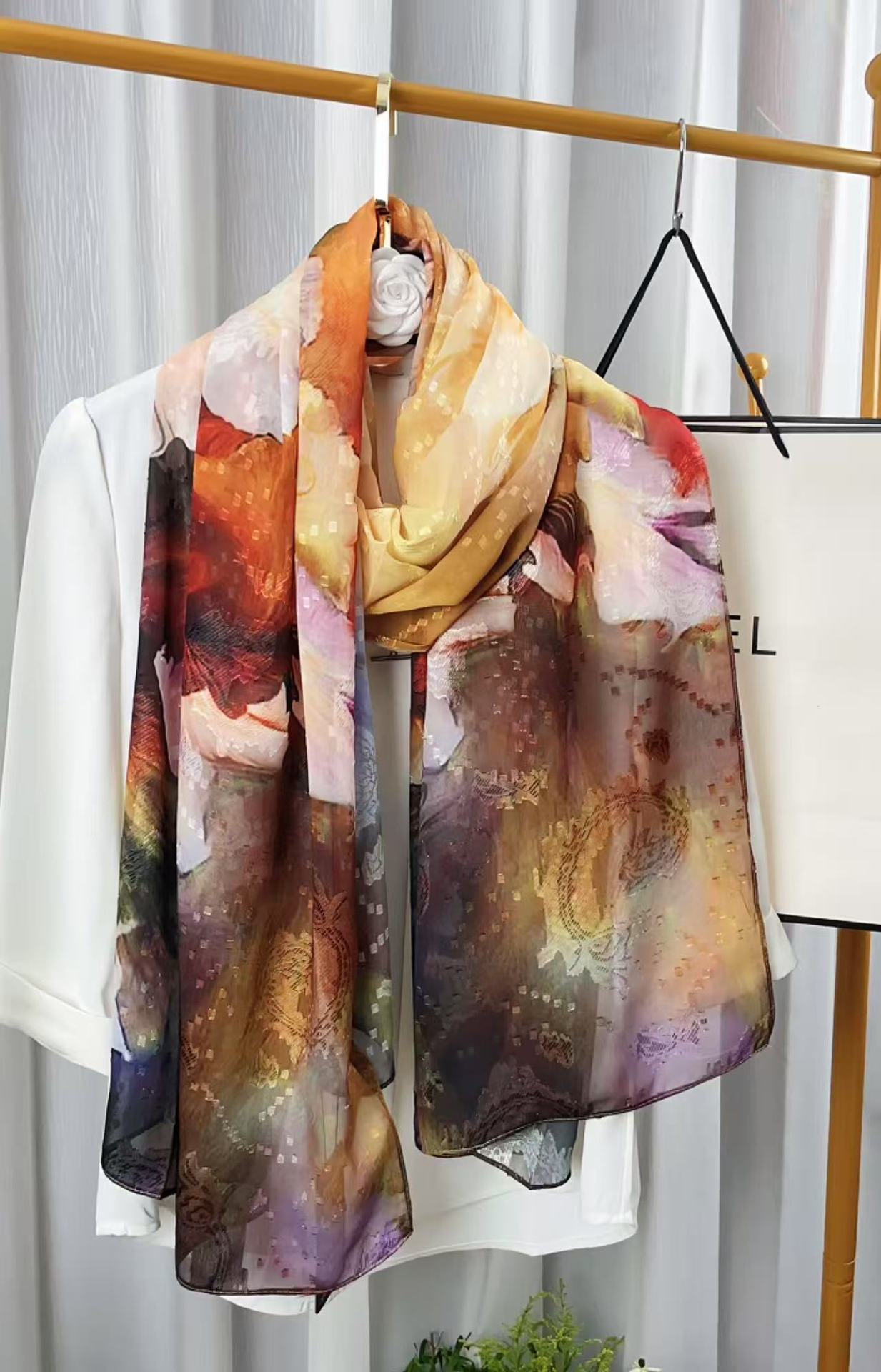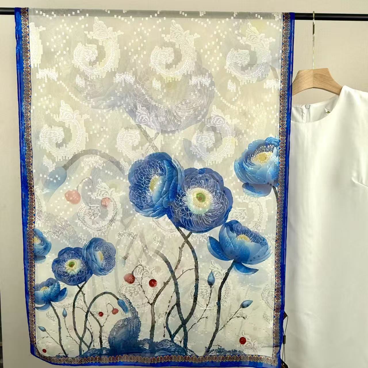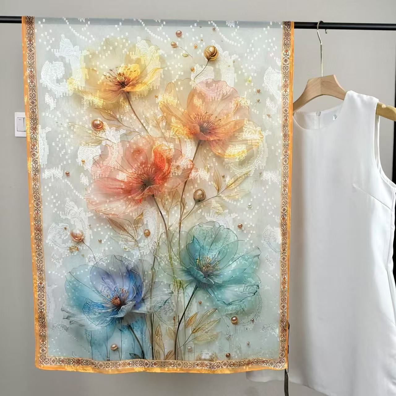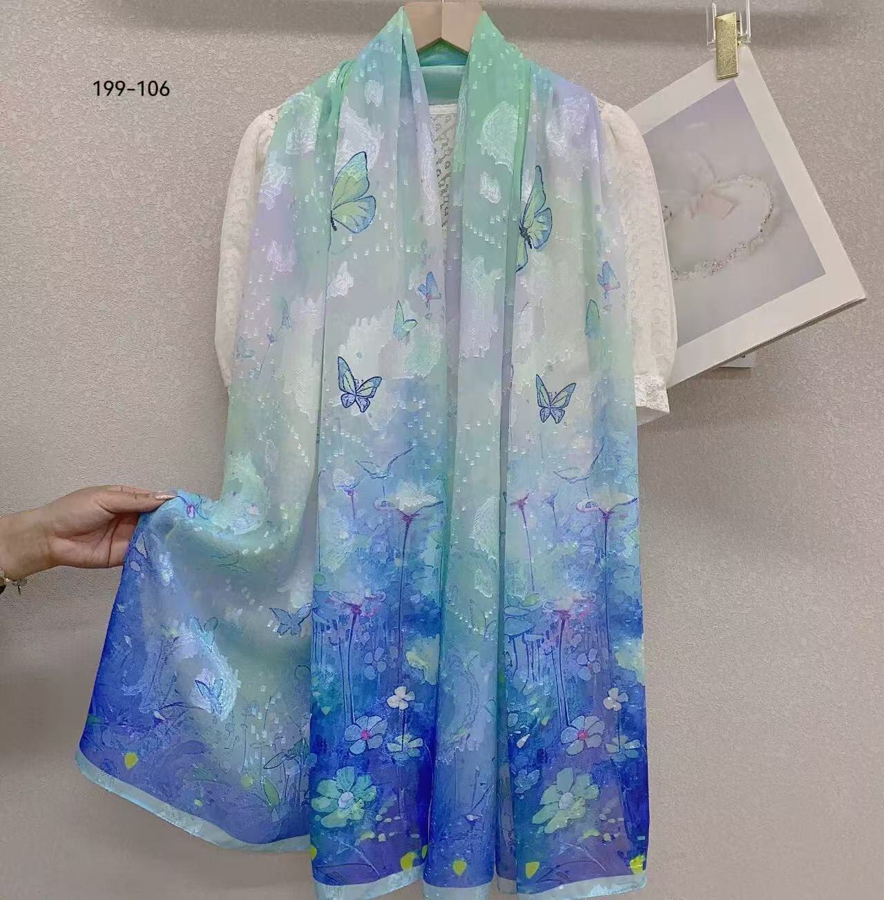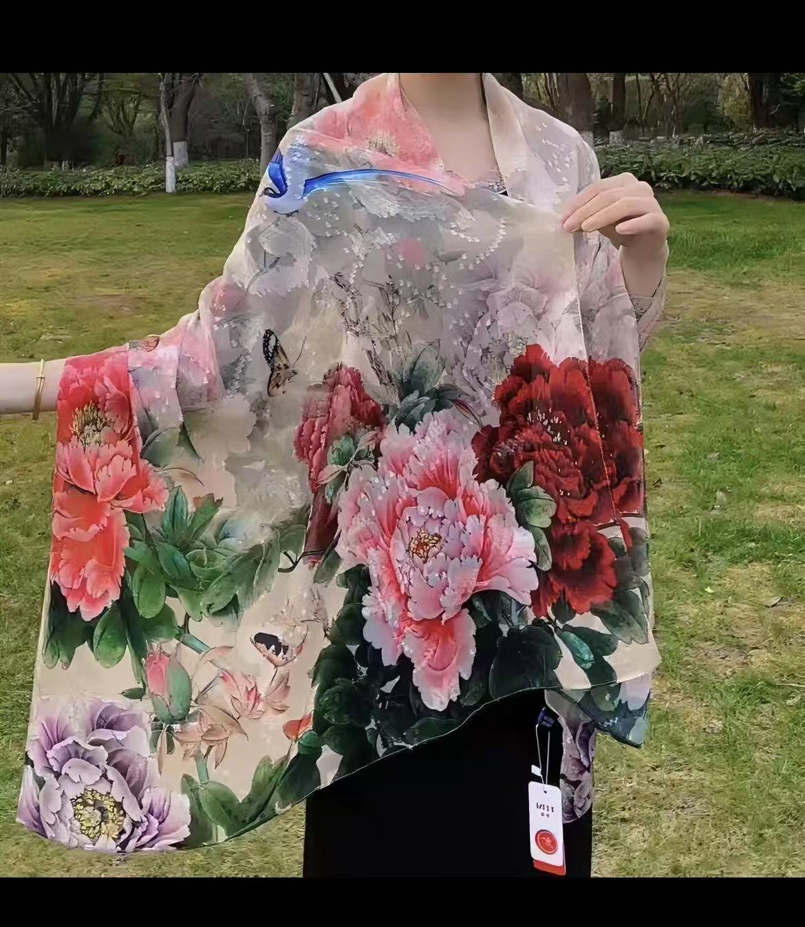 새로운 중국 스타일 컷 꽃 원사 긴 스카프 목도리 선스크린 실크 스카프 여행 선 스크린 실크 스카프 골동품 여름 새로운 스타일 우아한 스카프