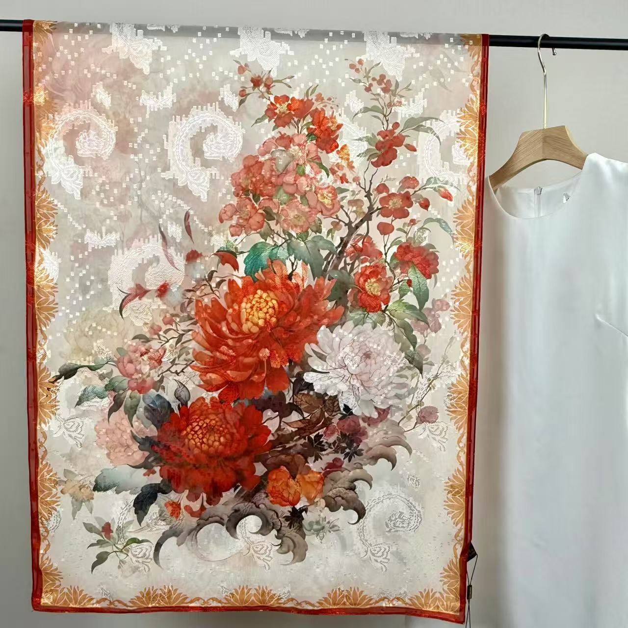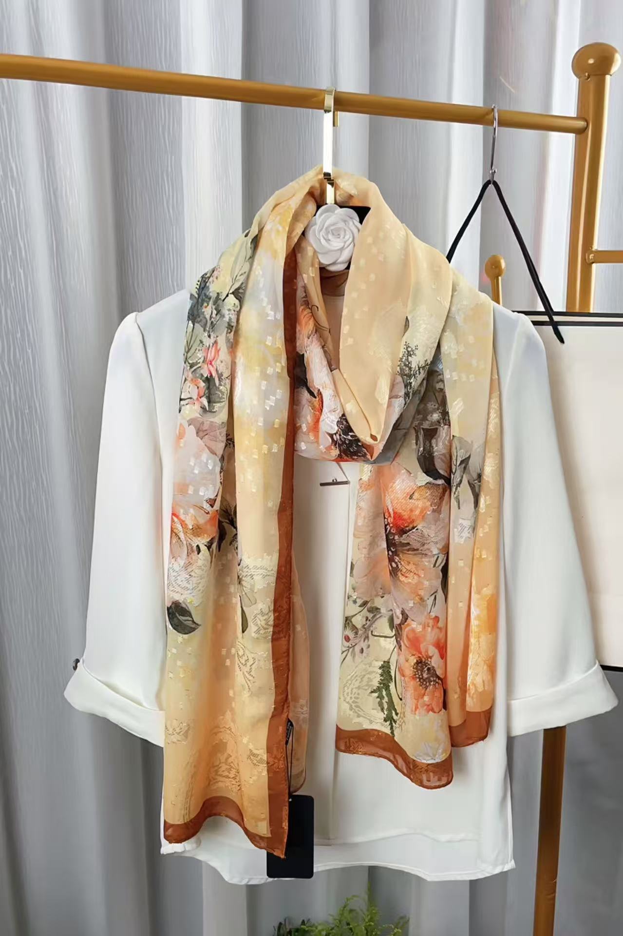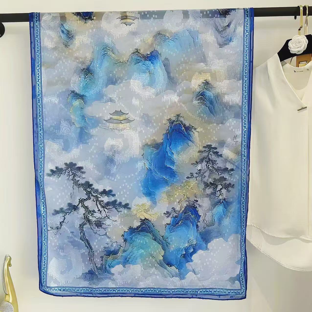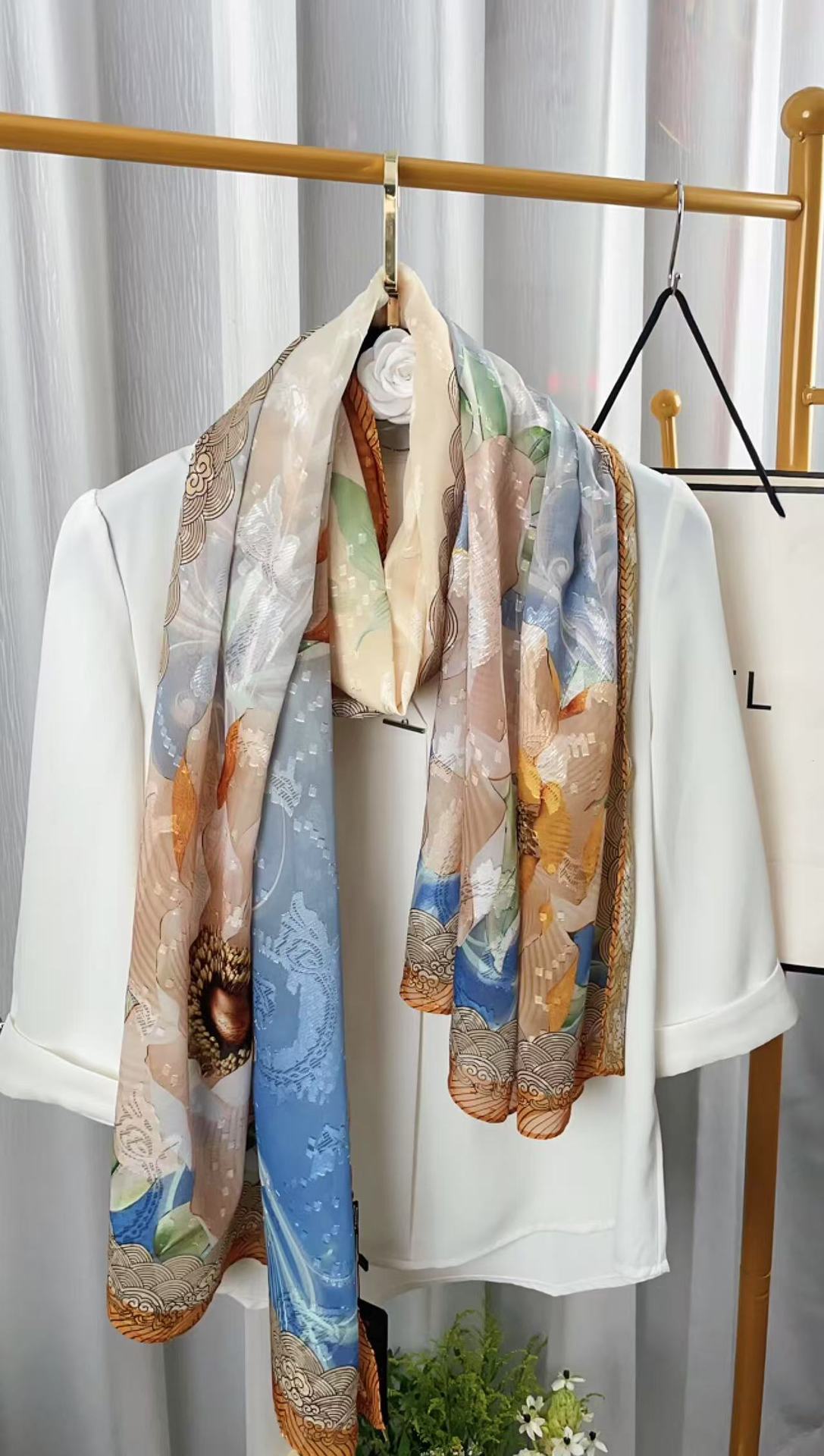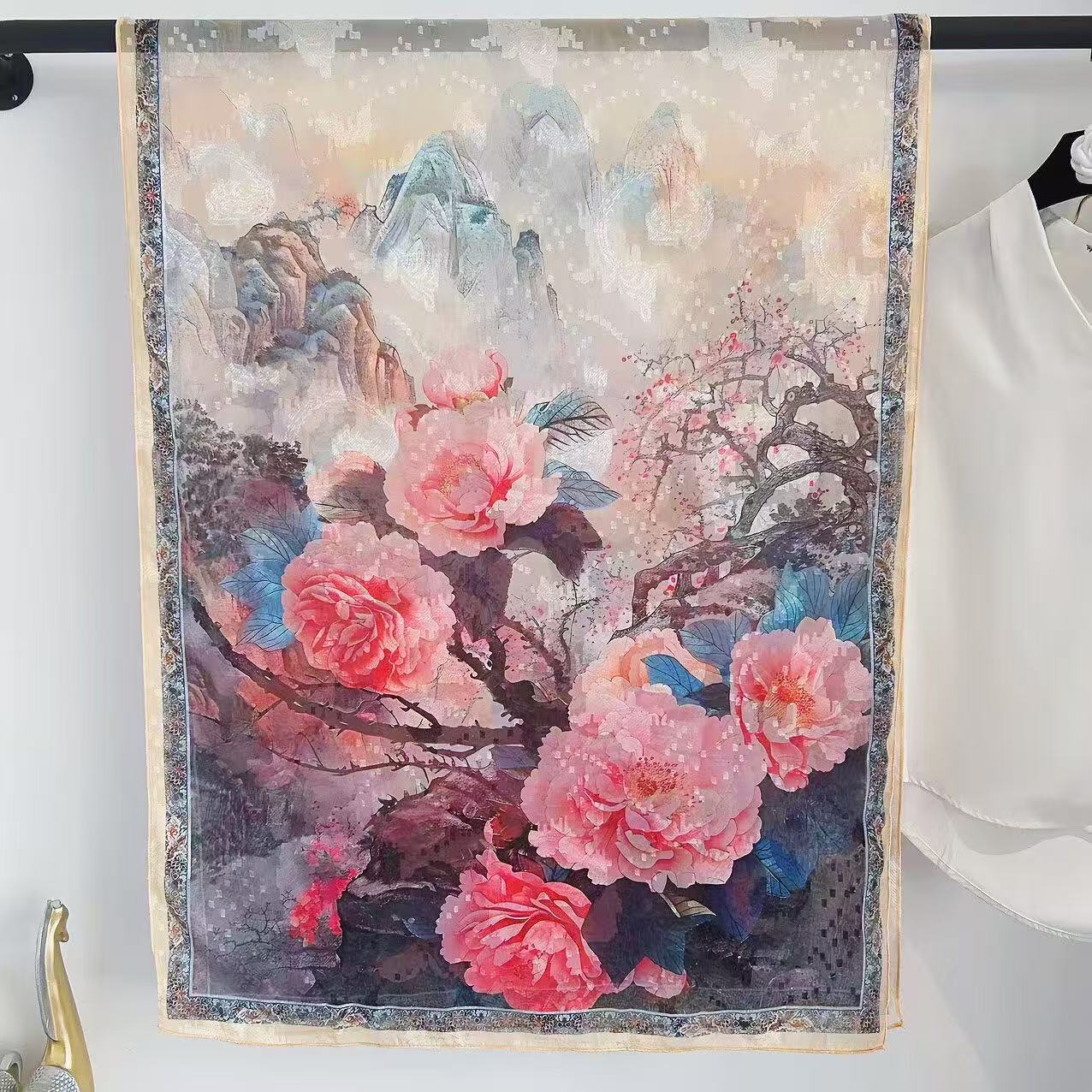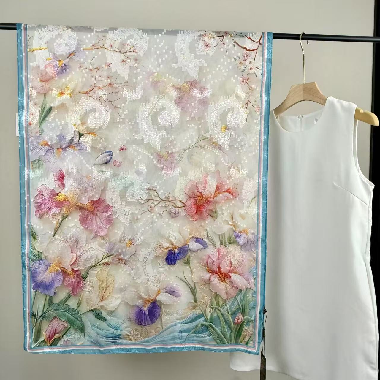 새로운 중국 스타일 컷 꽃 원사 긴 스카프 목도리 선스크린 실크 스카프 여행 선 스크린 실크 스카프 골동품 여름 새로운 스타일 우아한 스카프