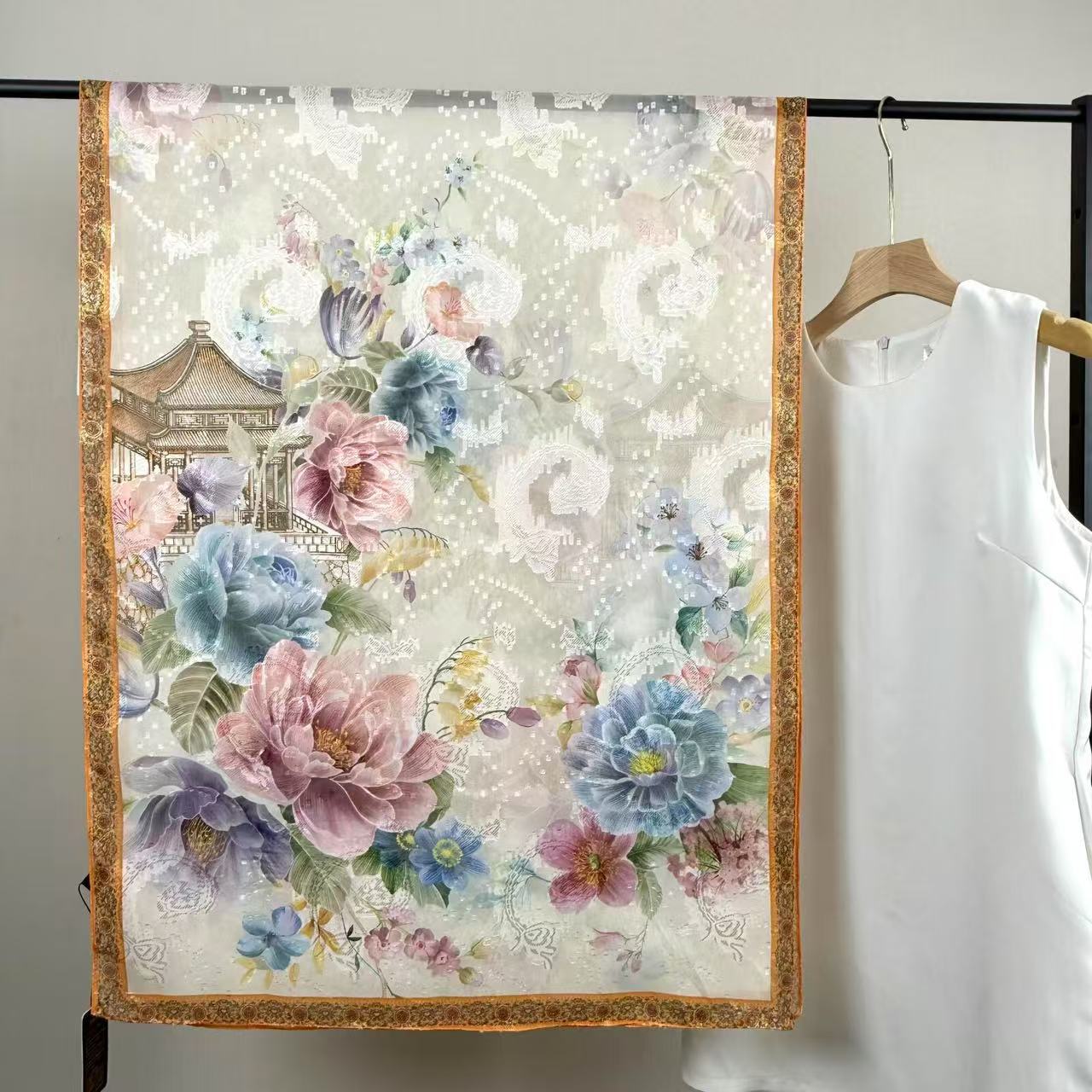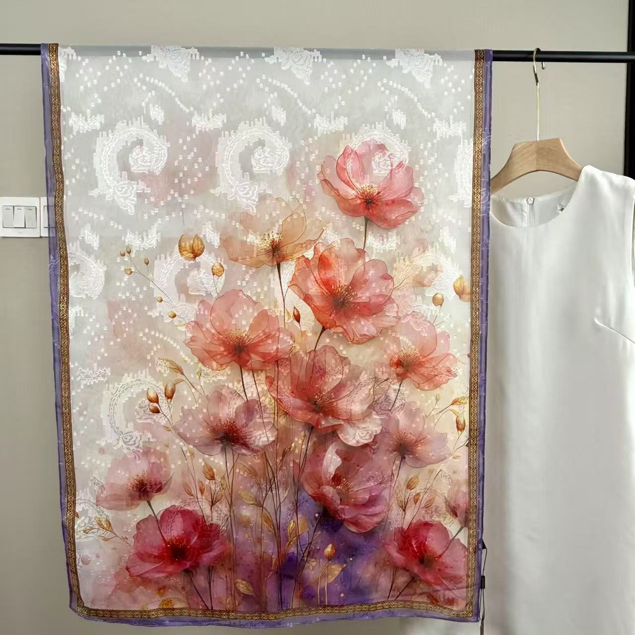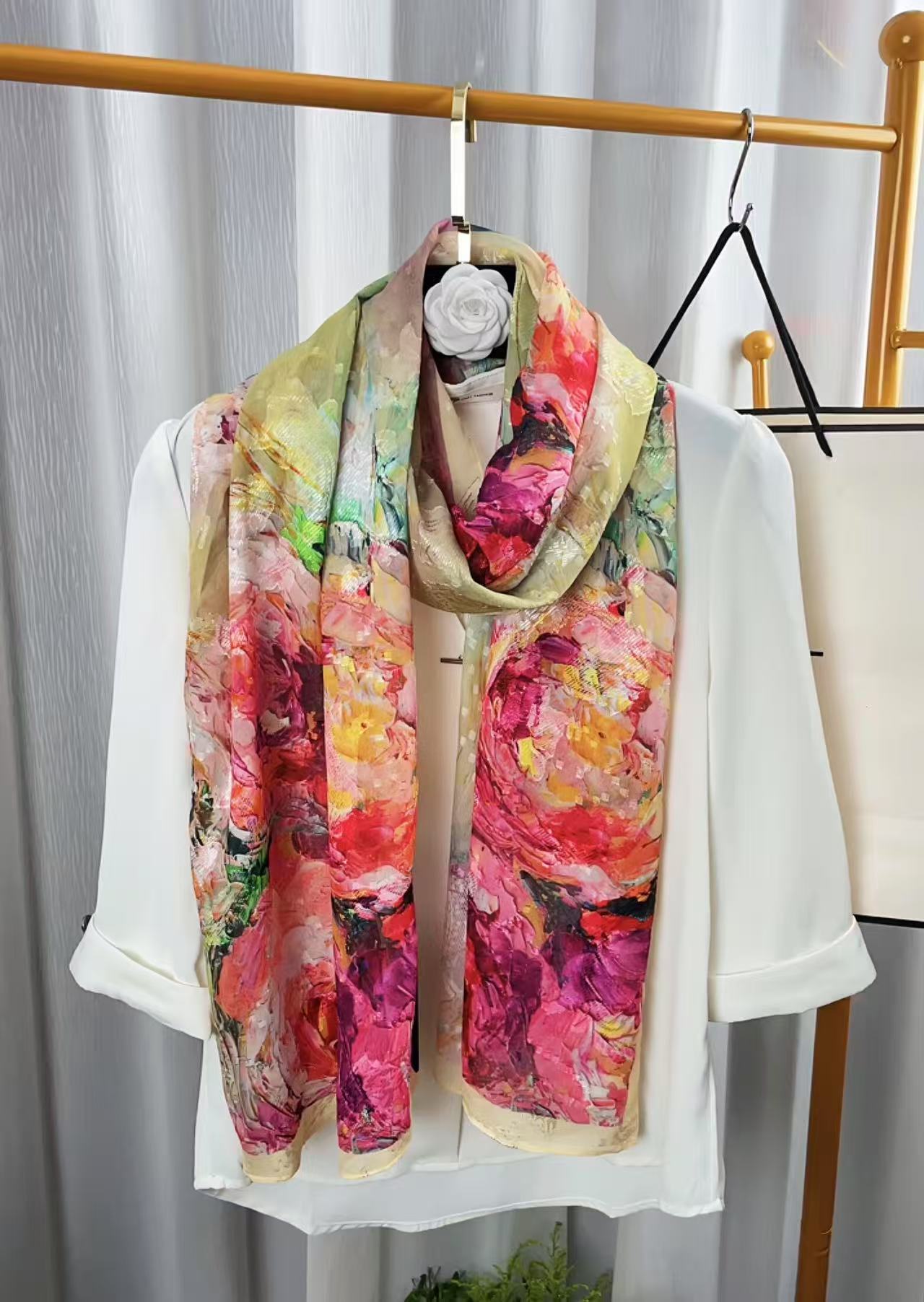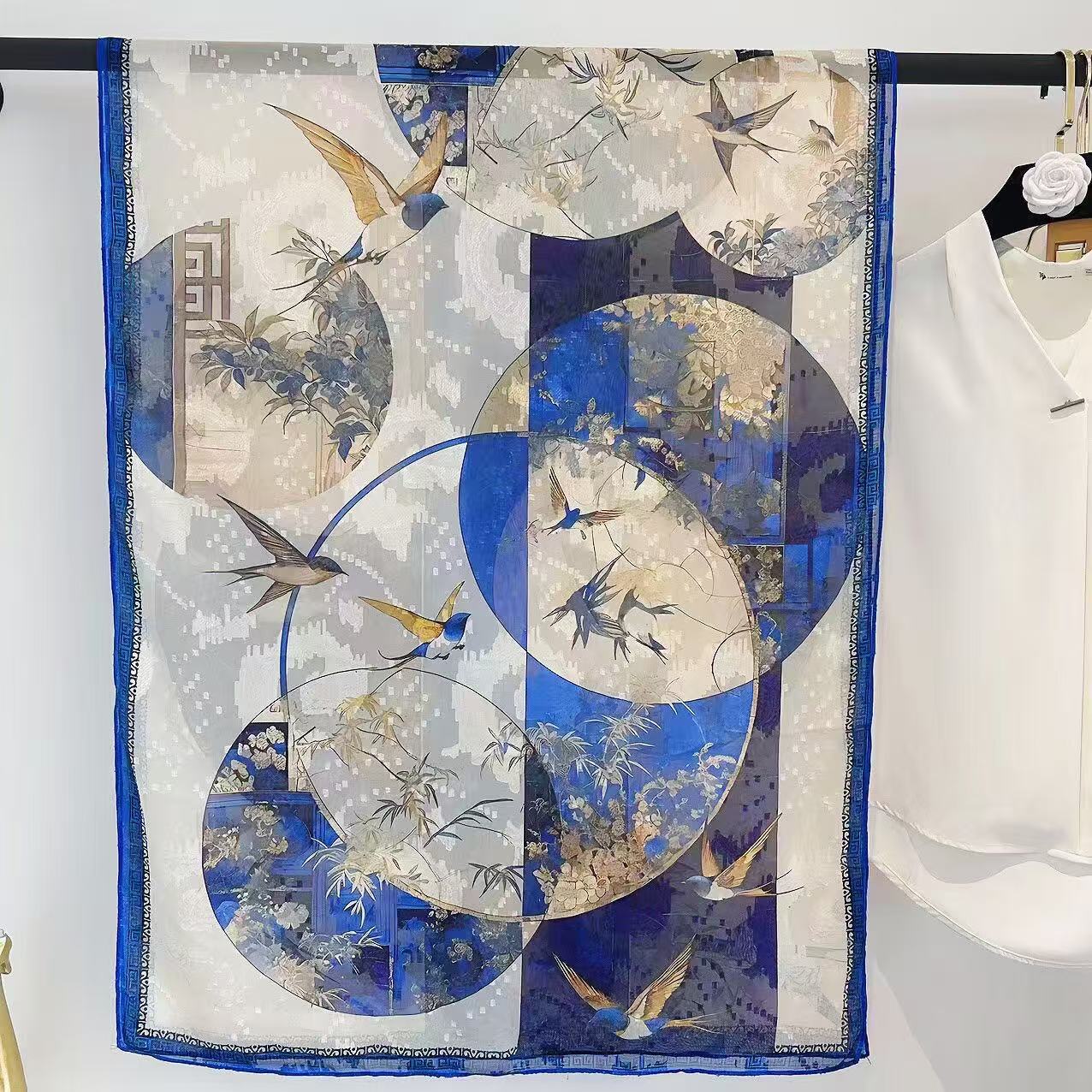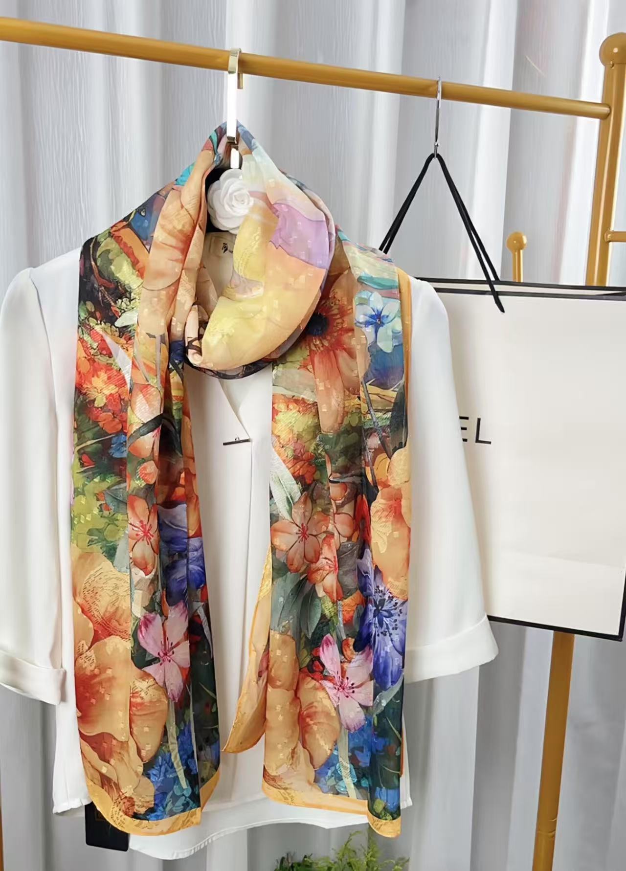 새로운 중국 스타일 컷 꽃 원사 긴 스카프 목도리 선스크린 실크 스카프 여행 선 스크린 실크 스카프 골동품 여름 새로운 스타일 우아한 스카프