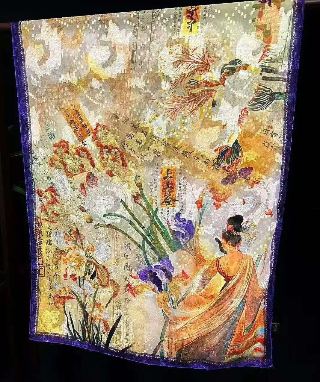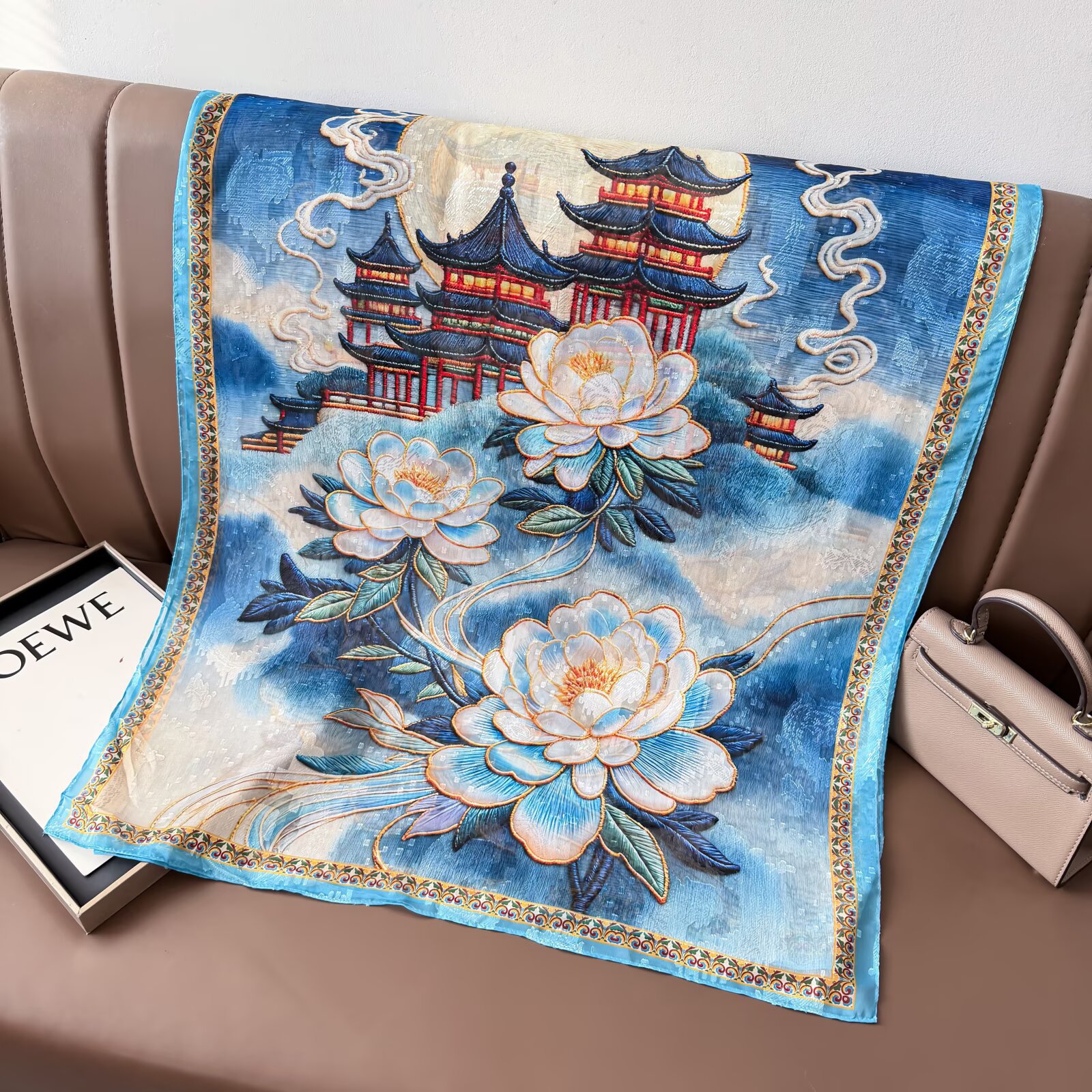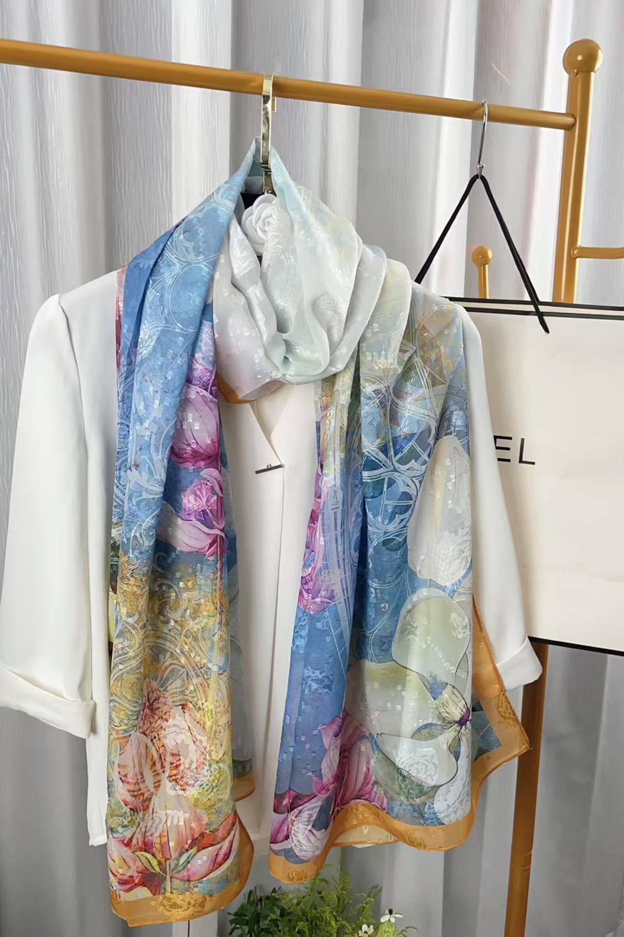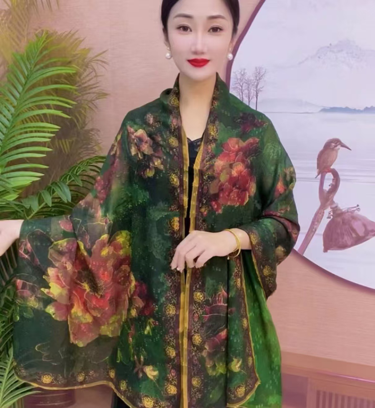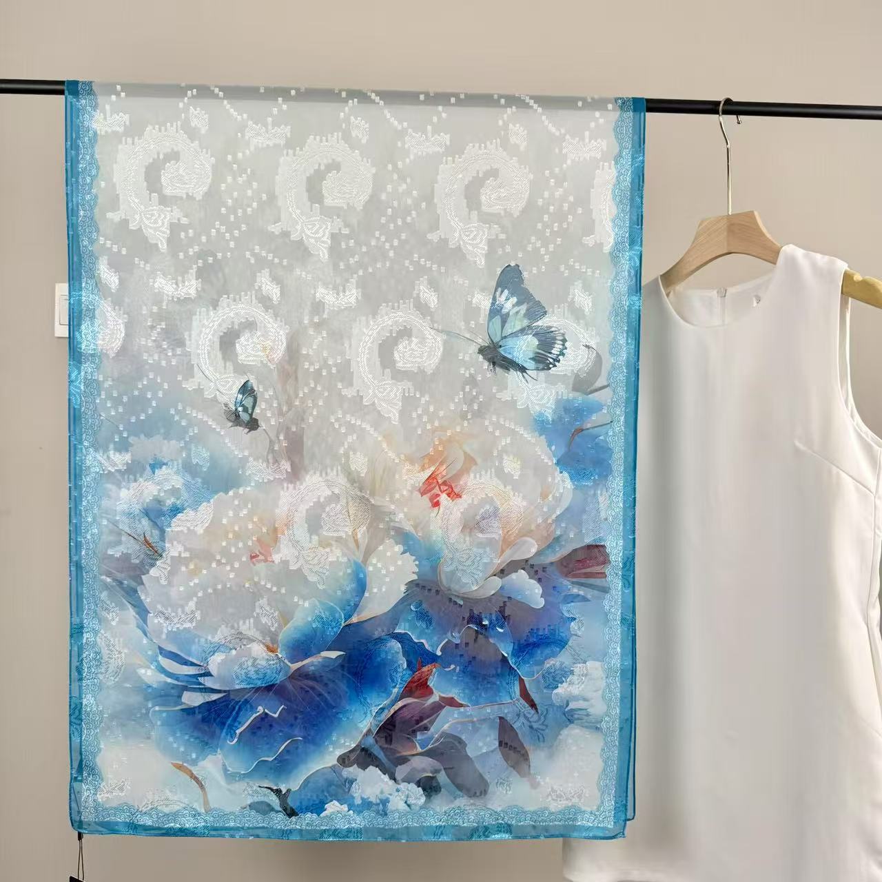 새로운 중국 스타일 컷 꽃 원사 긴 스카프 목도리 선스크린 실크 스카프 여행 선 스크린 실크 스카프 골동품 여름 새로운 스타일 우아한 스카프