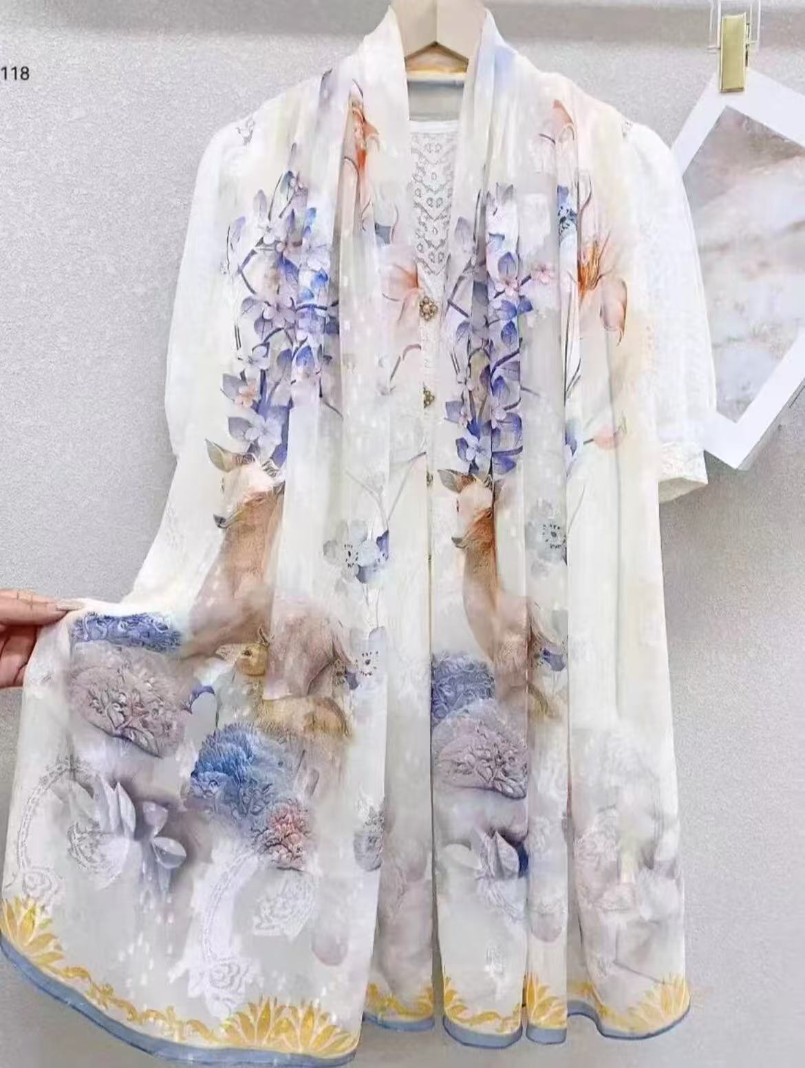 새로운 중국 스타일 컷 꽃 원사 긴 스카프 목도리 선스크린 실크 스카프 여행 선 스크린 실크 스카프 골동품 여름 새로운 스타일 우아한 스카프스토어 가기