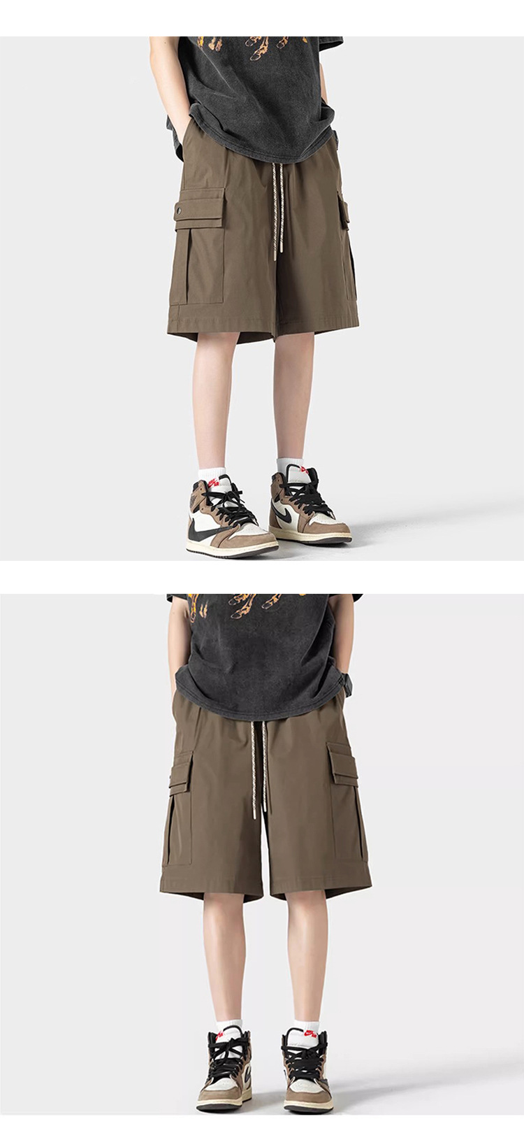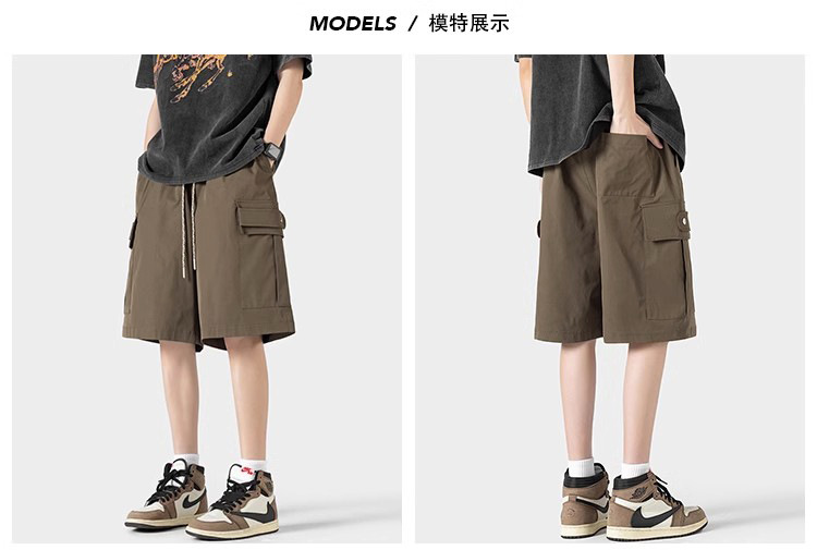 산 스타일 대형 포켓 카고 반바지 남성 여름 루즈한 5부 바지 일본 복고풍 트렌디 브랜드 캐주얼 중간 바지 통기성스토어 가기