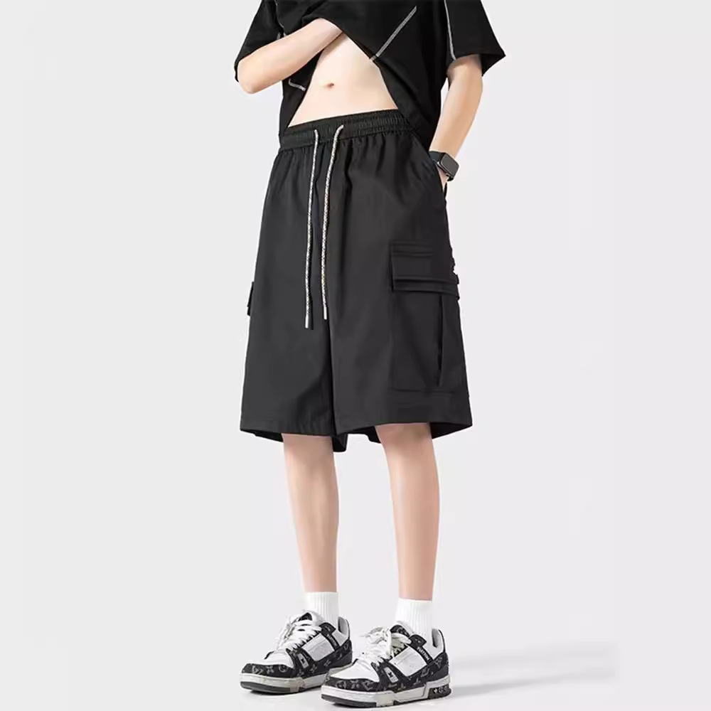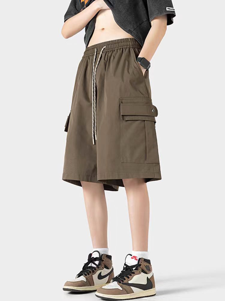 산 스타일 대형 포켓 카고 반바지 남성 여름 루즈한 5부 바지 일본 복고풍 트렌디 브랜드 캐주얼 중간 바지 통기성