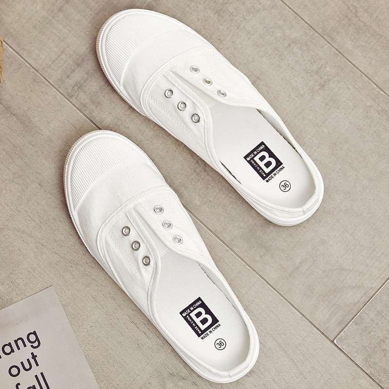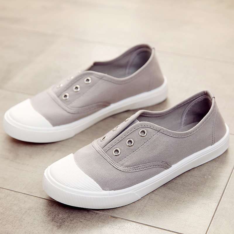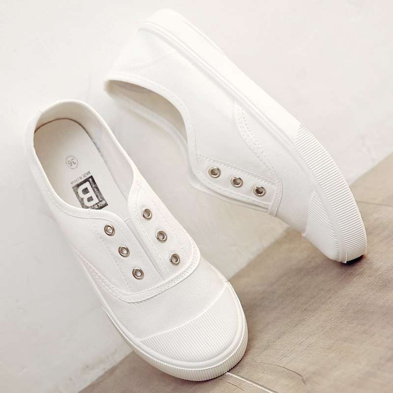 봄 새 스타일 슬립 온 캔버스 신발 남녀 올매치 플랫 학생 한국 스타일 얕은 입 간호사 신발 게으른 신발