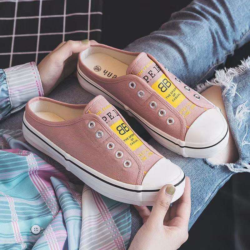 봄 새 스타일 슬립 온 캔버스 신발 남녀 올매치 플랫 학생 한국 스타일 얕은 입 간호사 신발 게으른 신발스토어 가기