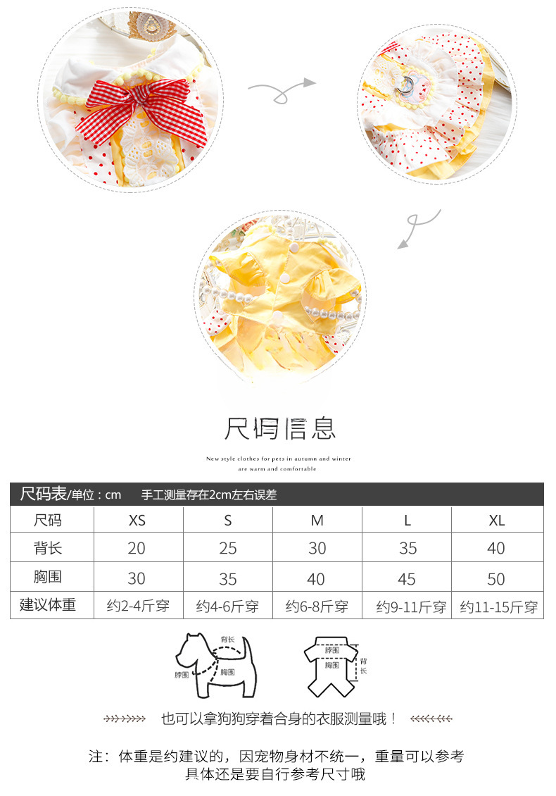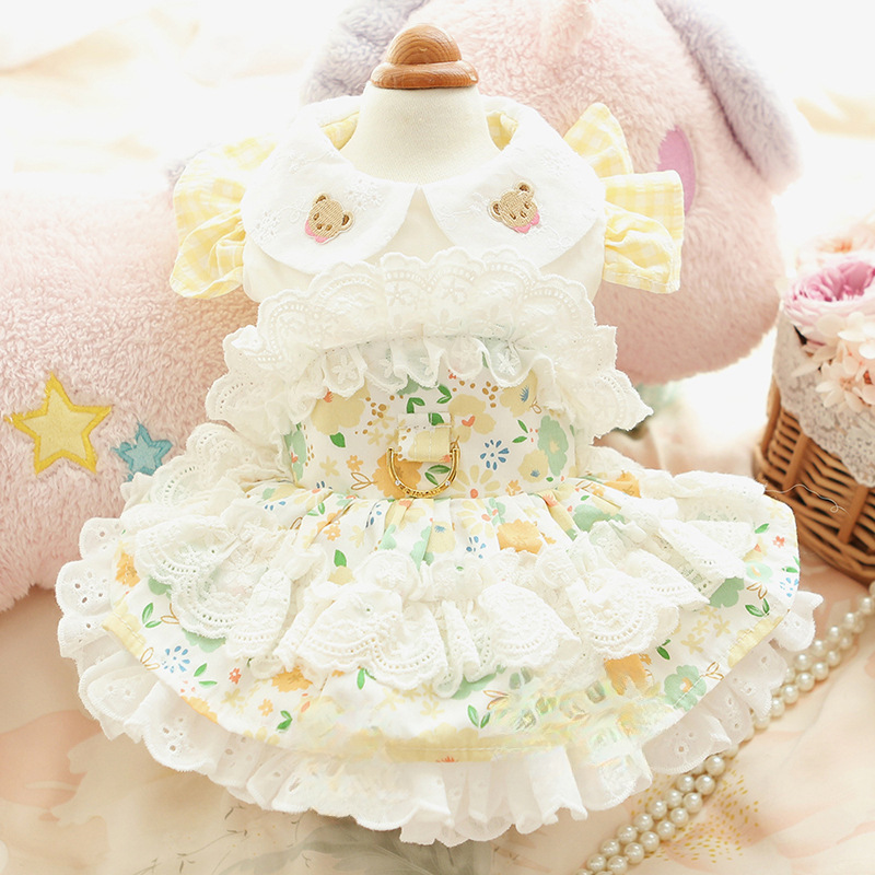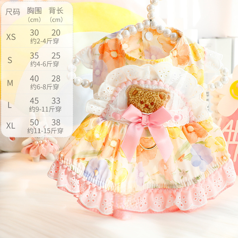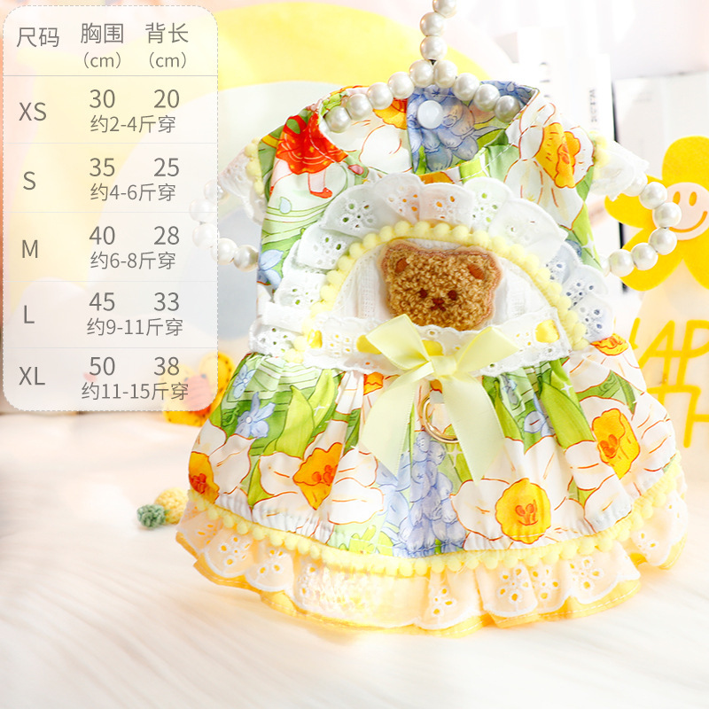 개 옷 봄과 여름 얇은 고양이 공주 드레스 빨간 점 노란색 곰 견인 로리타 작은 개 테디 애완 동물 4567스토어 가기