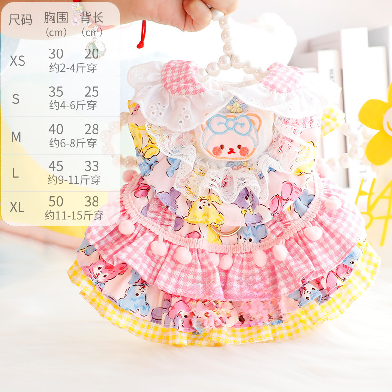 개 옷 봄과 여름 얇은 고양이 공주 드레스 빨간 점 노란색 곰 견인 로리타 작은 개 테디 애완 동물 4567