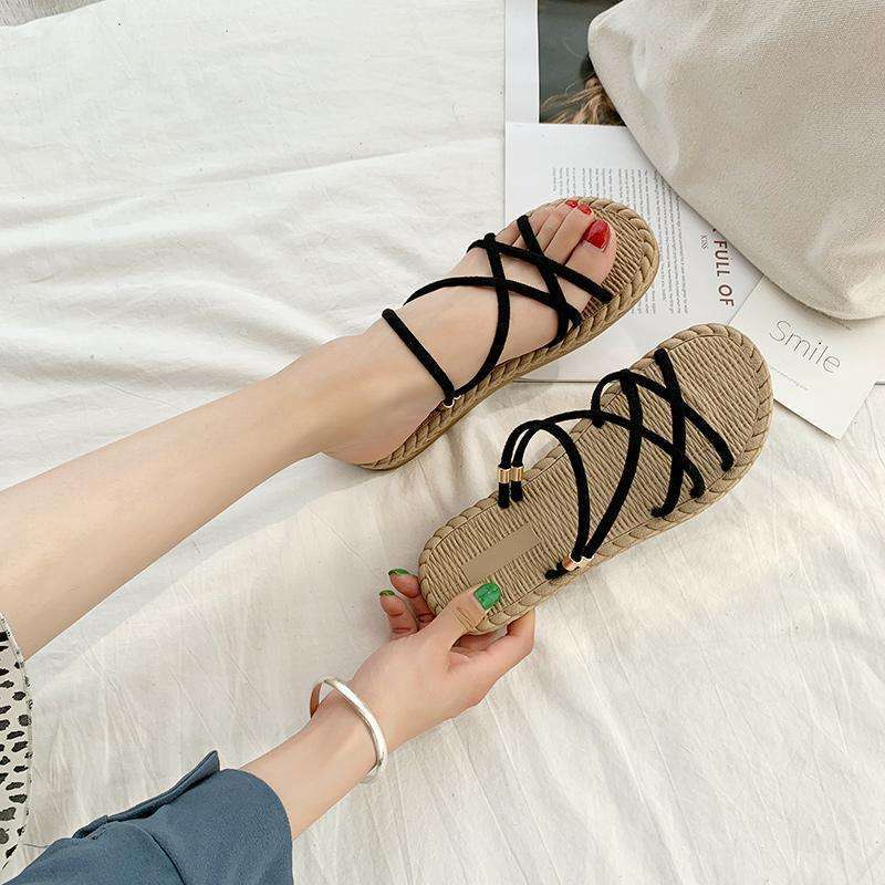 새로운 플랫 샌들 여성 여름 아웃웨어 학생 한국식 올매치 인 페어리 스타일 패션 투웨이 샌들