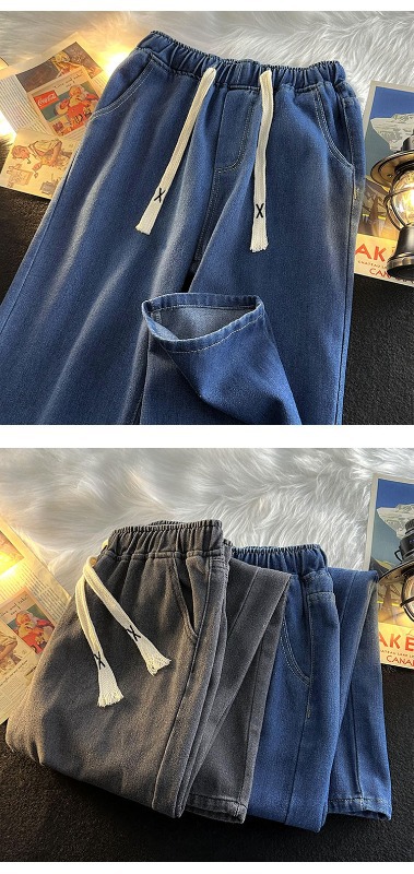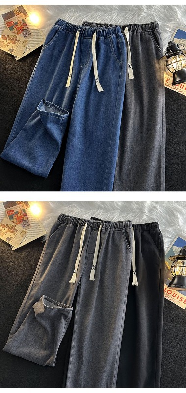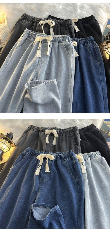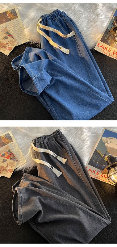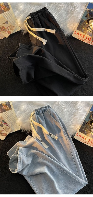 봄과 가을 새로운 청바지 남자 블랙 아메리칸 레트로 넓은 다리 바지 스트레이트 루즈 캐주얼 긴 바지 남자 여름스토어 가기