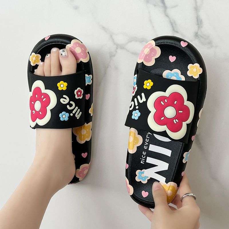 여름 집에서 여성을 위한 귀여운 꽃 패션 슬리퍼, 두꺼운 밑창 미끄럼 방지 슬리퍼, 캐주얼 비치 슈즈, 소프트