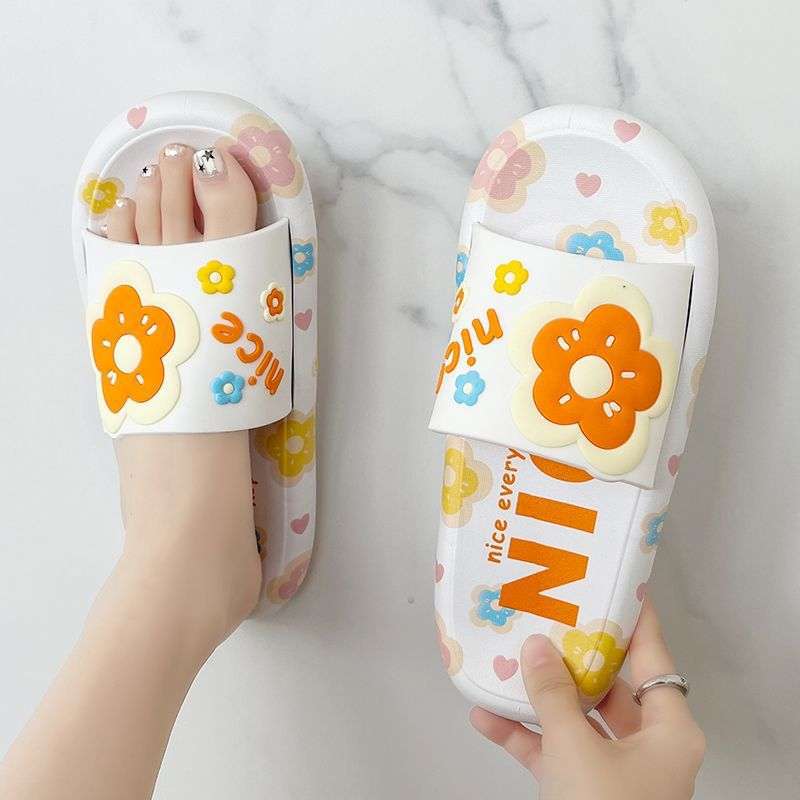 여름 집에서 여성을 위한 귀여운 꽃 패션 슬리퍼, 두꺼운 밑창 미끄럼 방지 슬리퍼, 캐주얼 비치 슈즈, 소프트스토어 가기