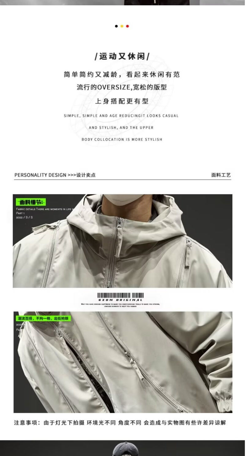 남성용 재킷, 아메리칸 하이 스트리트 기능성 야외 등산복, 봄, 가을 루즈한 대형 후드 워크 재킷, 트렌디스토어 가기