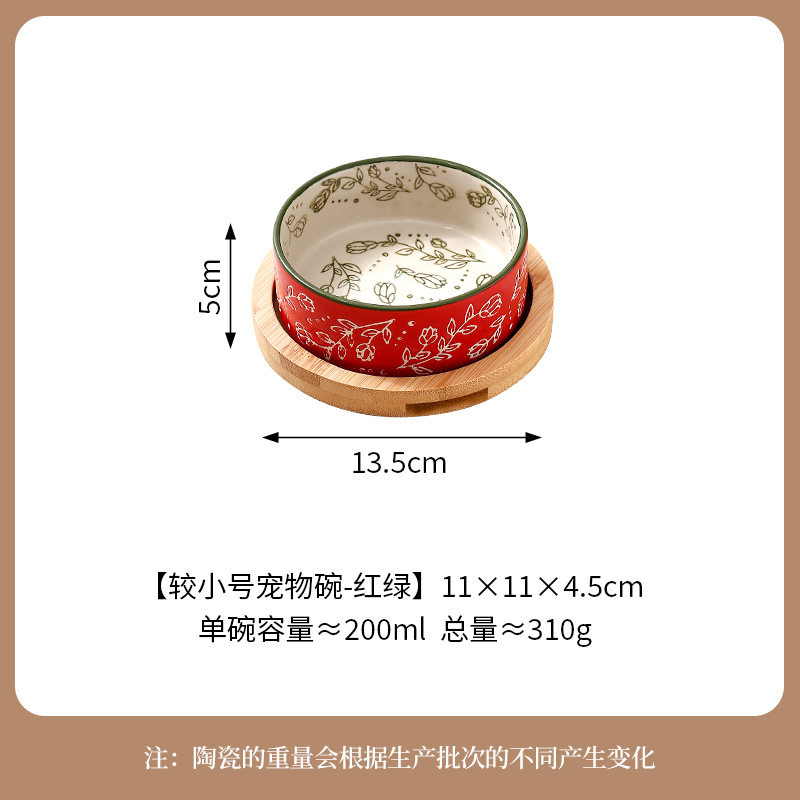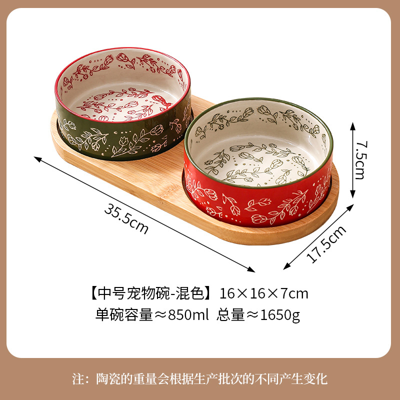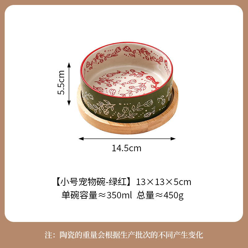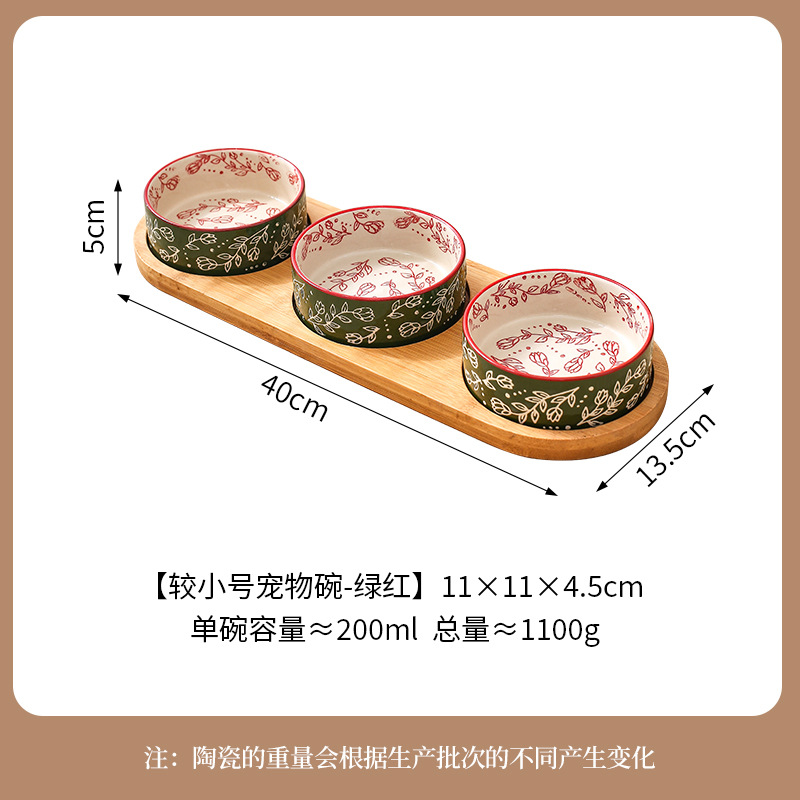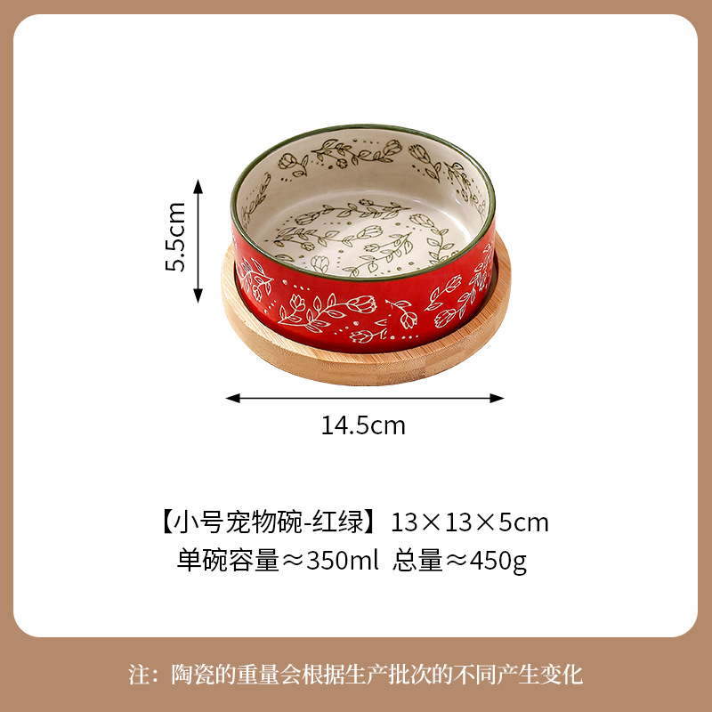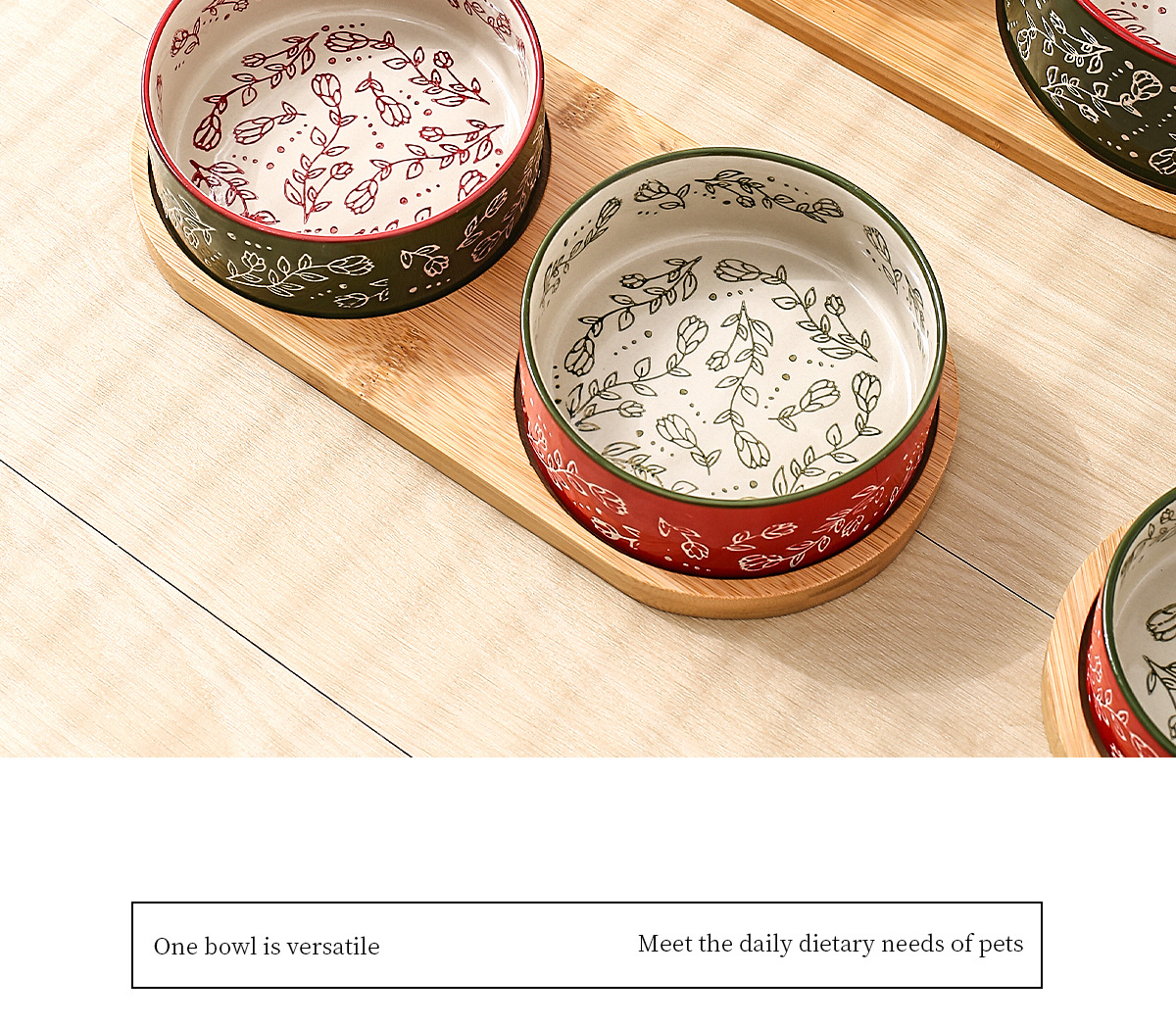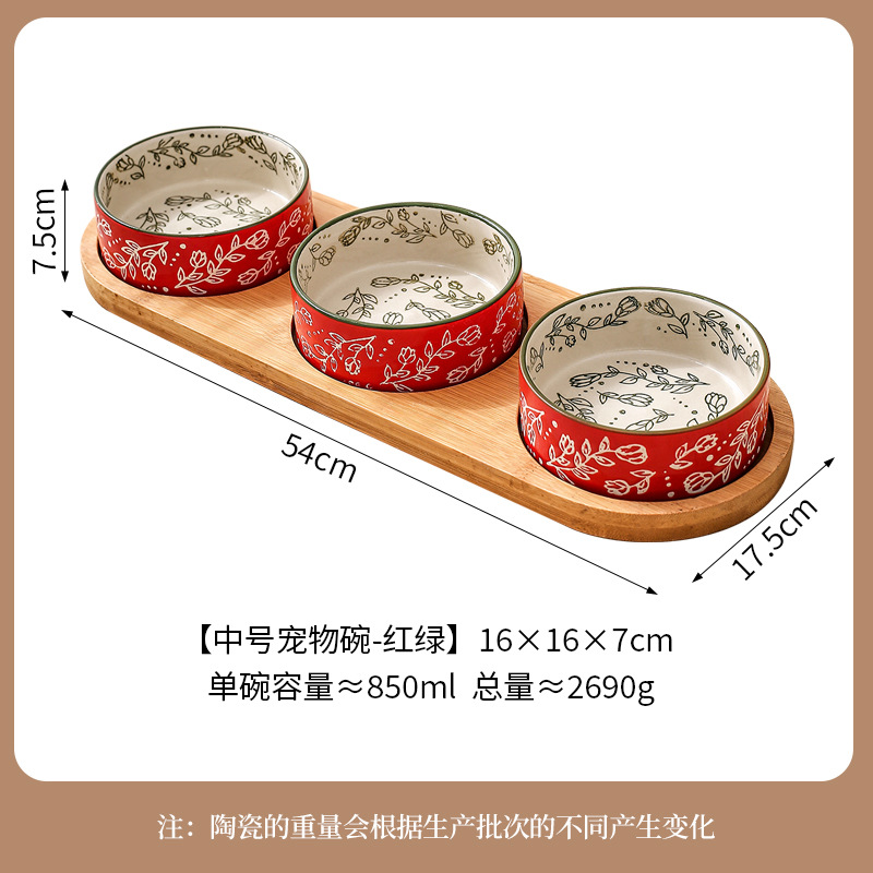 대나무와 나무 쟁반이있는 민족 스타일 꽃 스트레이트 그릇 세라믹 애완 동물 그릇 국경 고양이 그릇 개 그릇 안티 노크 마시는 분지