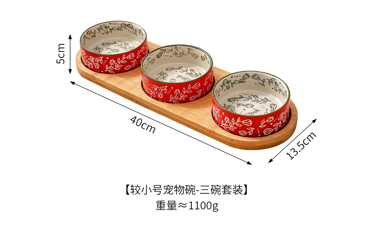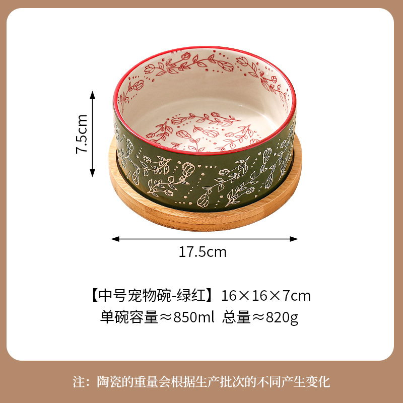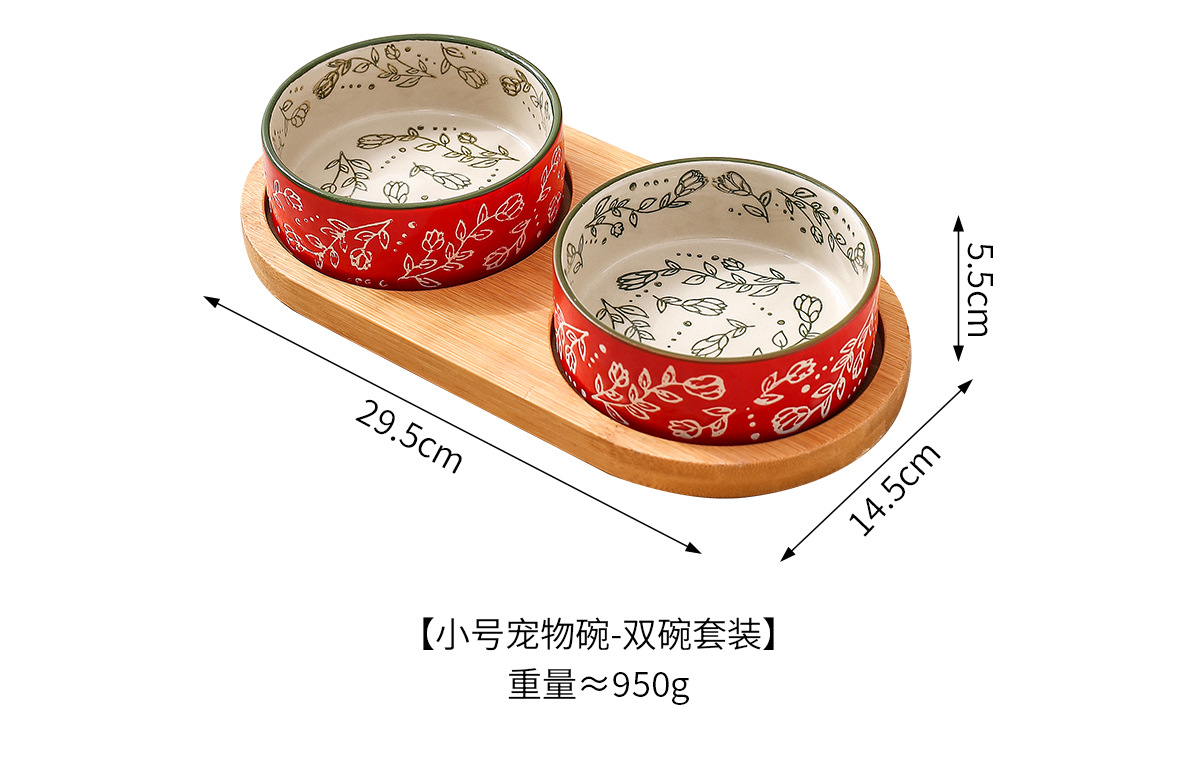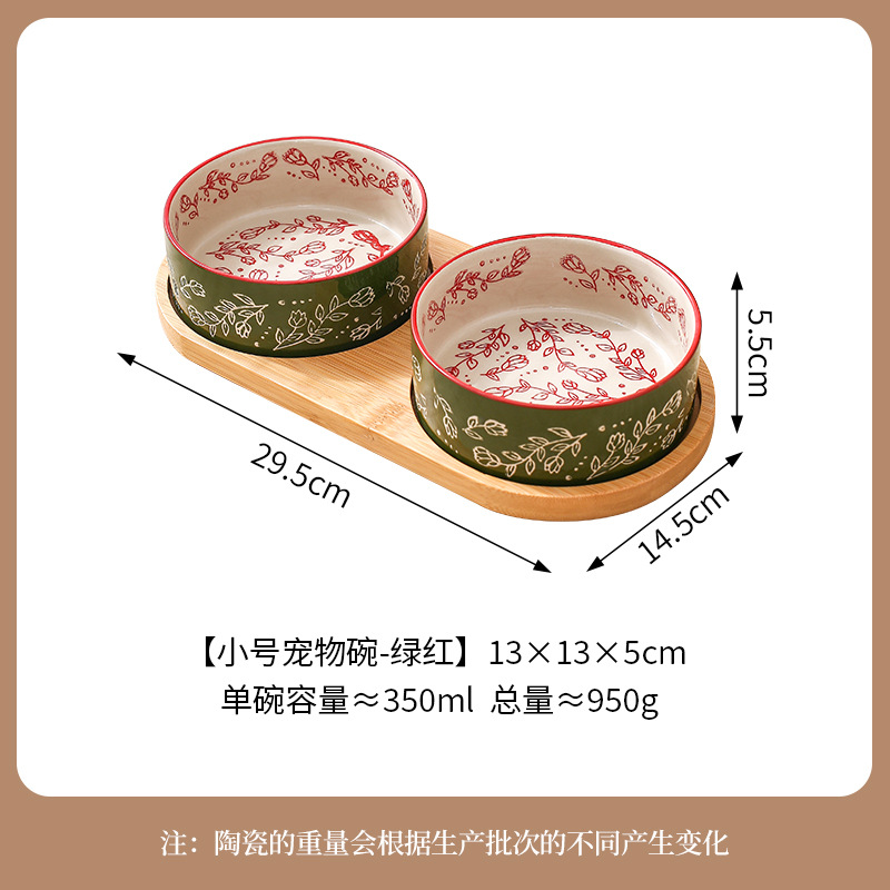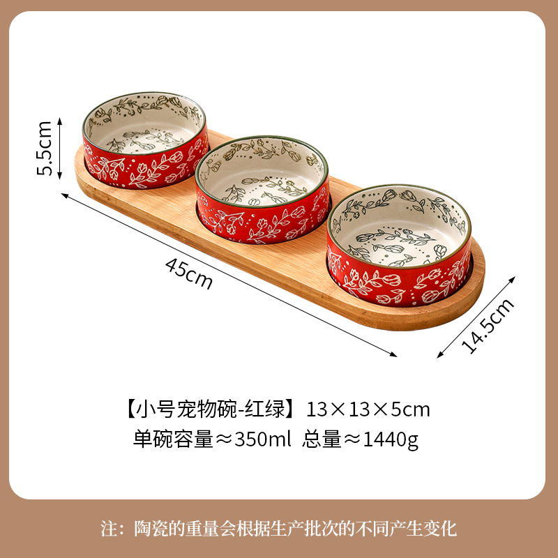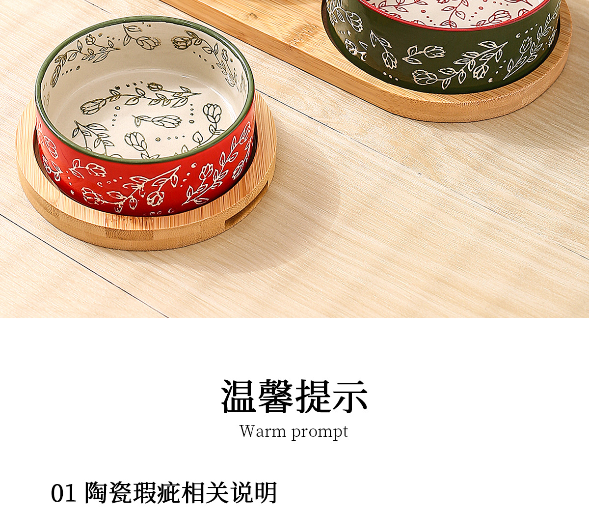 대나무와 나무 쟁반이있는 민족 스타일 꽃 스트레이트 그릇 세라믹 애완 동물 그릇 국경 고양이 그릇 개 그릇 안티 노크 마시는 분지