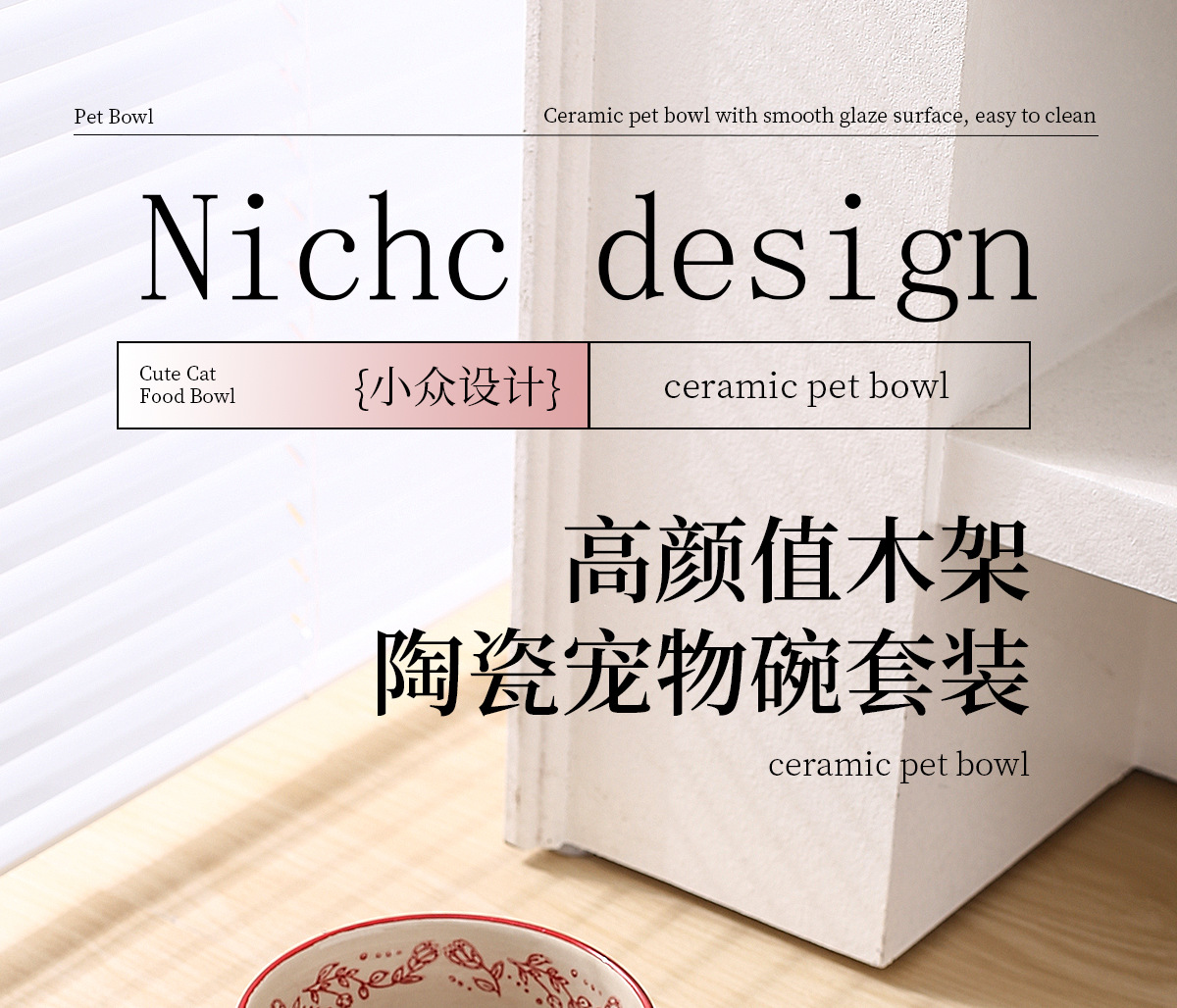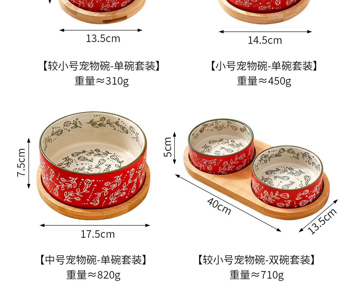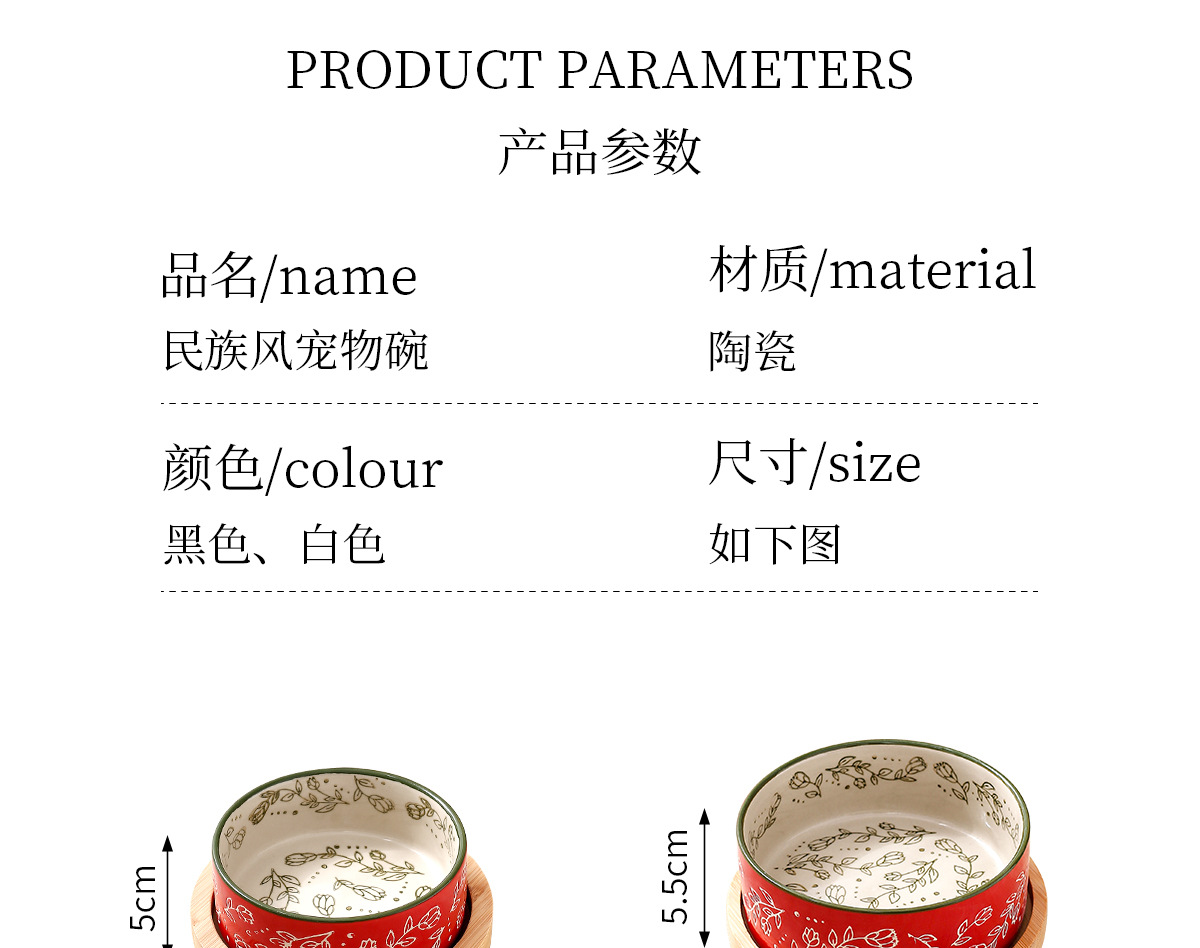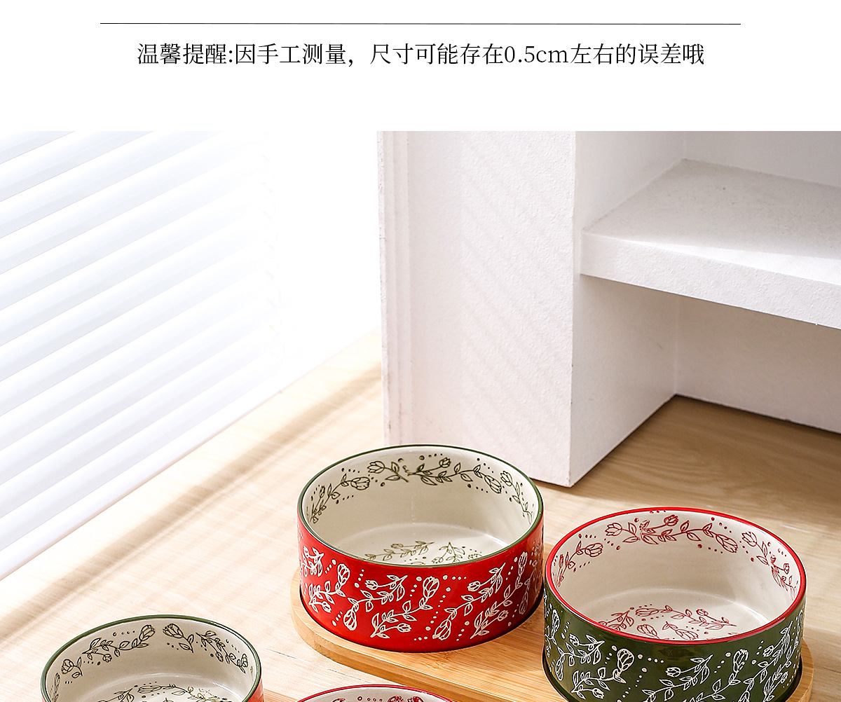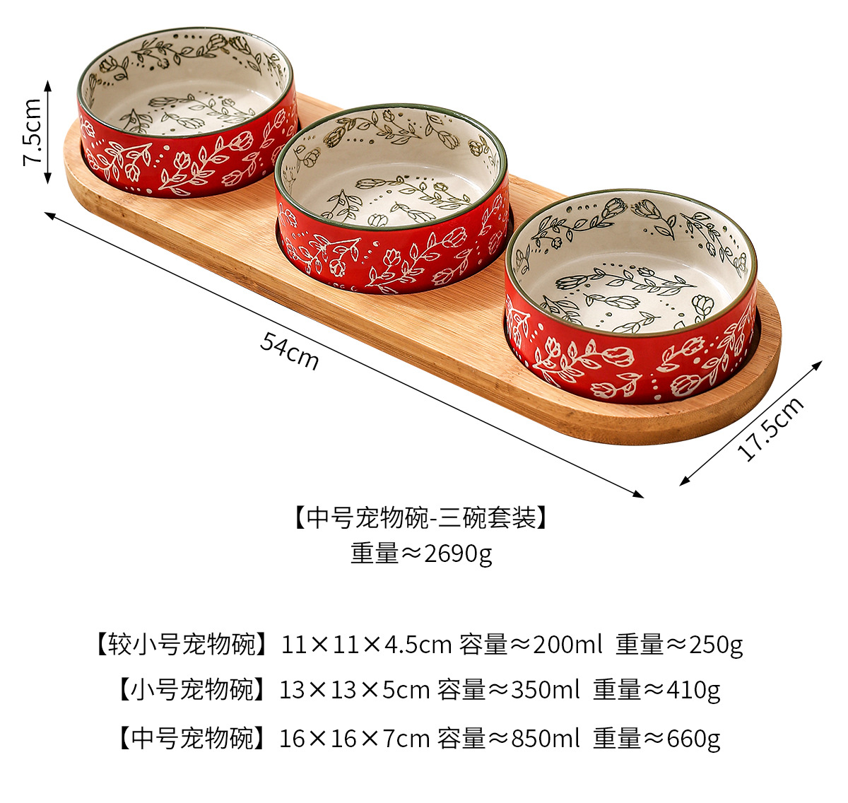 대나무와 나무 쟁반이있는 민족 스타일 꽃 스트레이트 그릇 세라믹 애완 동물 그릇 국경 고양이 그릇 개 그릇 안티 노크 마시는 분지