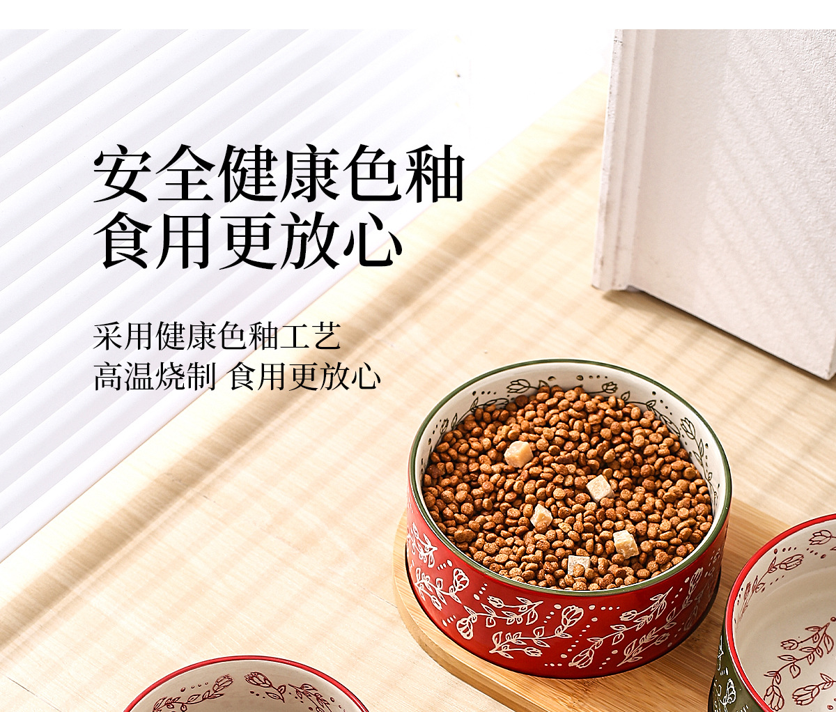 대나무와 나무 쟁반이있는 민족 스타일 꽃 스트레이트 그릇 세라믹 애완 동물 그릇 국경 고양이 그릇 개 그릇 안티 노크 마시는 분지스토어 가기
