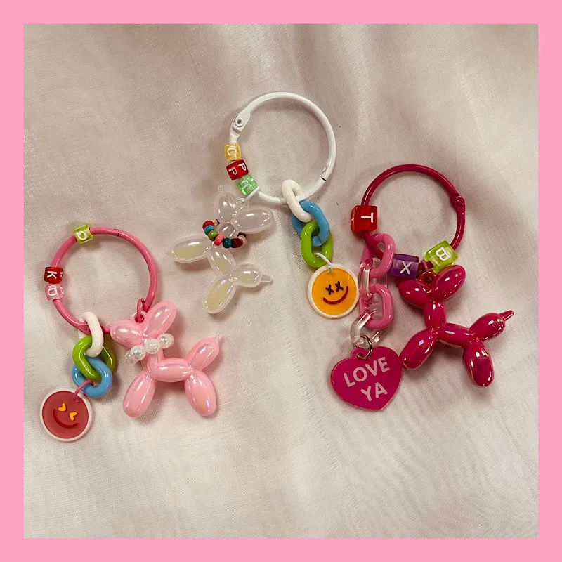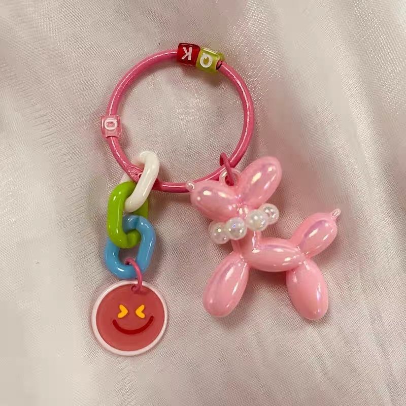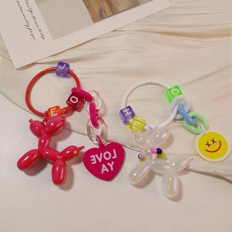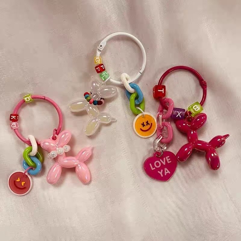 Xiaohongshu 인기 풍선 개 자동차 분실 방지 키 체인 가방 펜던트 사랑 액세서리 펜던트 도매 작은 선물스토어 가기
