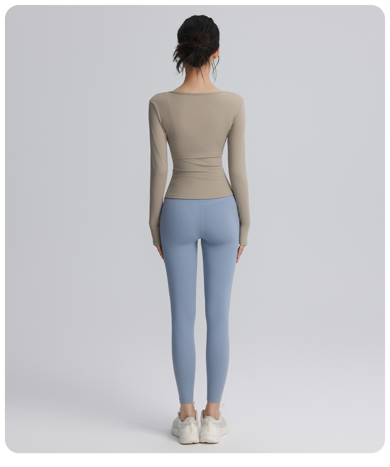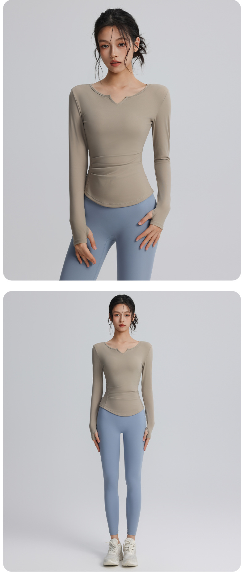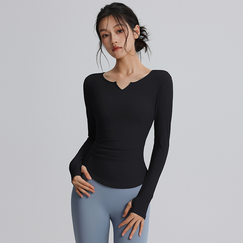 여성용 브이넥 스트레치 요가 탑, 타이트하고 슬림한 긴팔 스포츠 티셔츠, 속건성, 통기성, 러닝 트레이닝 피트니스웨어