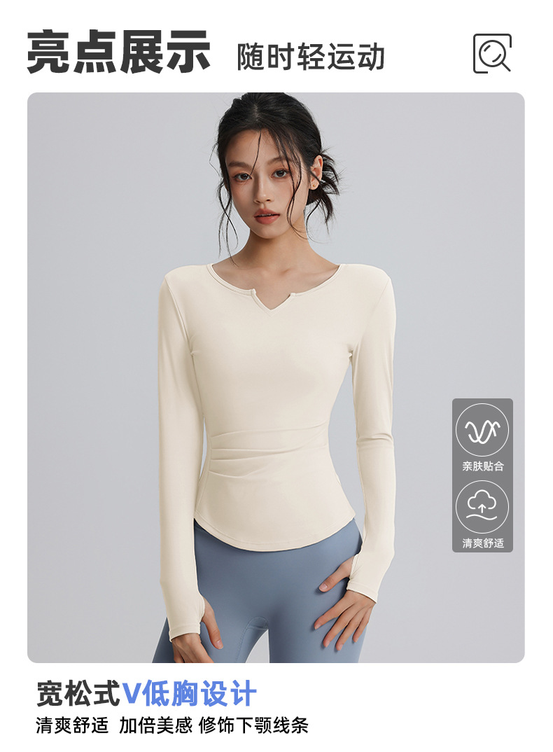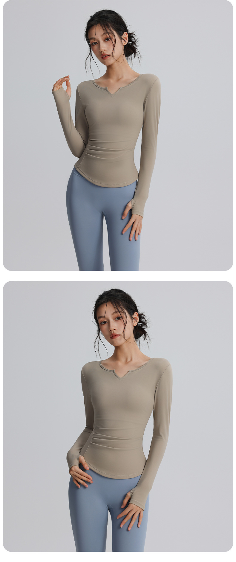 여성용 브이넥 스트레치 요가 탑, 타이트하고 슬림한 긴팔 스포츠 티셔츠, 속건성, 통기성, 러닝 트레이닝 피트니스웨어스토어 가기
