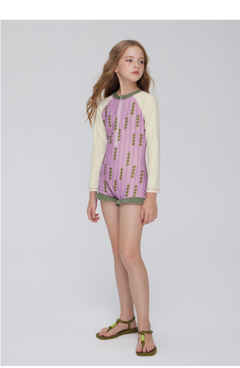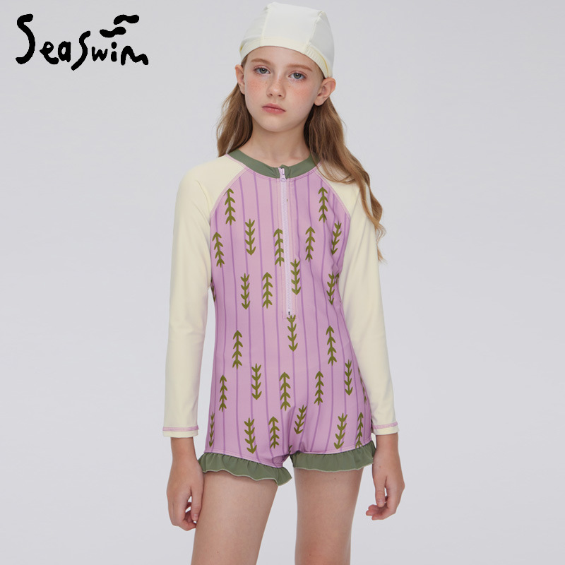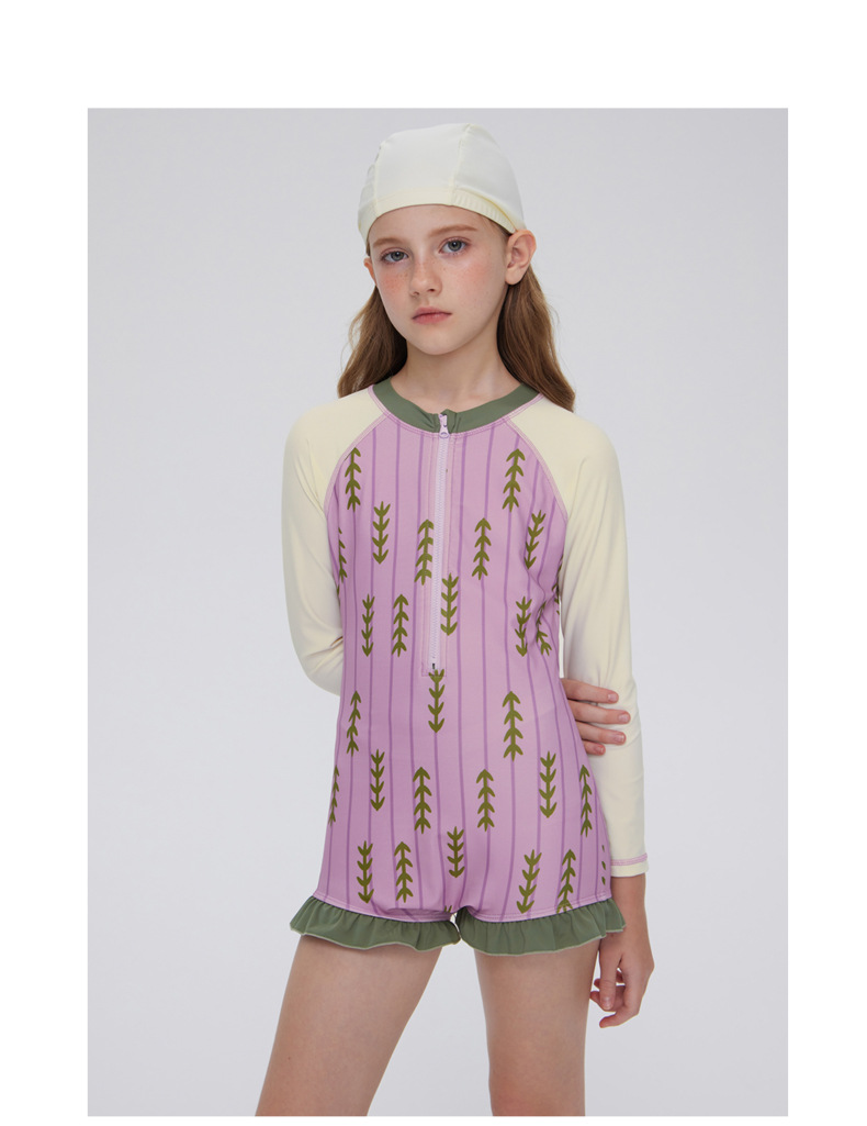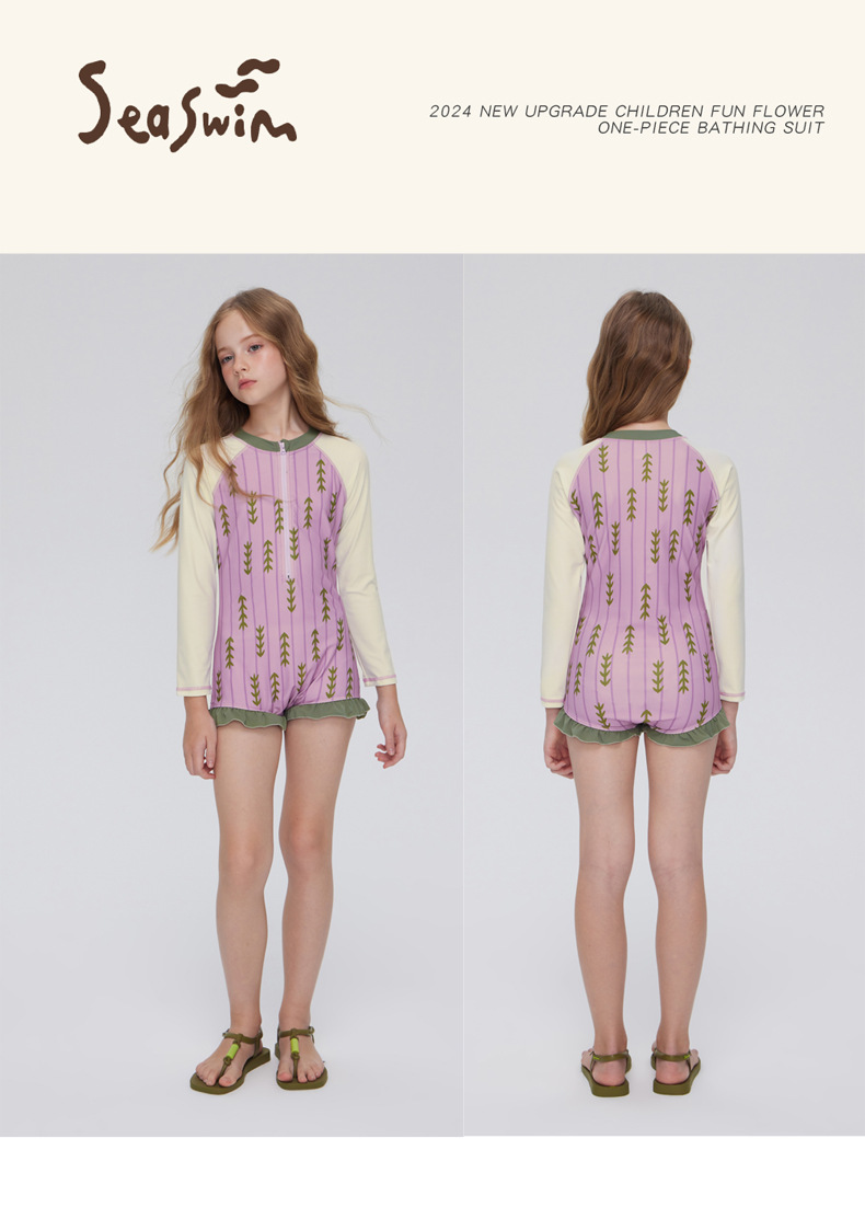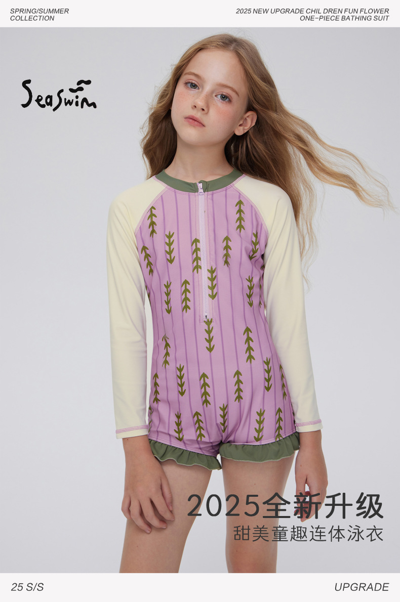 2025년 신형 여아 수영복, 여름 원피스 사각 수영복, 중대형 아동용 패션 자외선 차단 속건 수영복