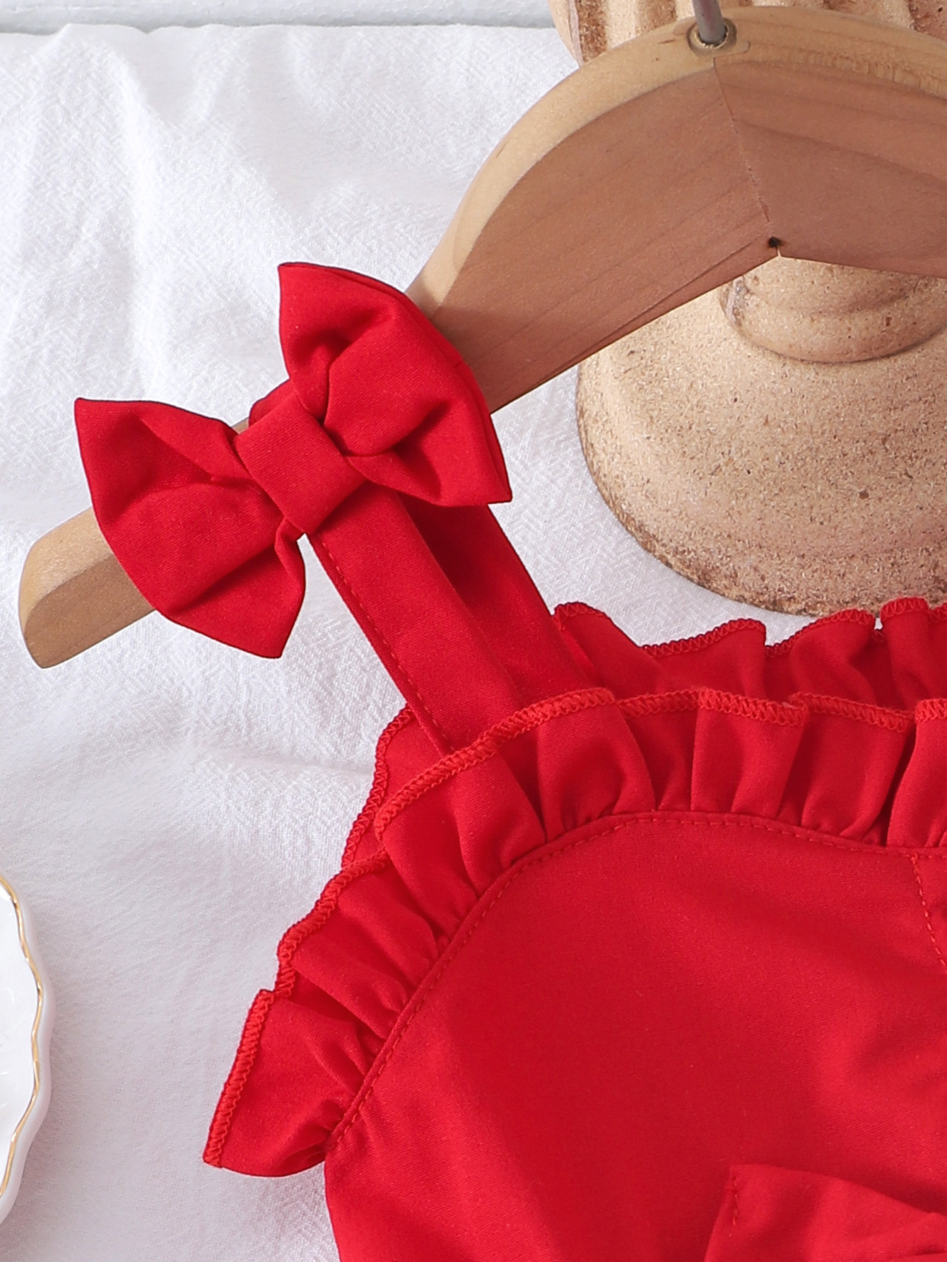 해외 무역 국경 유럽 및 미국 여름 베스트셀러 새로운 소녀 세트 중소 어린이 빨간 활 서스펜더 데님 반바지